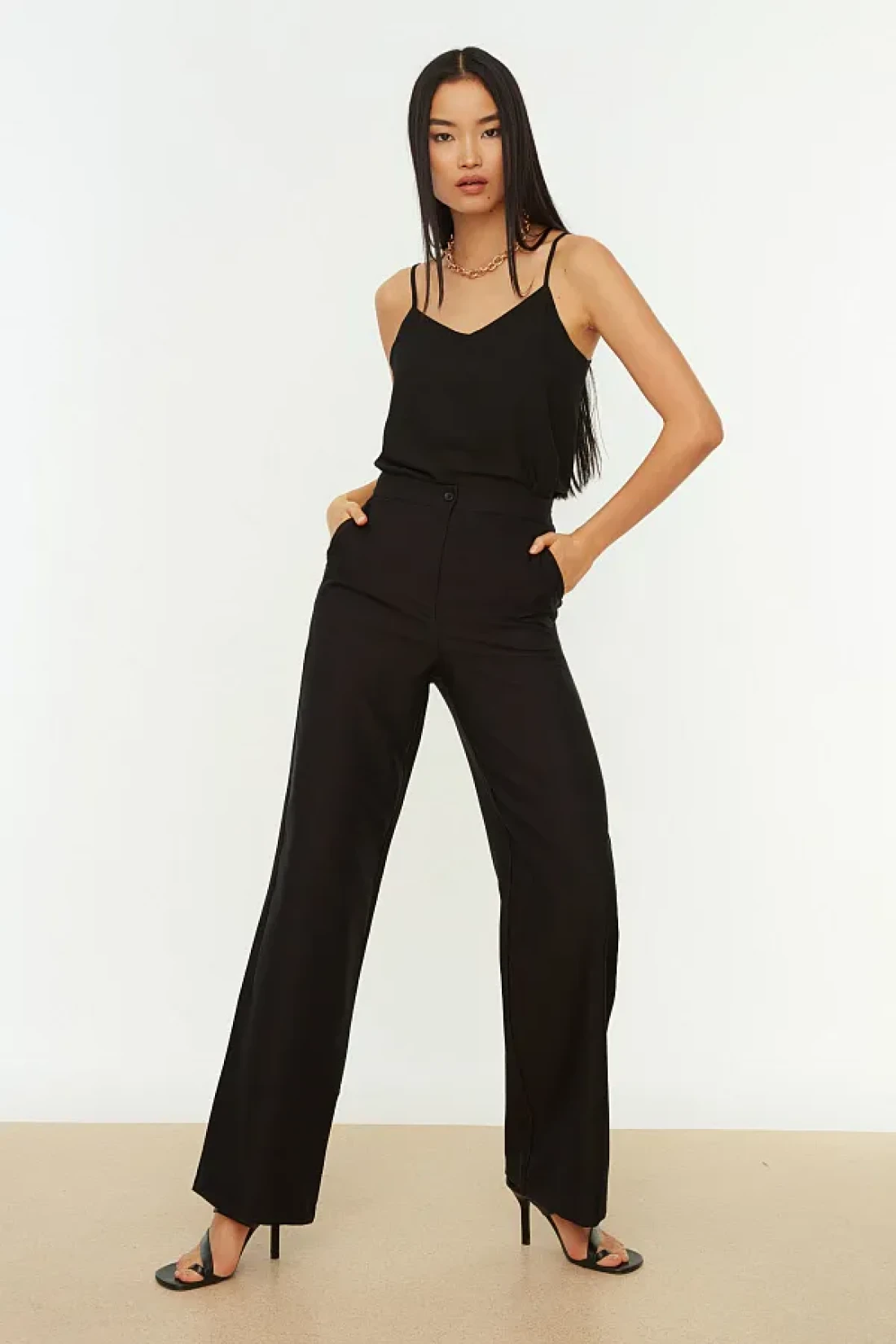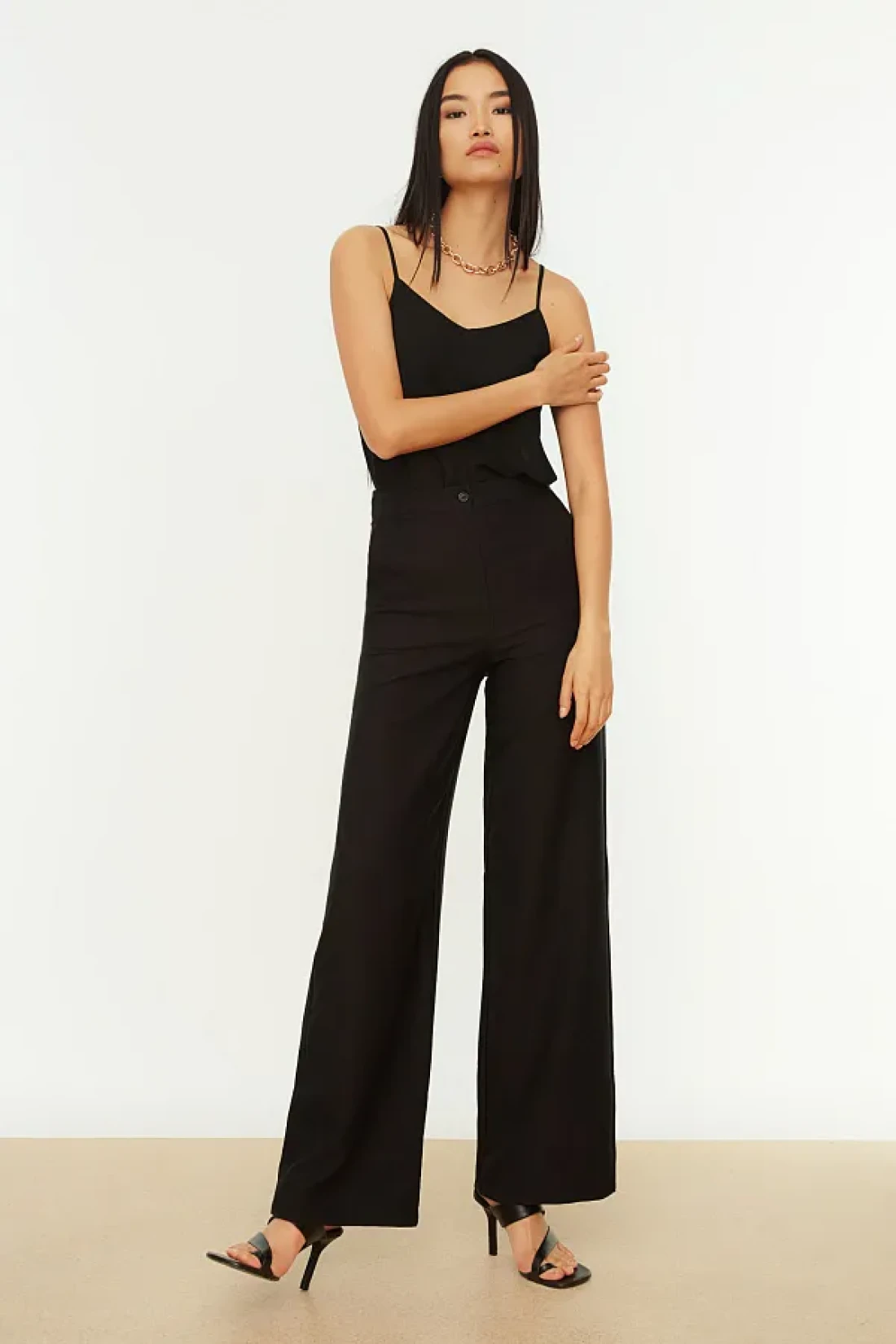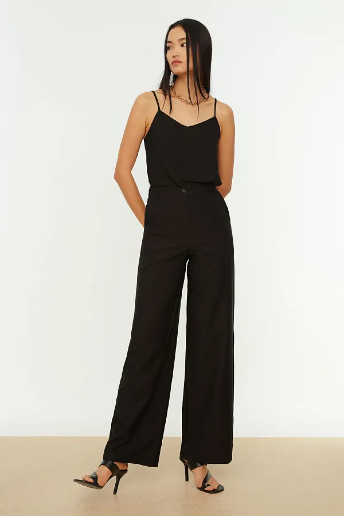 Collection Wide Leg Black Woven Trousers - Twoaw21Pl0332