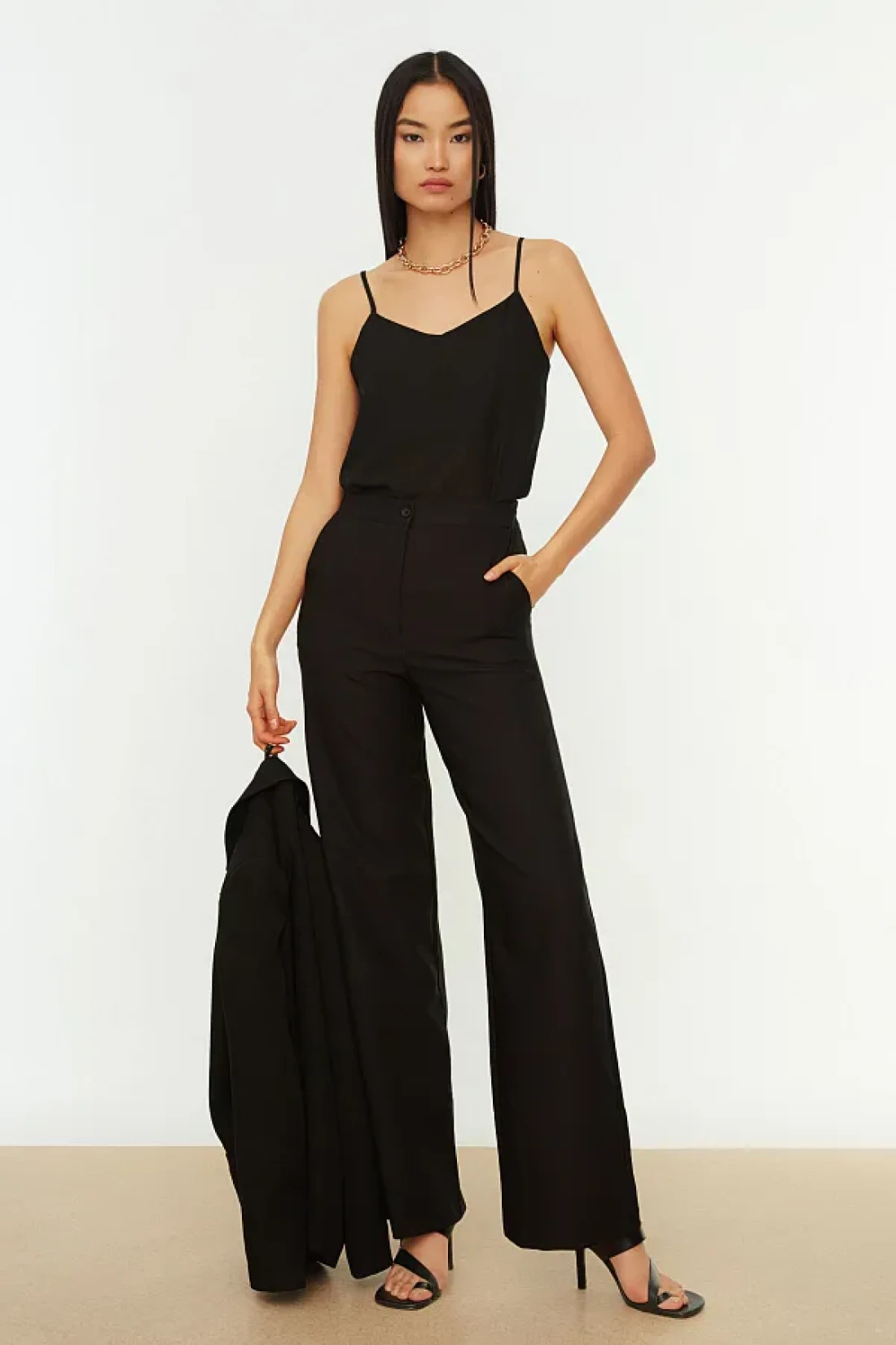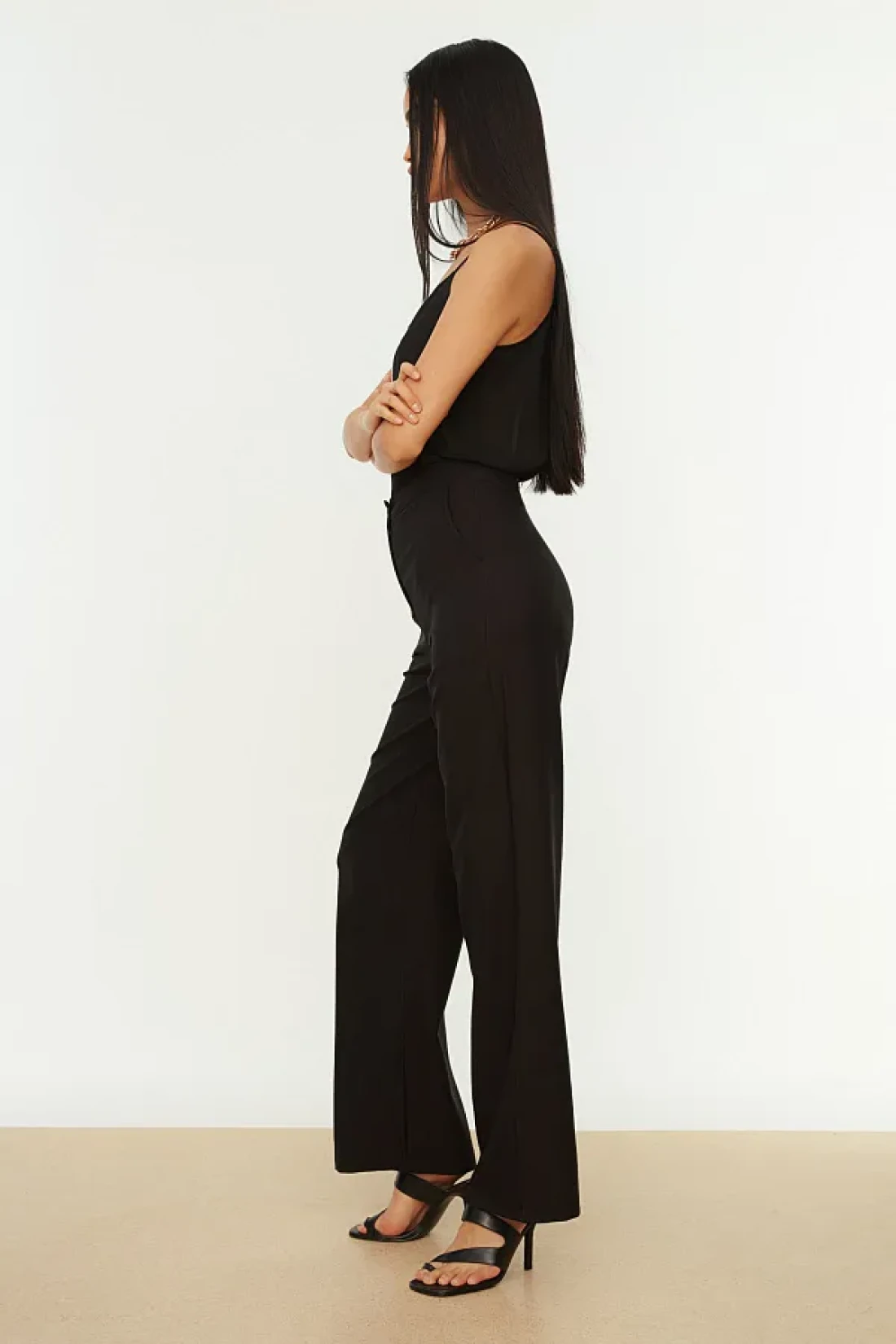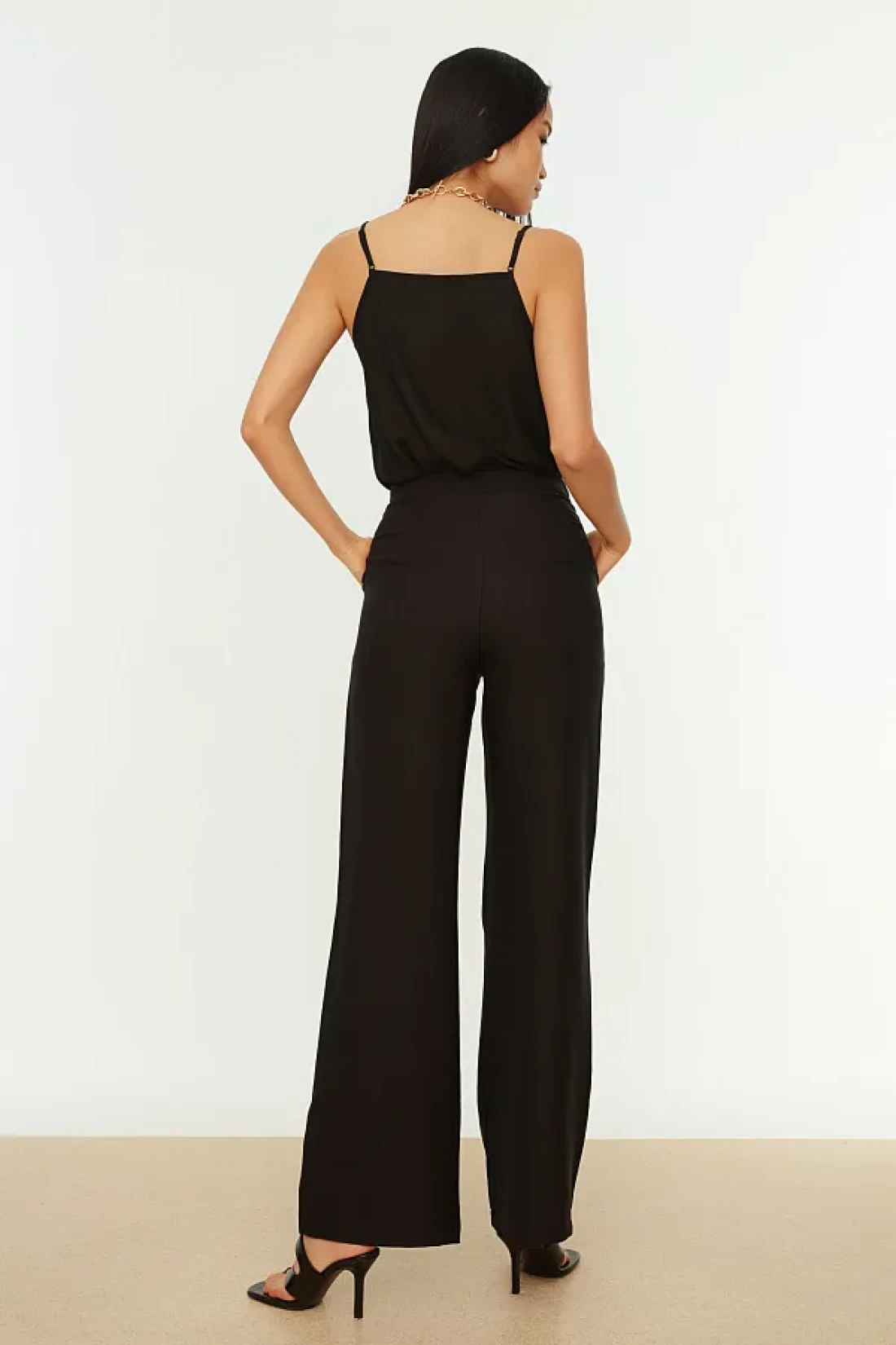 Collection Wide Leg Black Woven Trousers - Twoaw21Pl0332