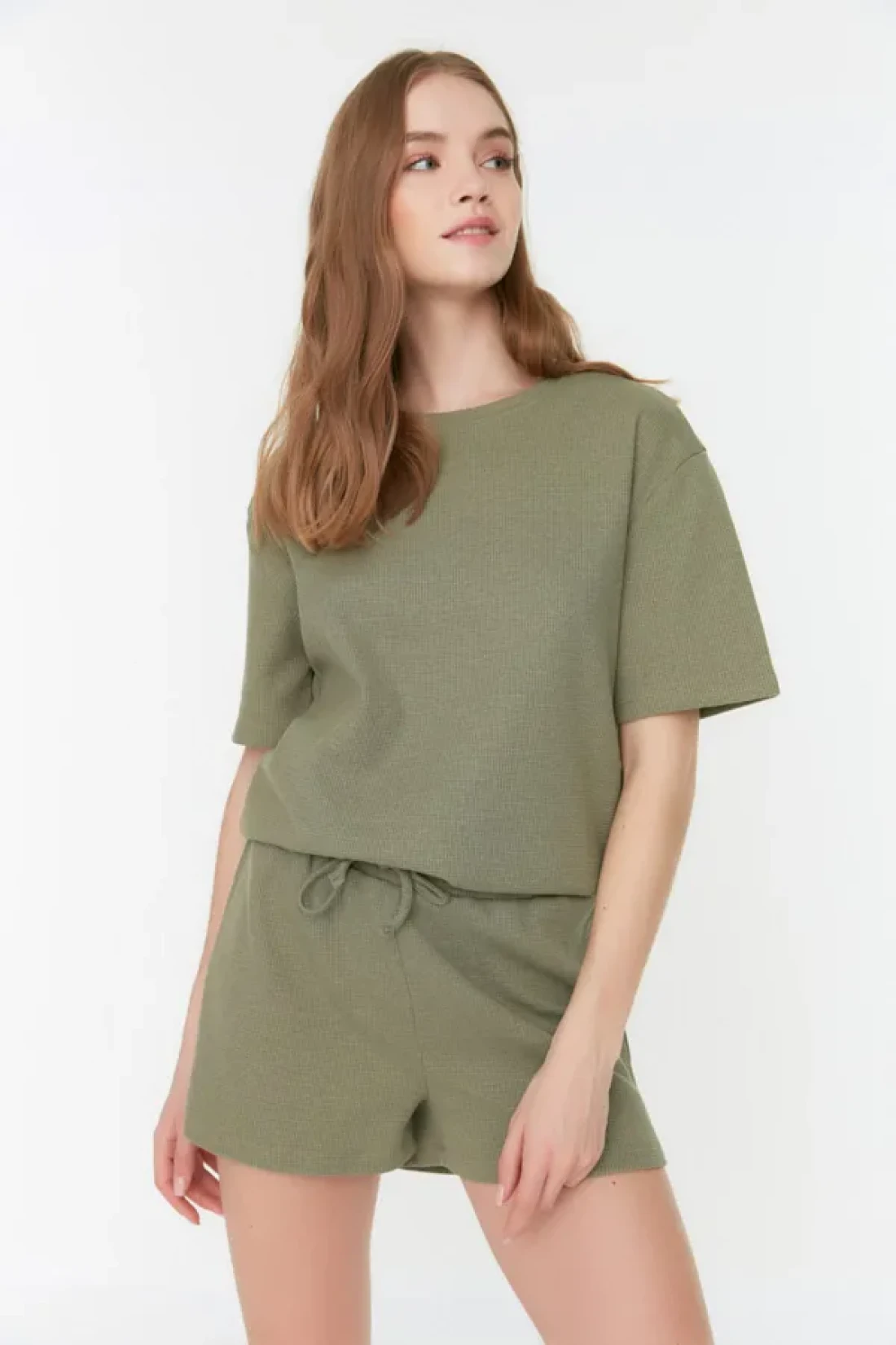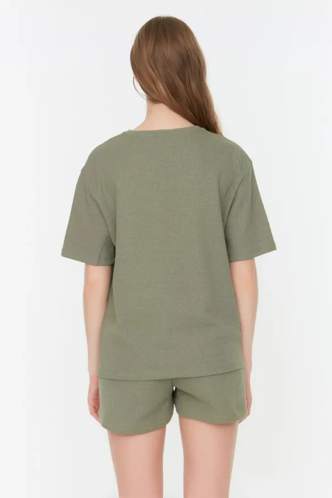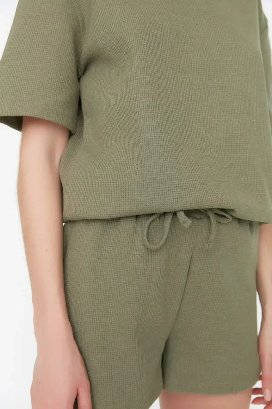 Collection Khaki Waffle Fabric Knitted Pajamas with Shorts Thmss22Pt0524