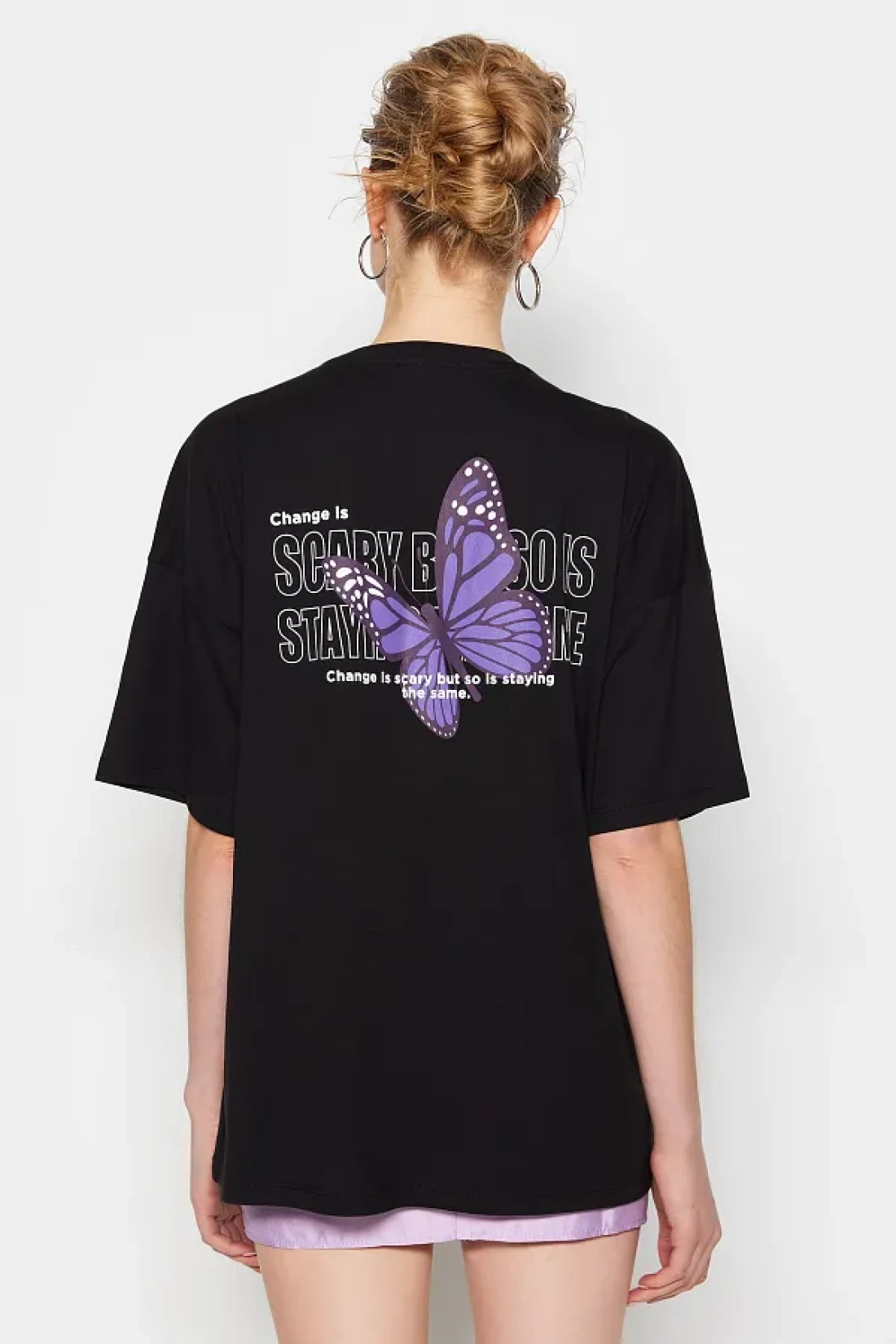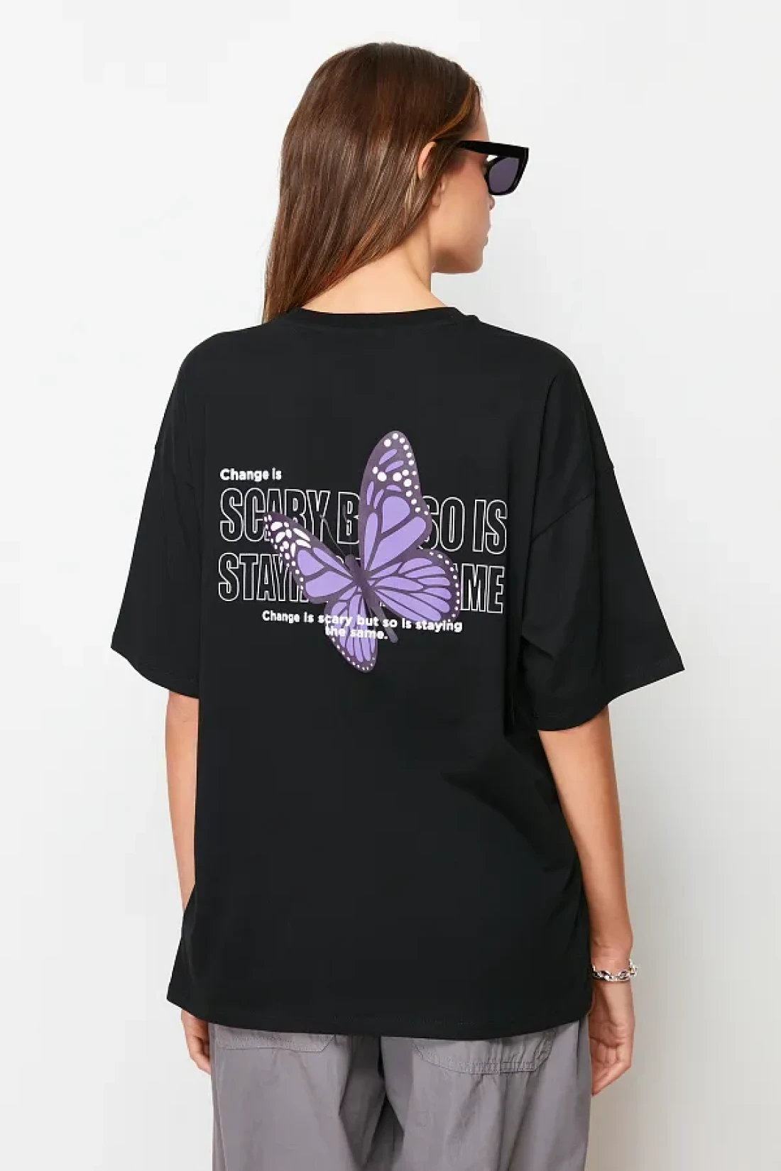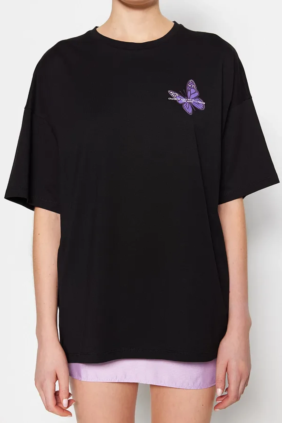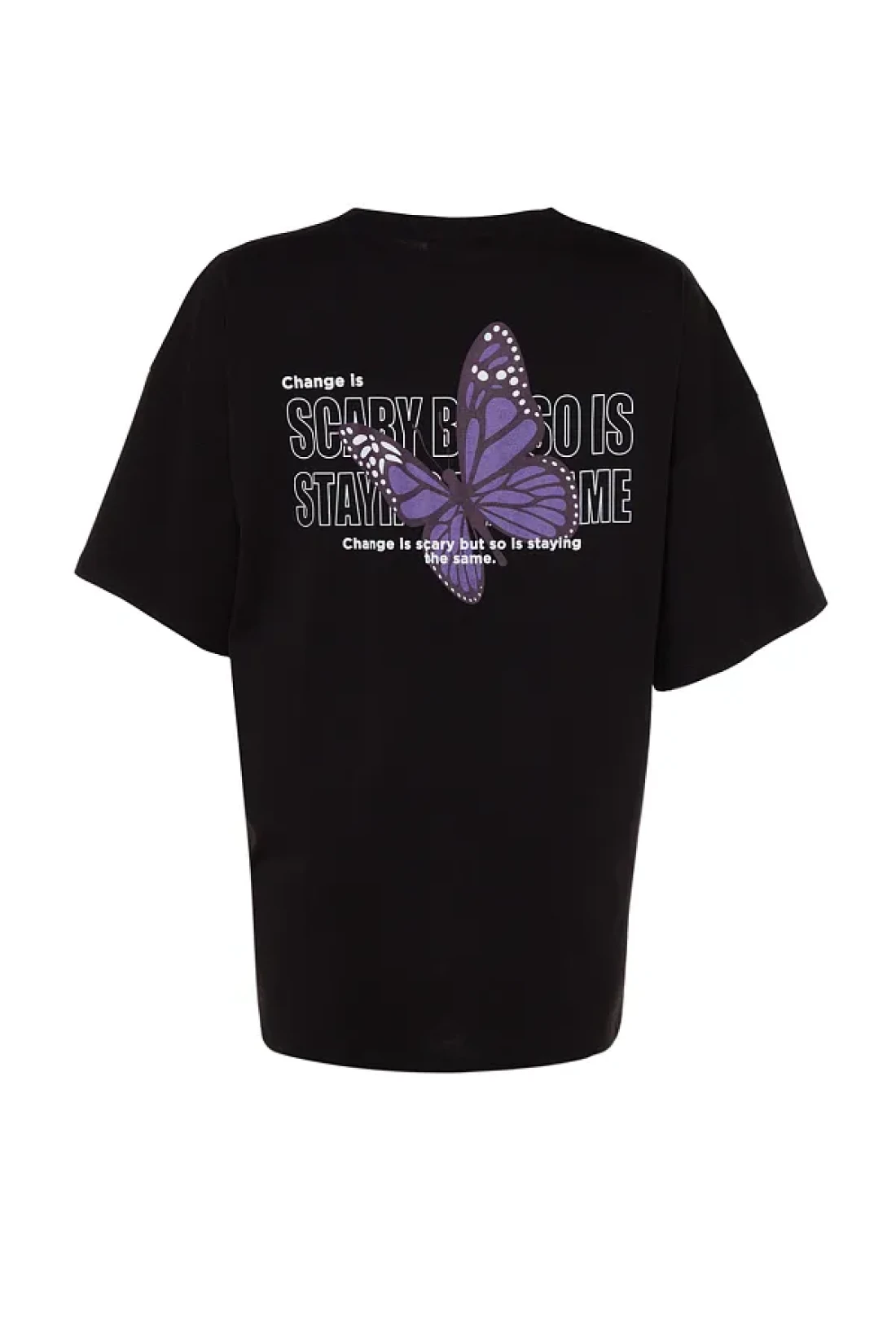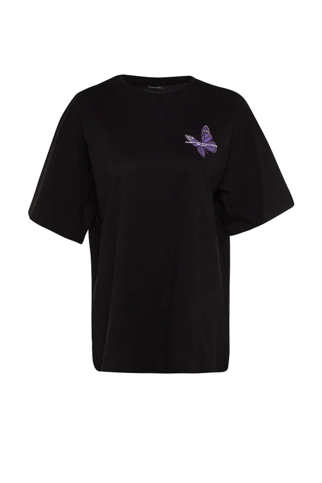 Collection Black 100% Cotton Front and Back Butterfly Printed Oversize/Wide Pattern Knitted T-Shirt TWOSS23TS00188