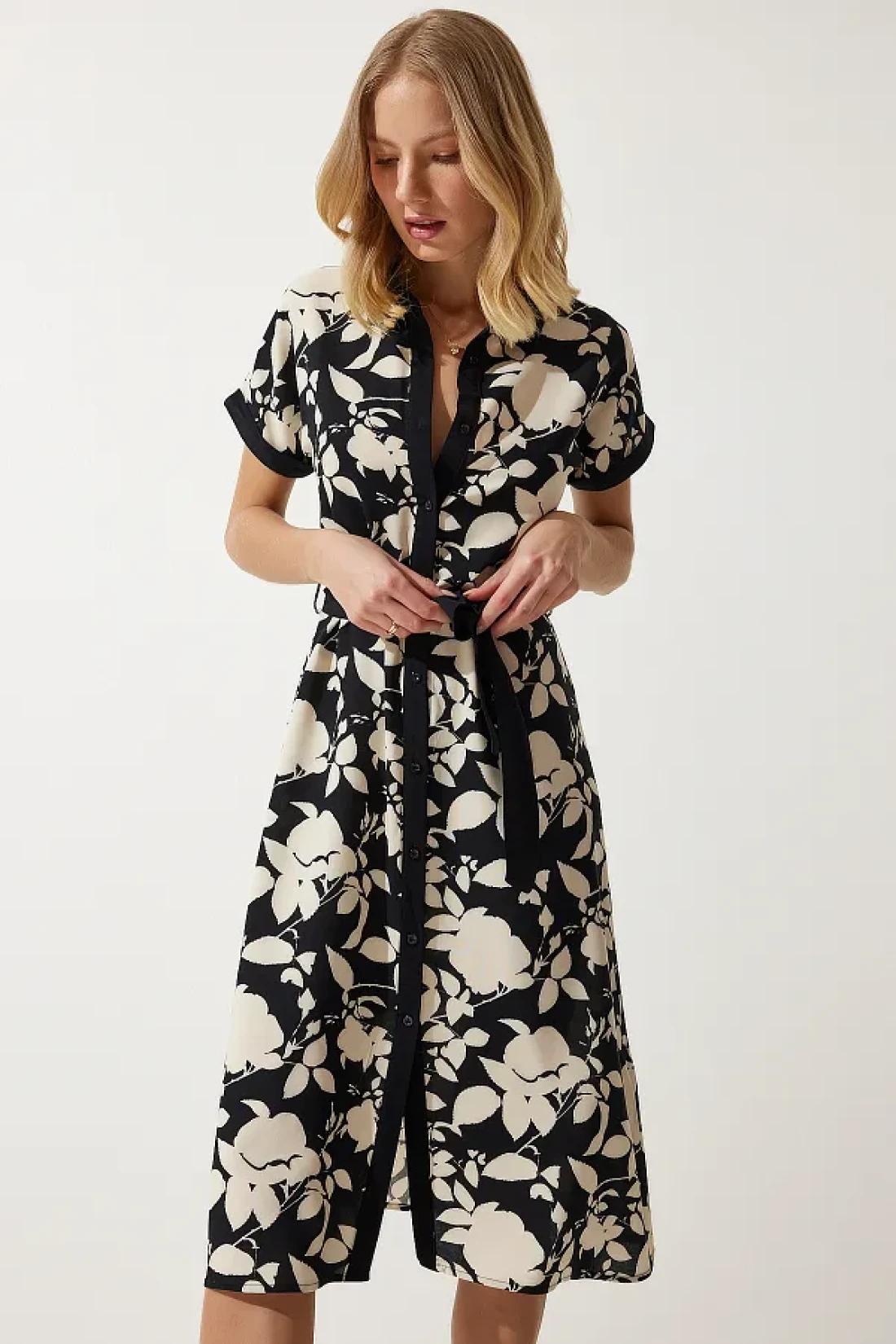 The belt detail emphasizes the waist area and creates a feminine silhouette. It has a wide user range with its design that appeals to all age groups. With standard arm type, it does not restrict your freedom of movement Thanks to its shirt pattern, it offers comfort and elegance together. It brings the energy of summer to your style with its floral pattern. Belt details make the waist area elegant