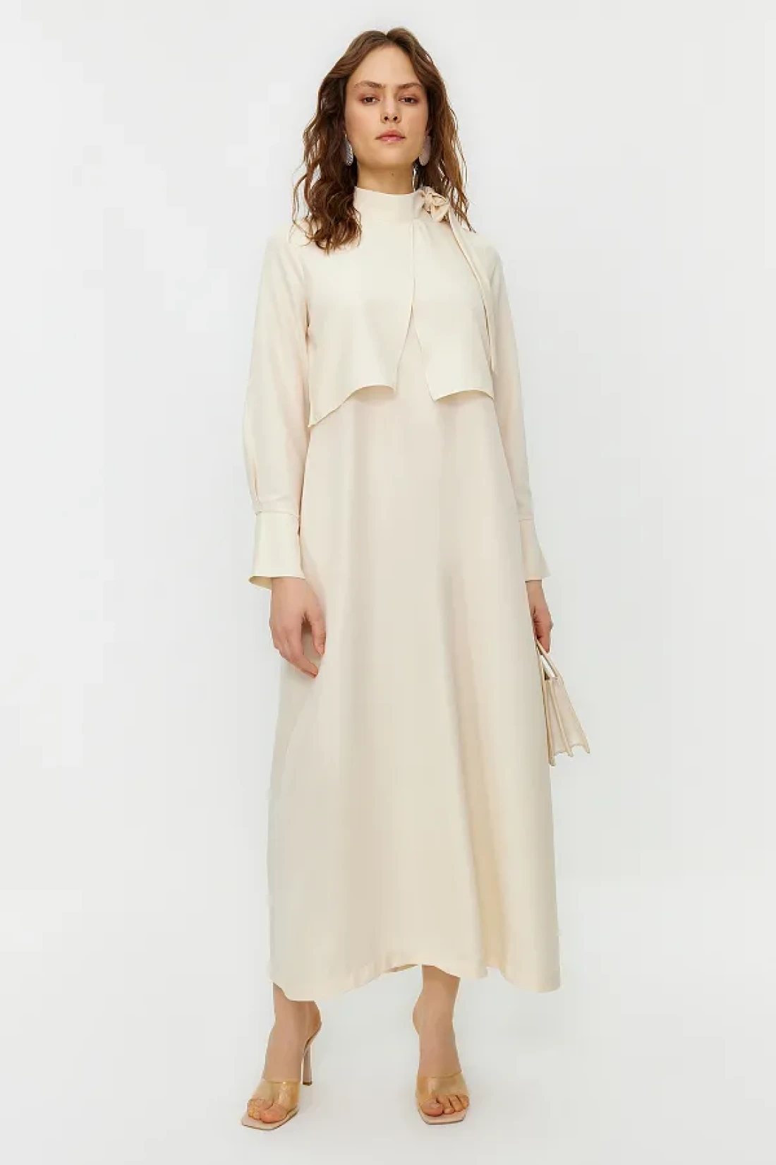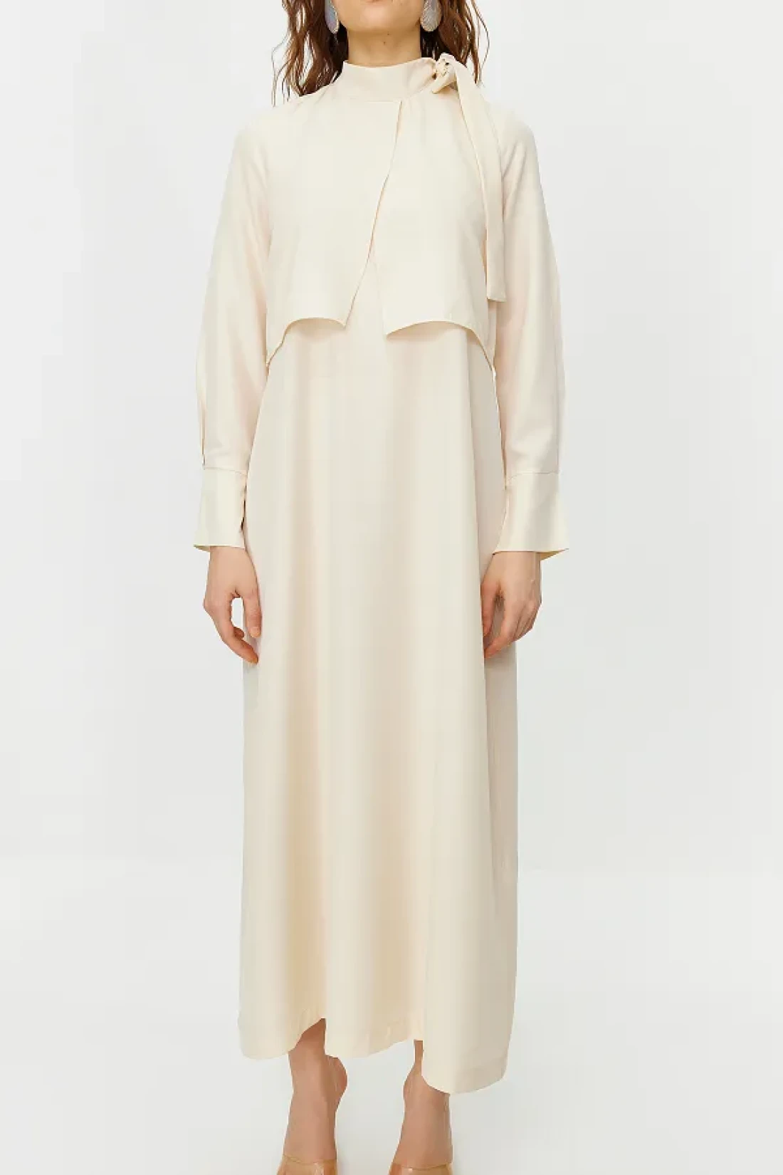 Modest Stone Collar Tie Detail Woven Dress TCTSS23EB00283