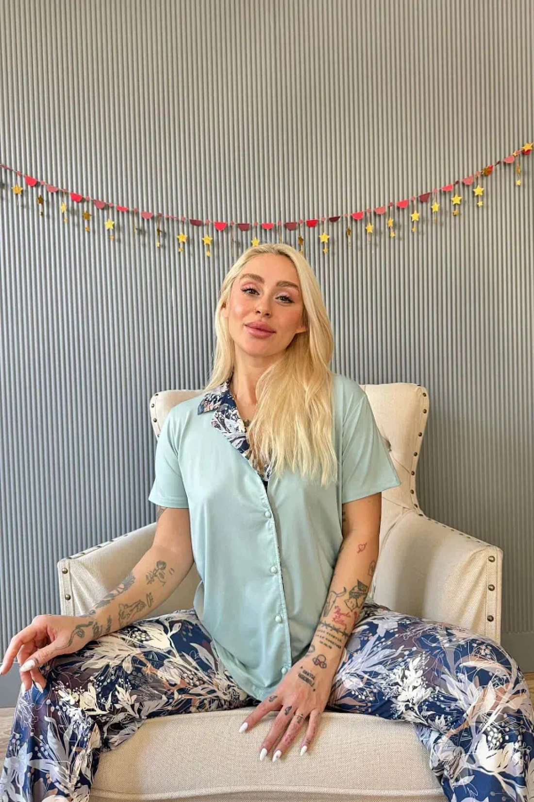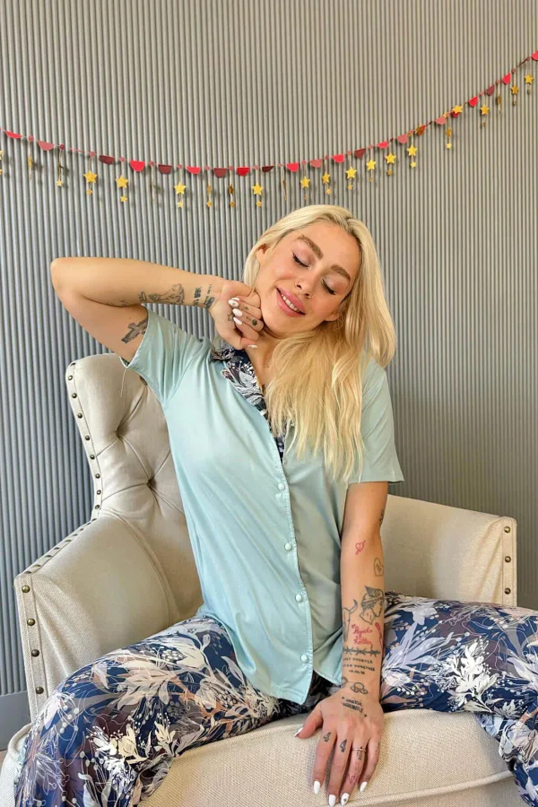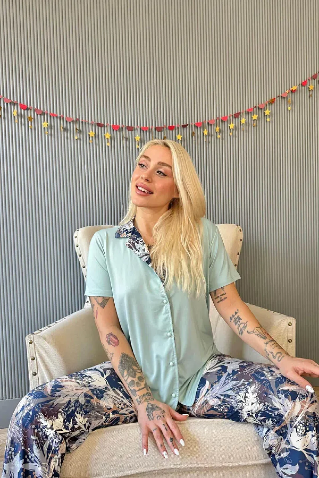Fabric type: 95% bamboo 5% elastane Made of imported yumoş lycra fabric and short sleeve single color six long women's summer pajama set with buttons on the front offers the comfort and elegance you are looking for on summer nights. The fabric blend of 95% bamboo and 5% elastane gives this pajama set a silky touch and exceptional softness, while ensuring a perfect match with your skin. The measurements of the model are