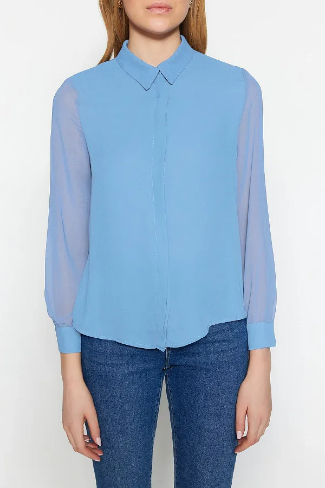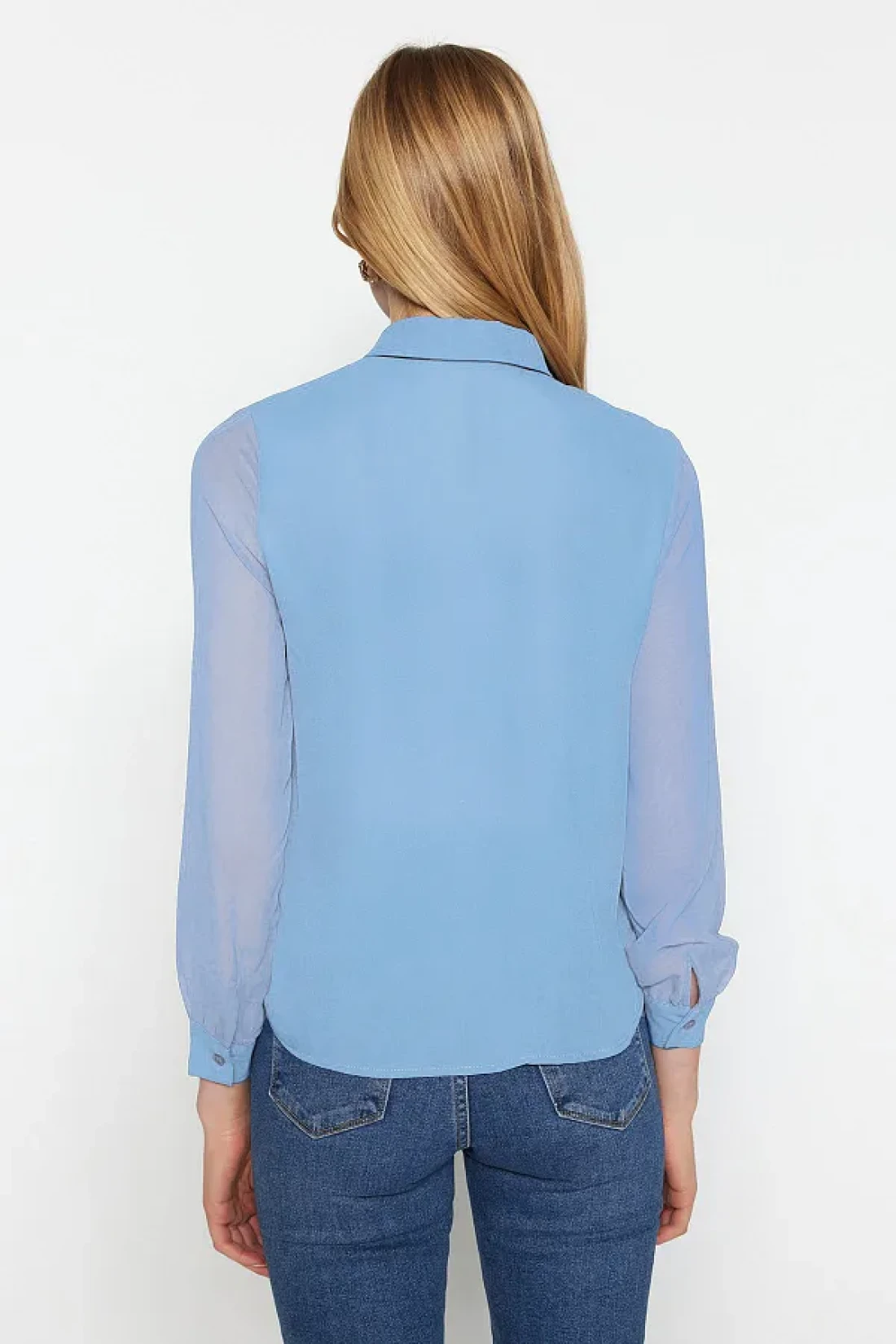 Collection Light Blue Woven Shirt - Transparent Sleeve, Regular Fit TWOAW20GO0116