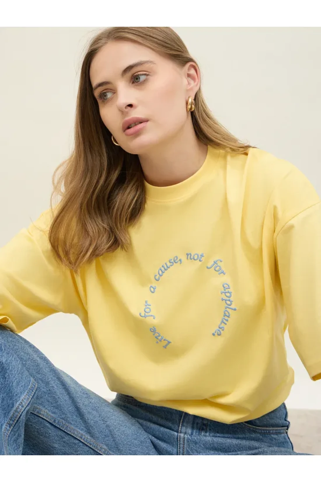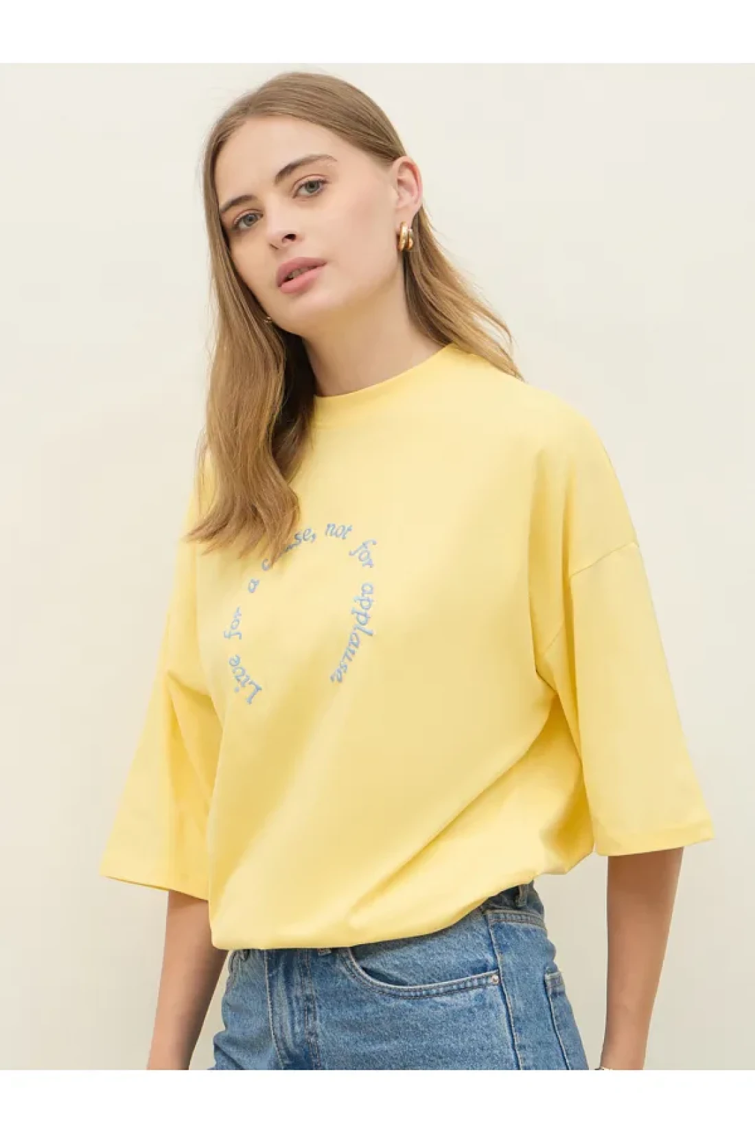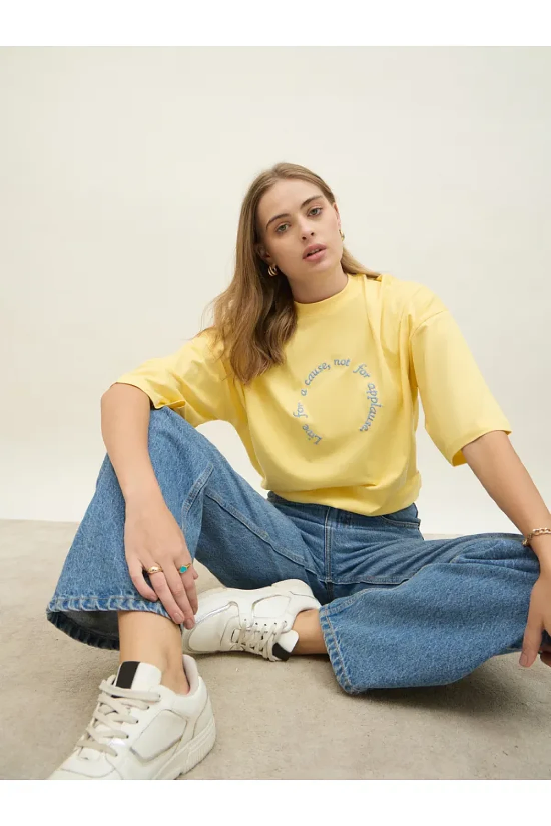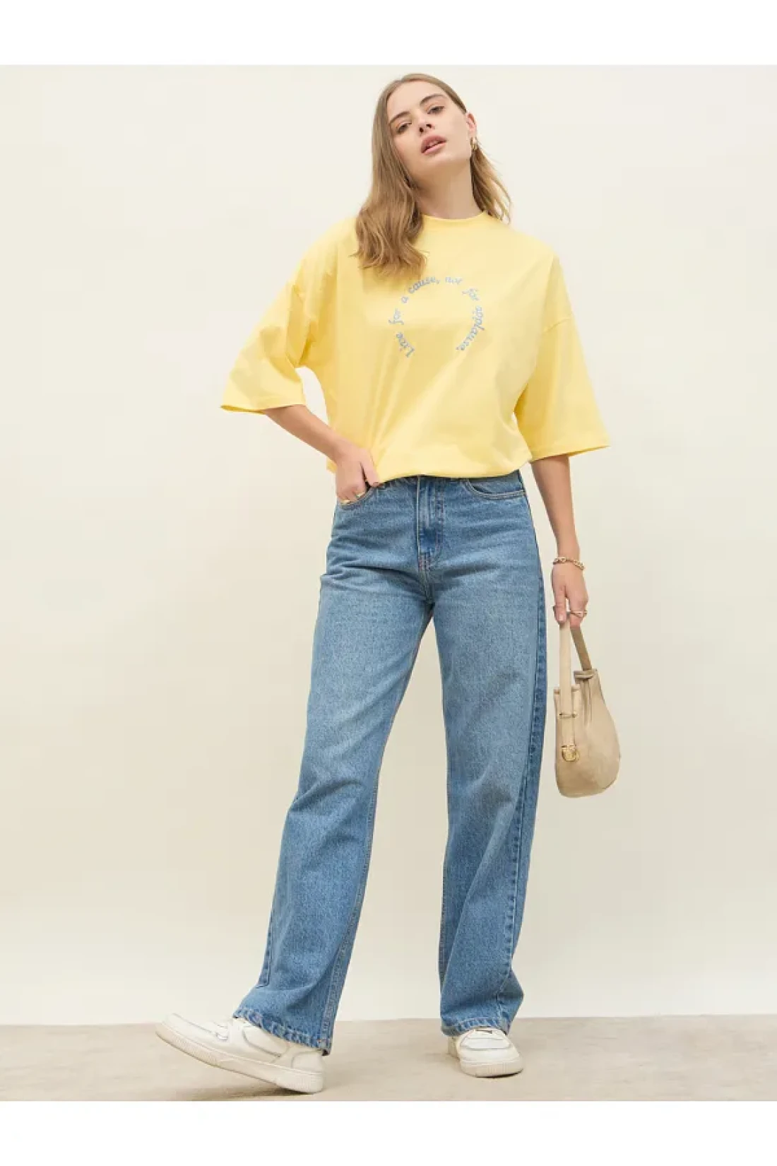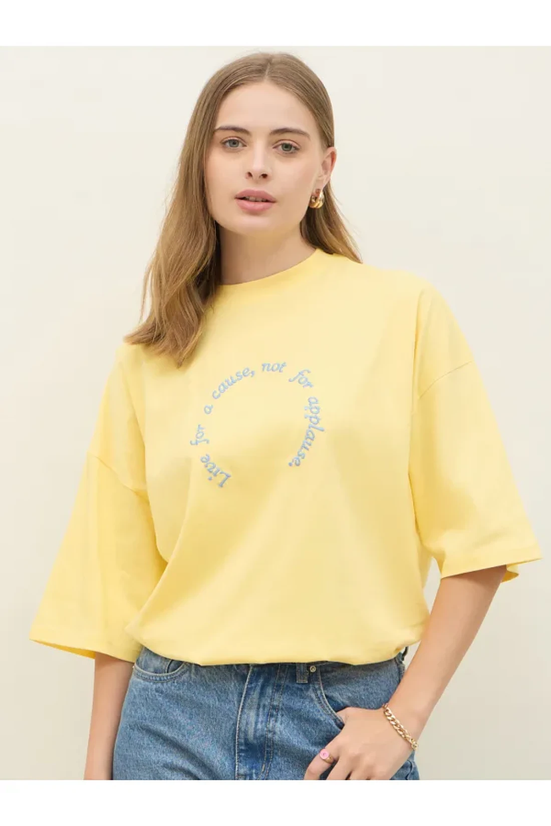 Styli Oversized Dropped Shoulder Embroidered Slogan T-Shirt