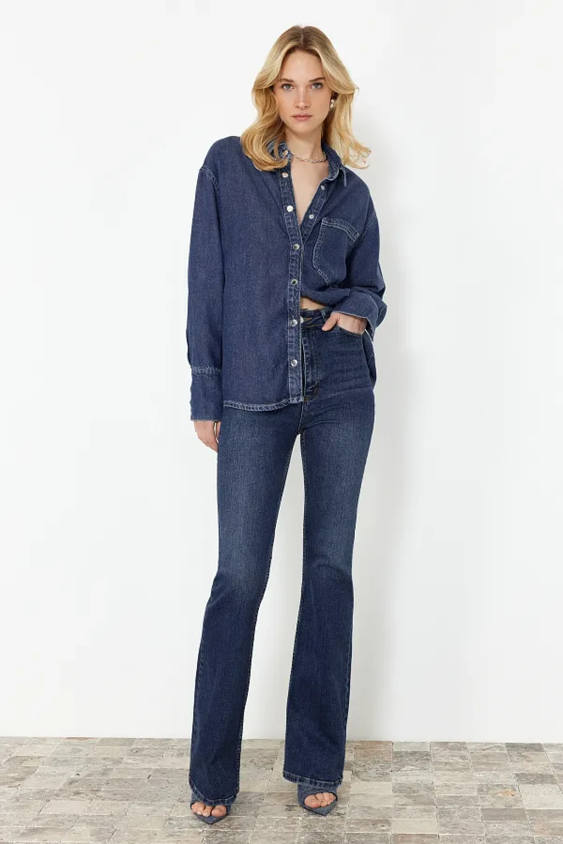 Collection Sustainable Dark Blue Oversize Denim Shirt - 100% Tencel ™ Twoss24Go00141