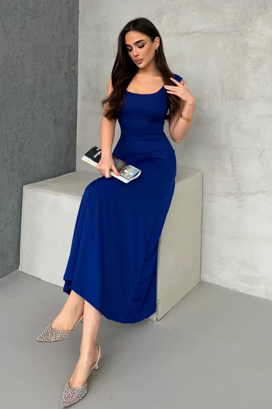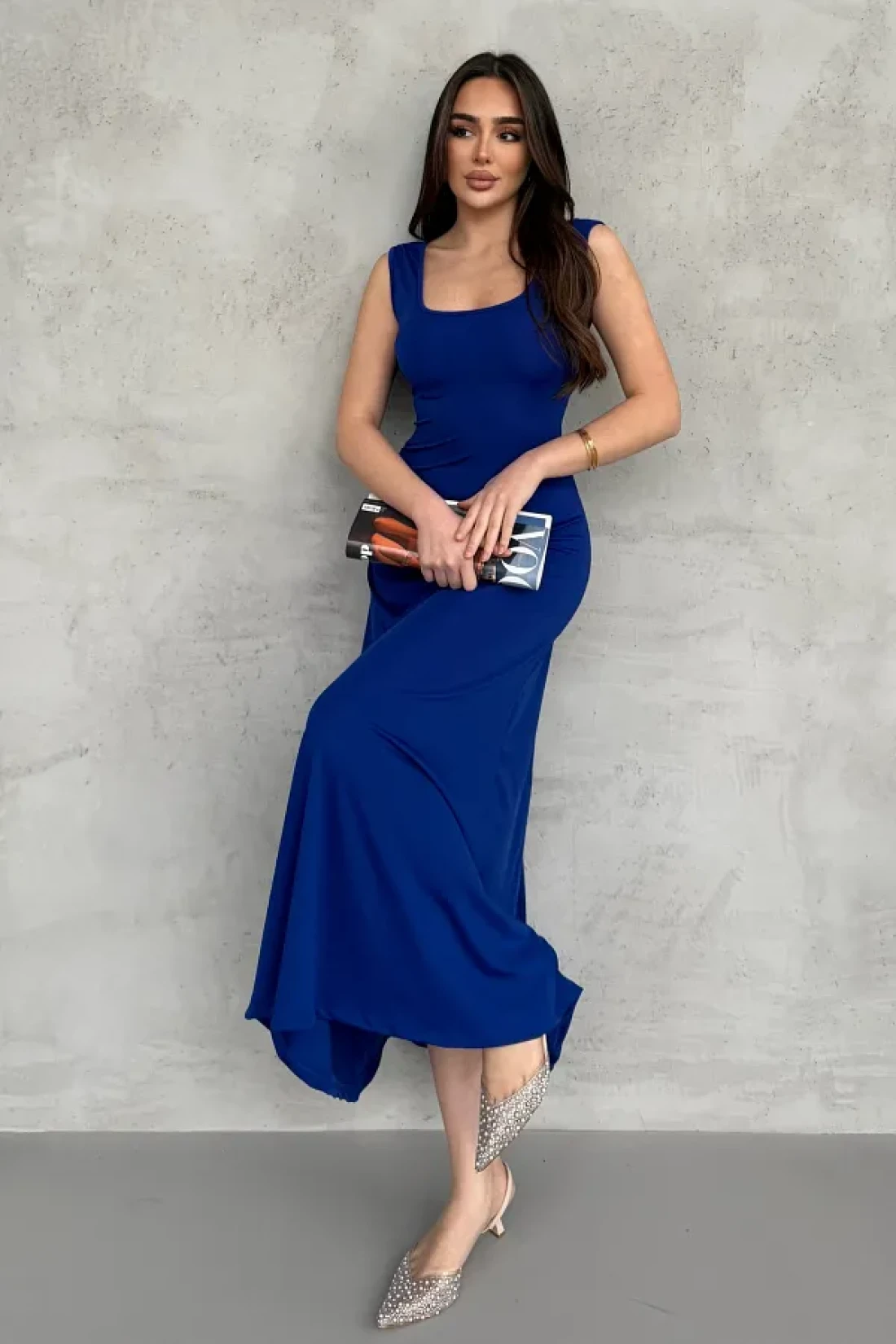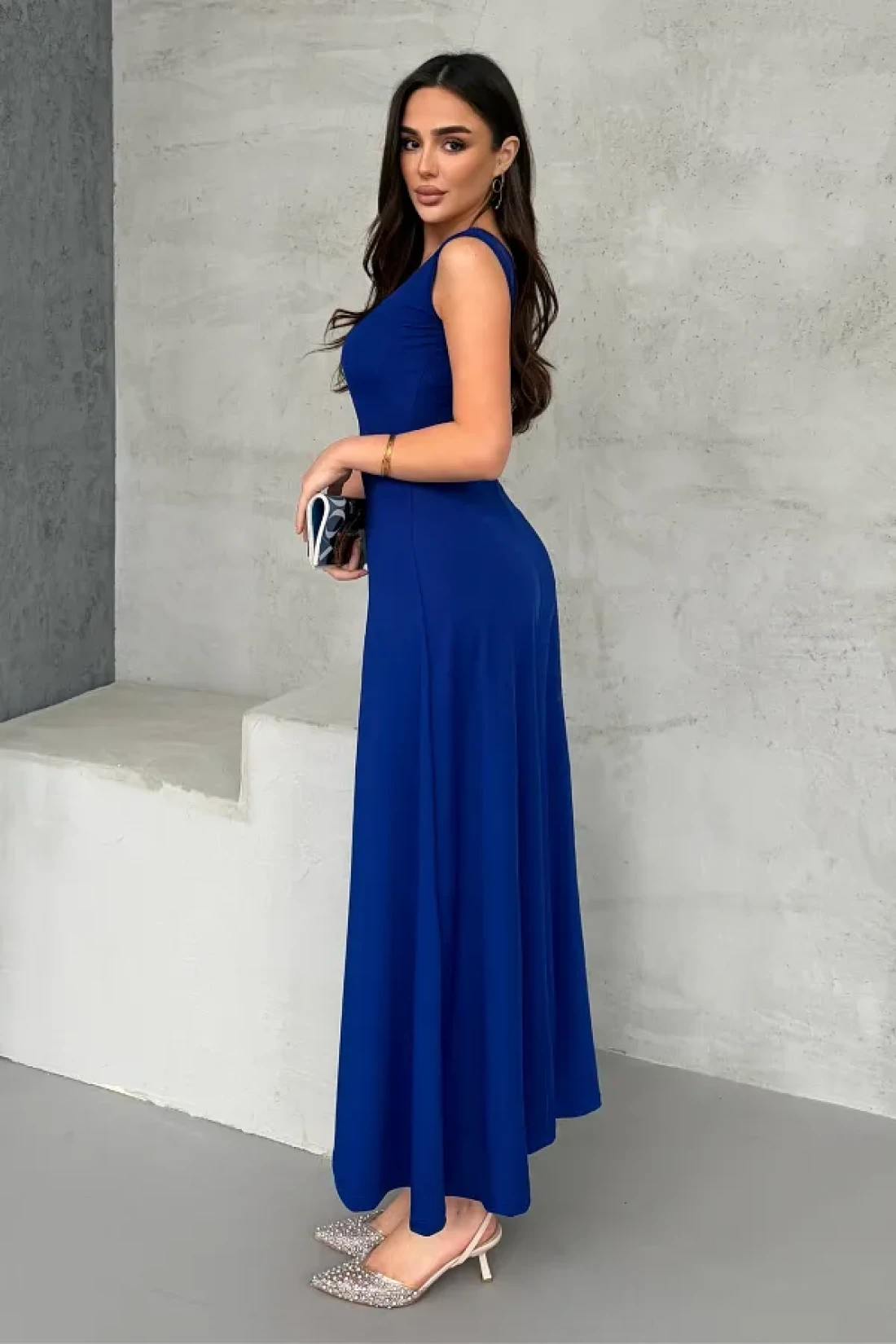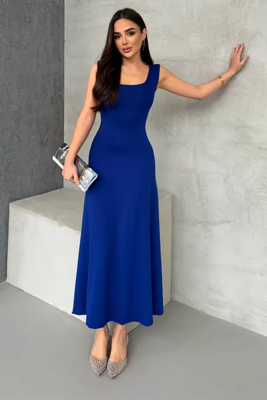 it keeps cool and attracts attention with its lightness. While it offers an elegant cleavage with its square neckline detail, it becomes the choice of those who prefer simplicity with its plain pattern. Thanks to its maxi length, it provides both stylish and comfortable freedom of movement.