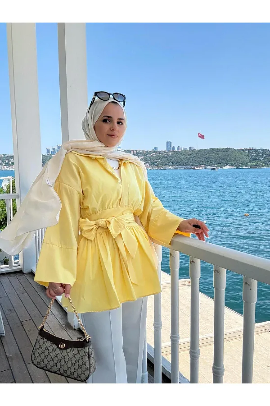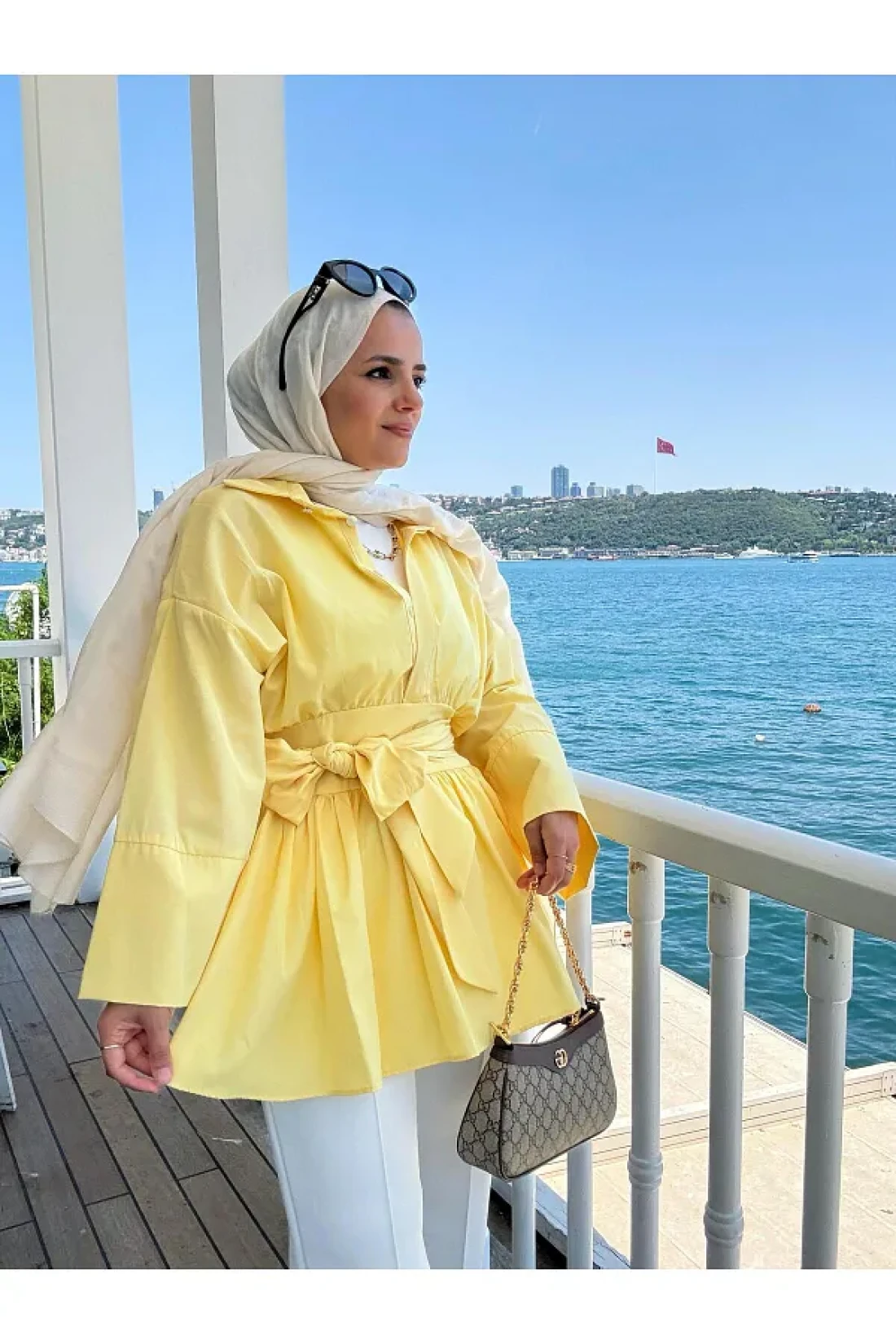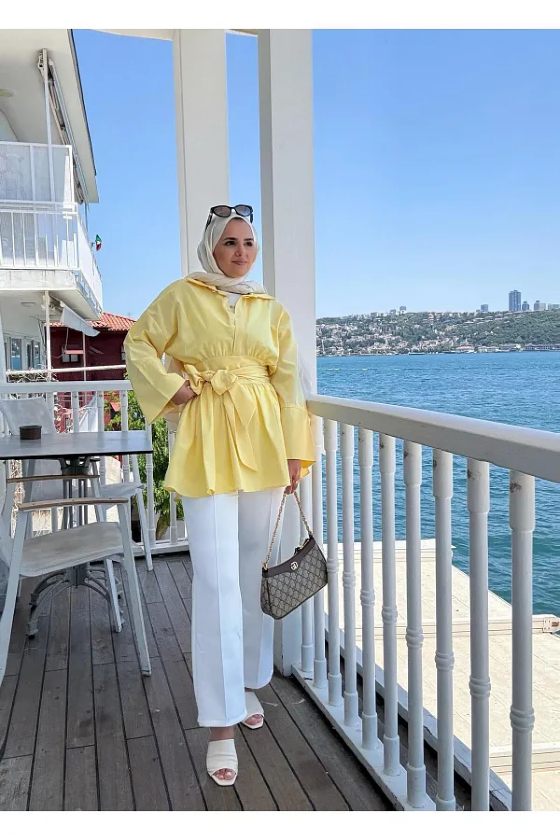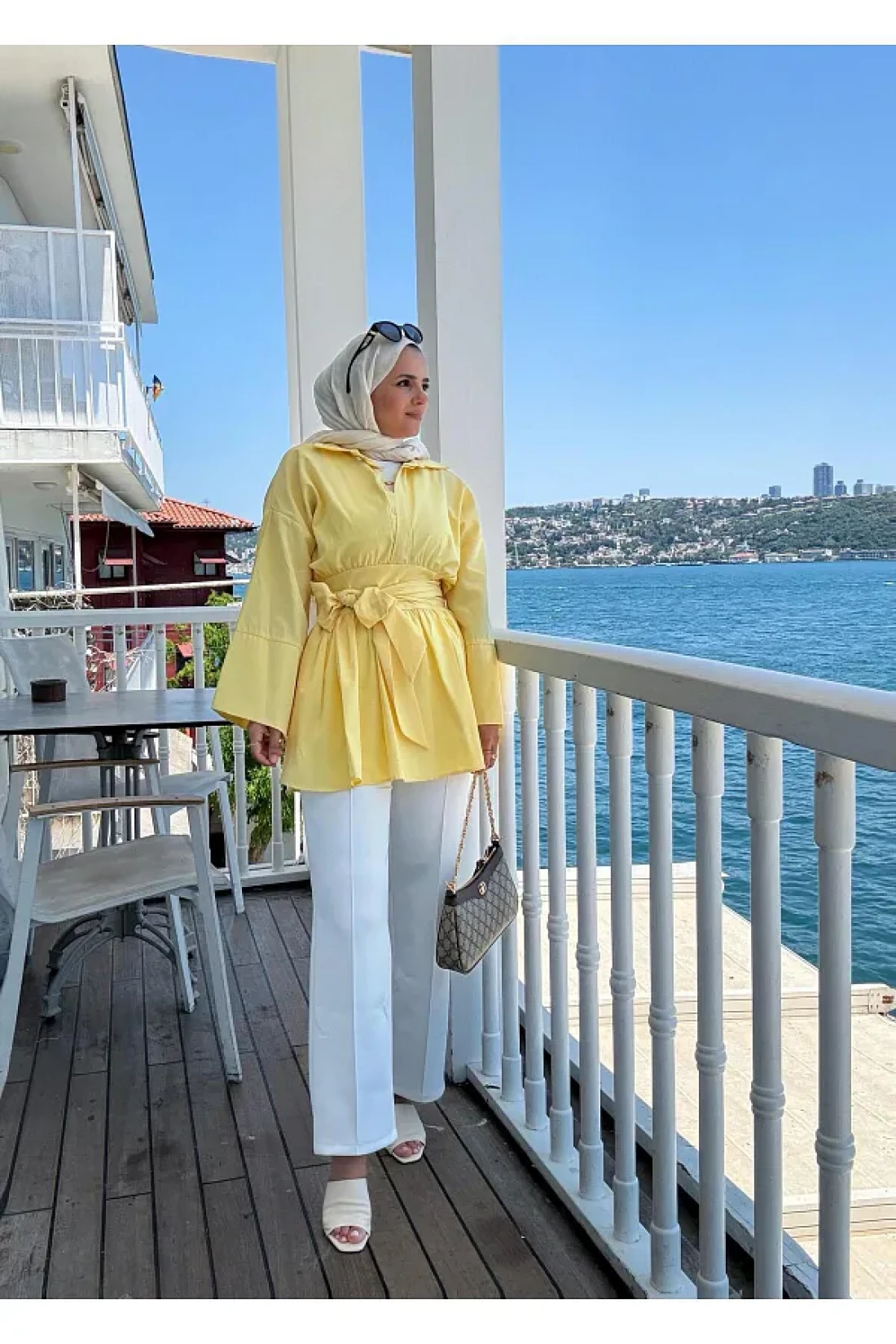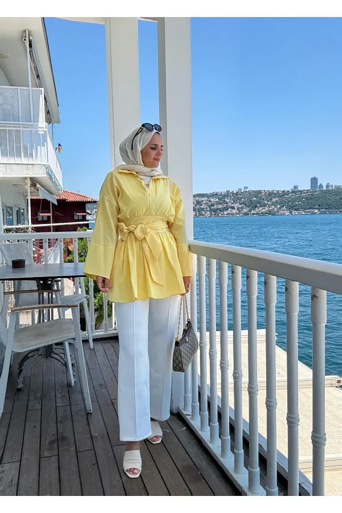 Aselim Hijap Moda Poplin Kimono -Scuba Pants Shirt Suit Yellow