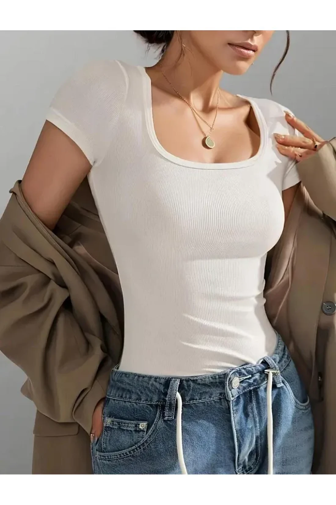 Wearflawless Square Neck Short Sleeve Cotton Twill White Blouse
