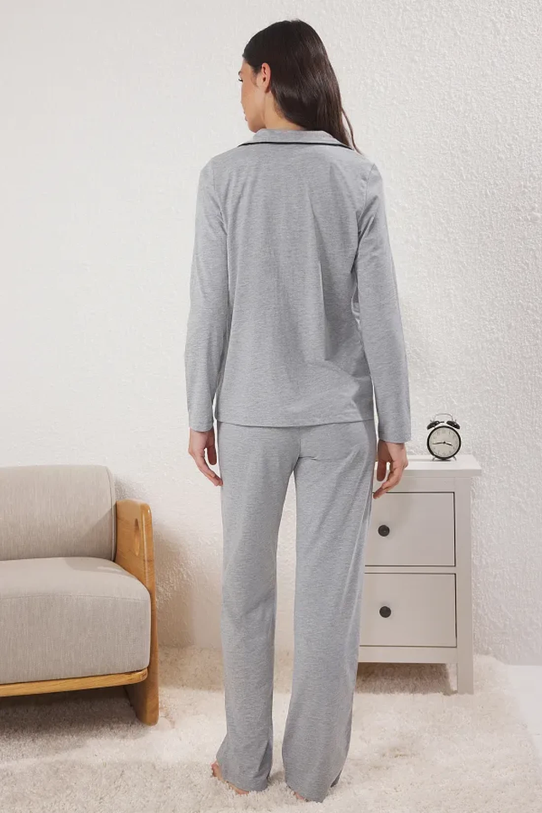 Collection Cotton Gray Printed Pajamas Set - Piping and Pocket Detail Thmaw22Pt0785