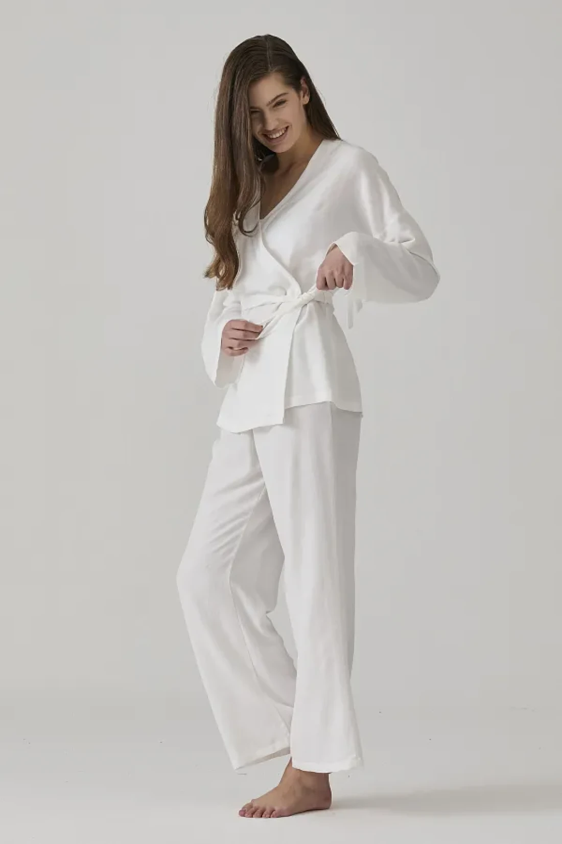 Pamuk Pamuk Women's Ecru Jacquard Kimono Collar Pjamas Suit