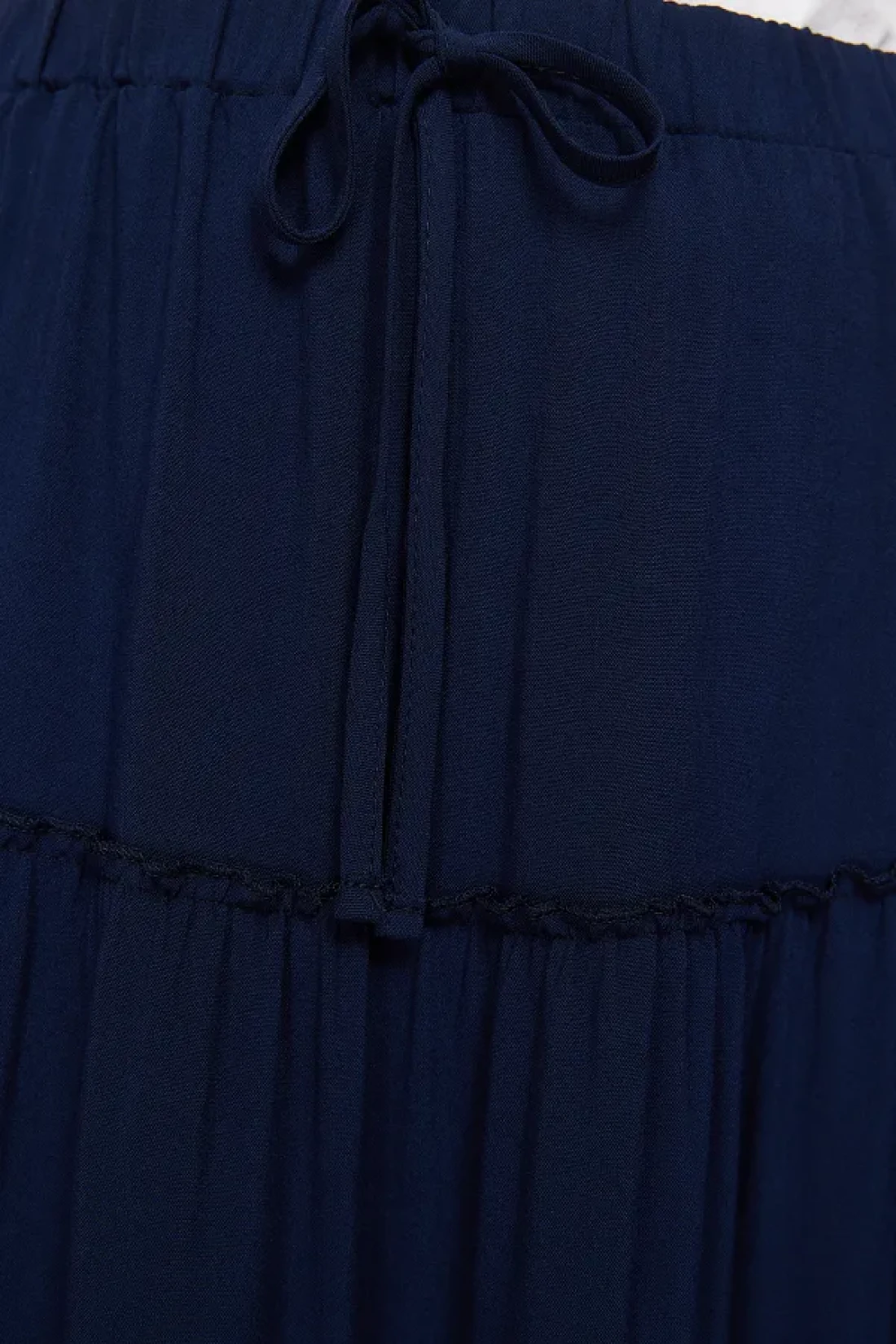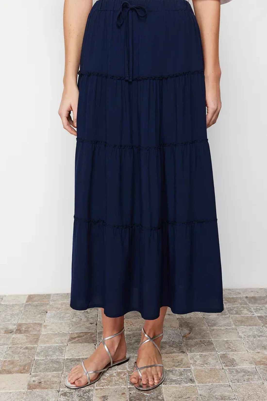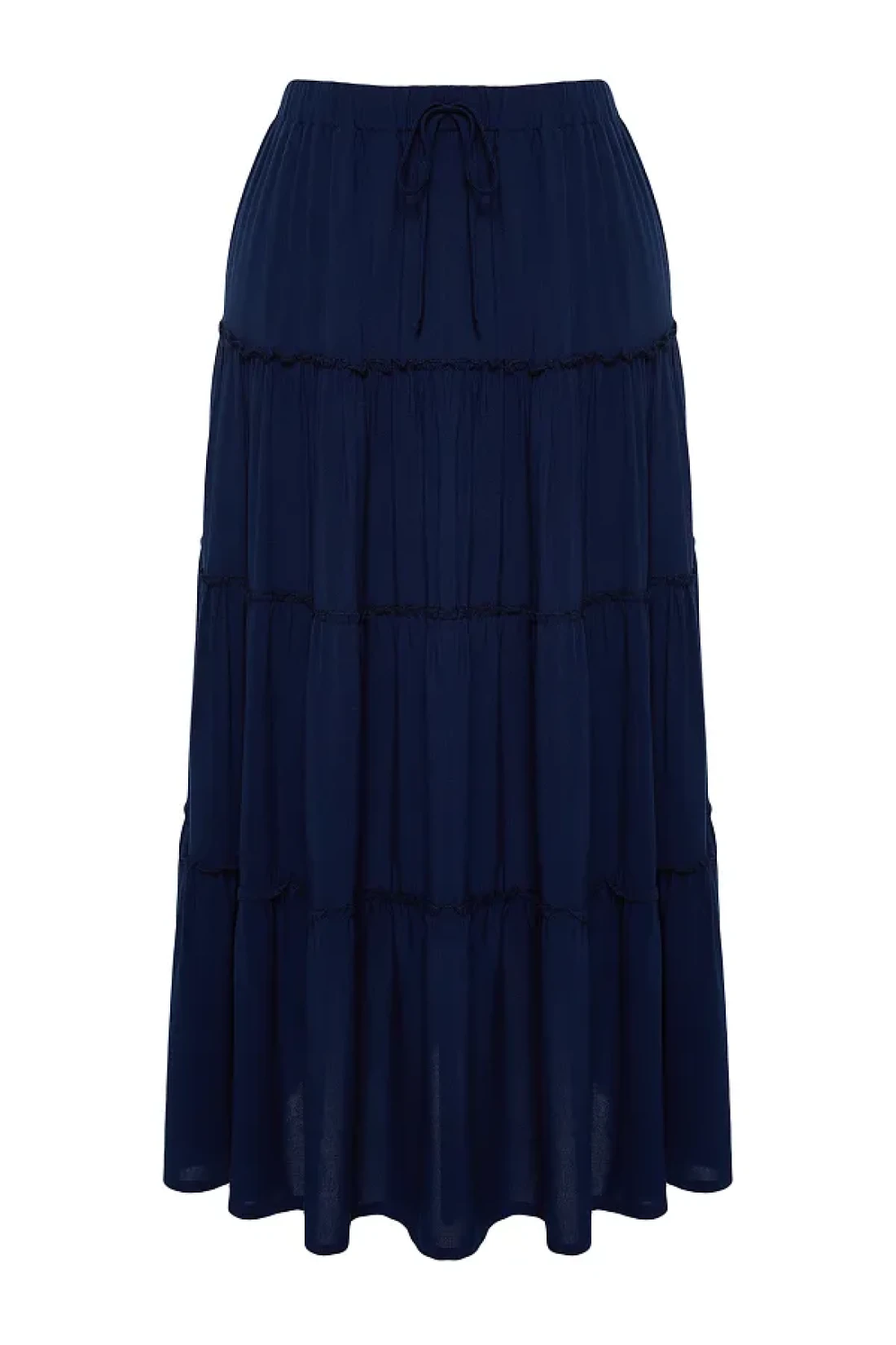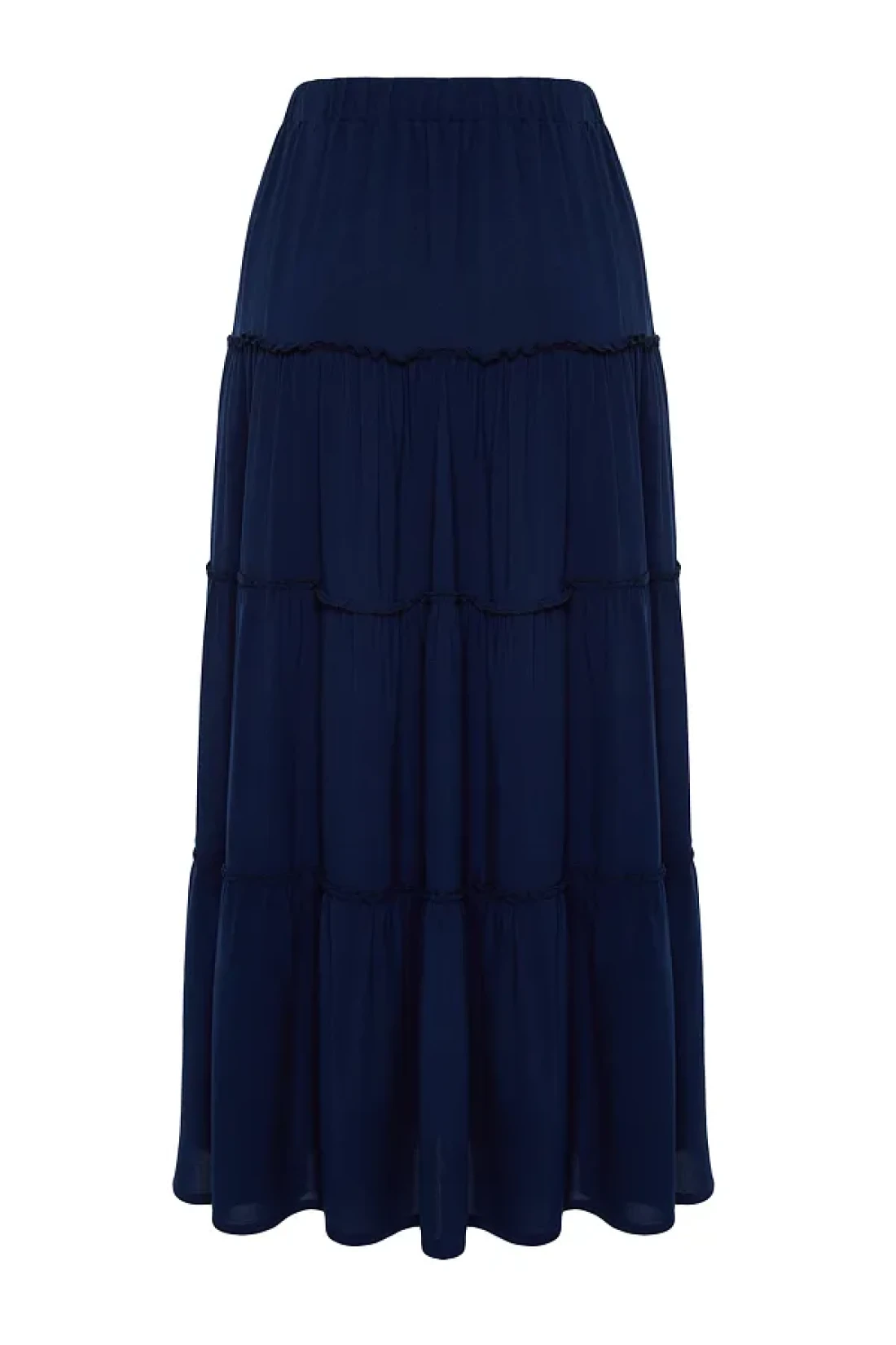 Collection Navy Blue Flared Maxi Length Woven Skirt with Gather Detail at Waist TWOSS24ET00098