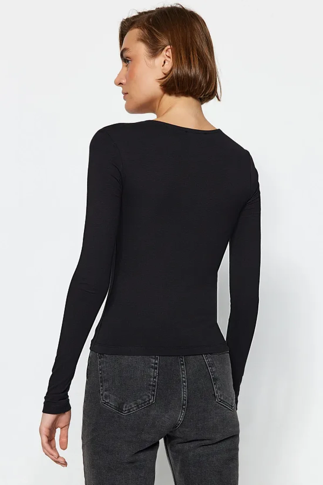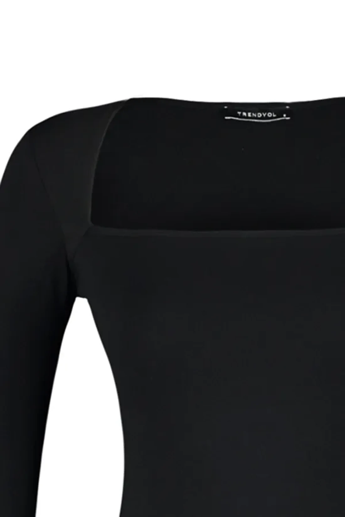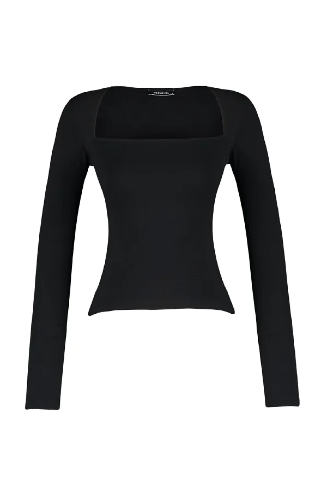 Collection Black Cotton Stretchy Square Neck Fitted Blouse TWOAW24BZ00165