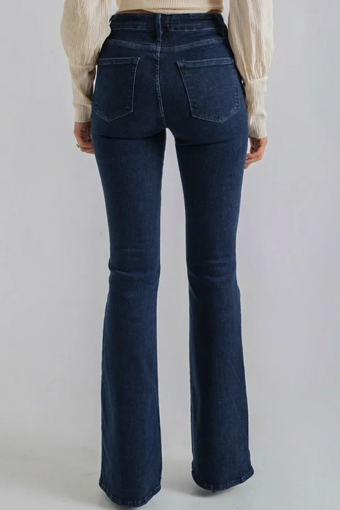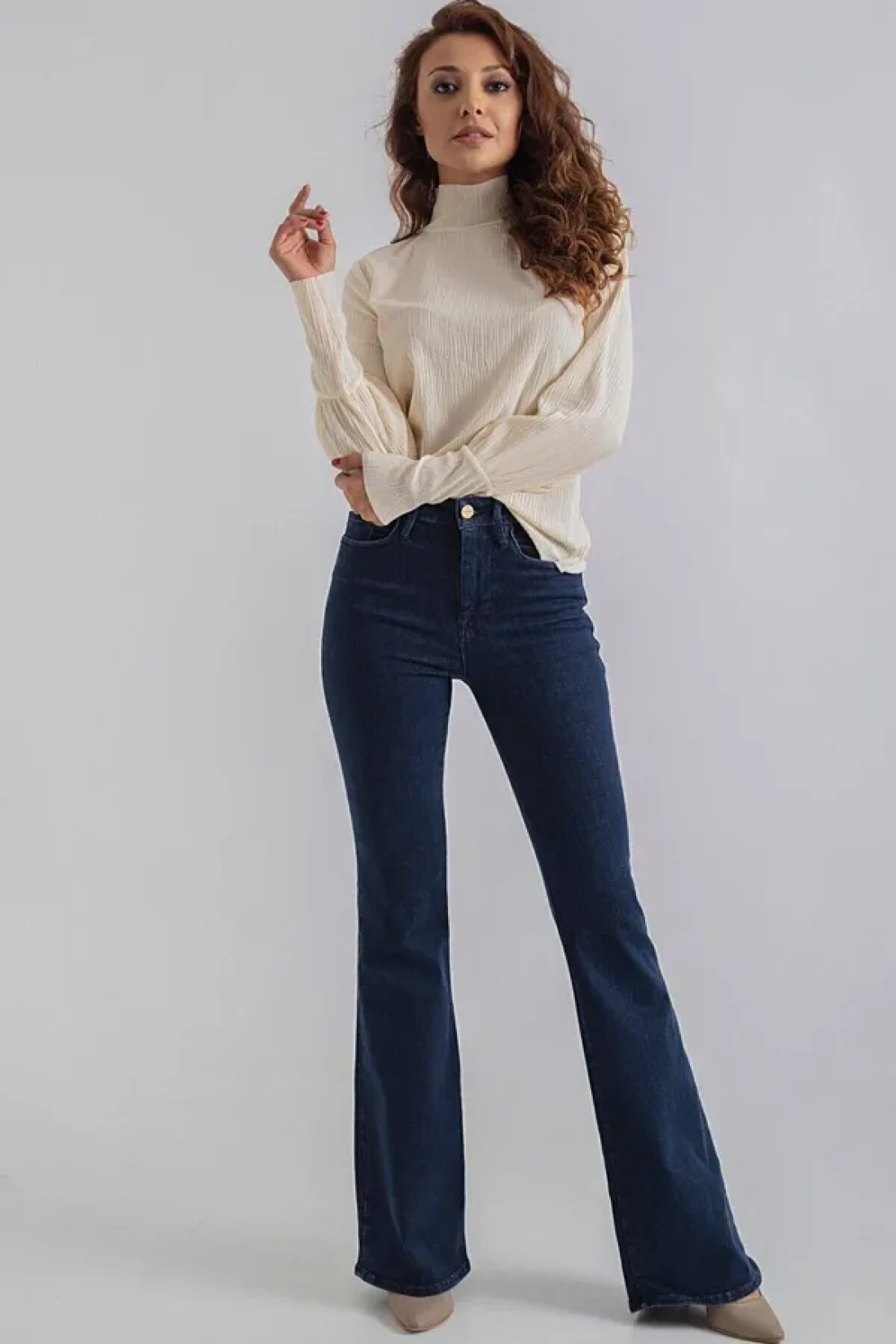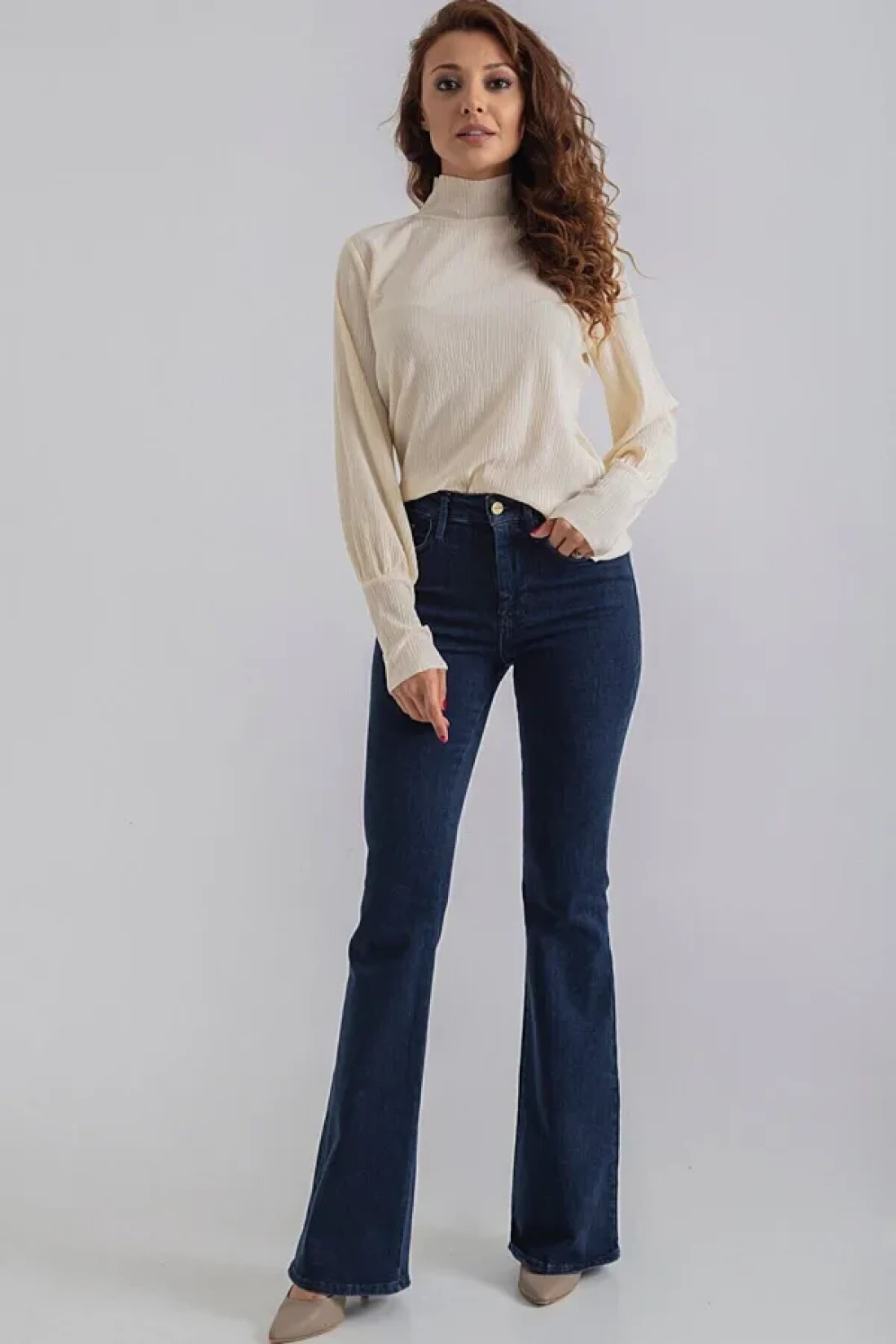 Thanks to its bootcut silhouette, it offers a modern and trendy style, and it stands out with its bell-bottom design.
