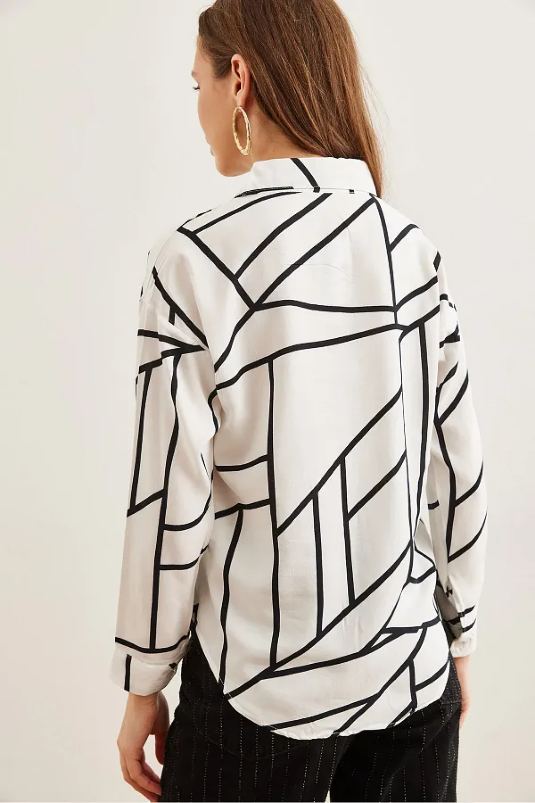 Olalook Women's Asymmetrical White Single Pocket Woven Viscose Shirt Gml- 19000890