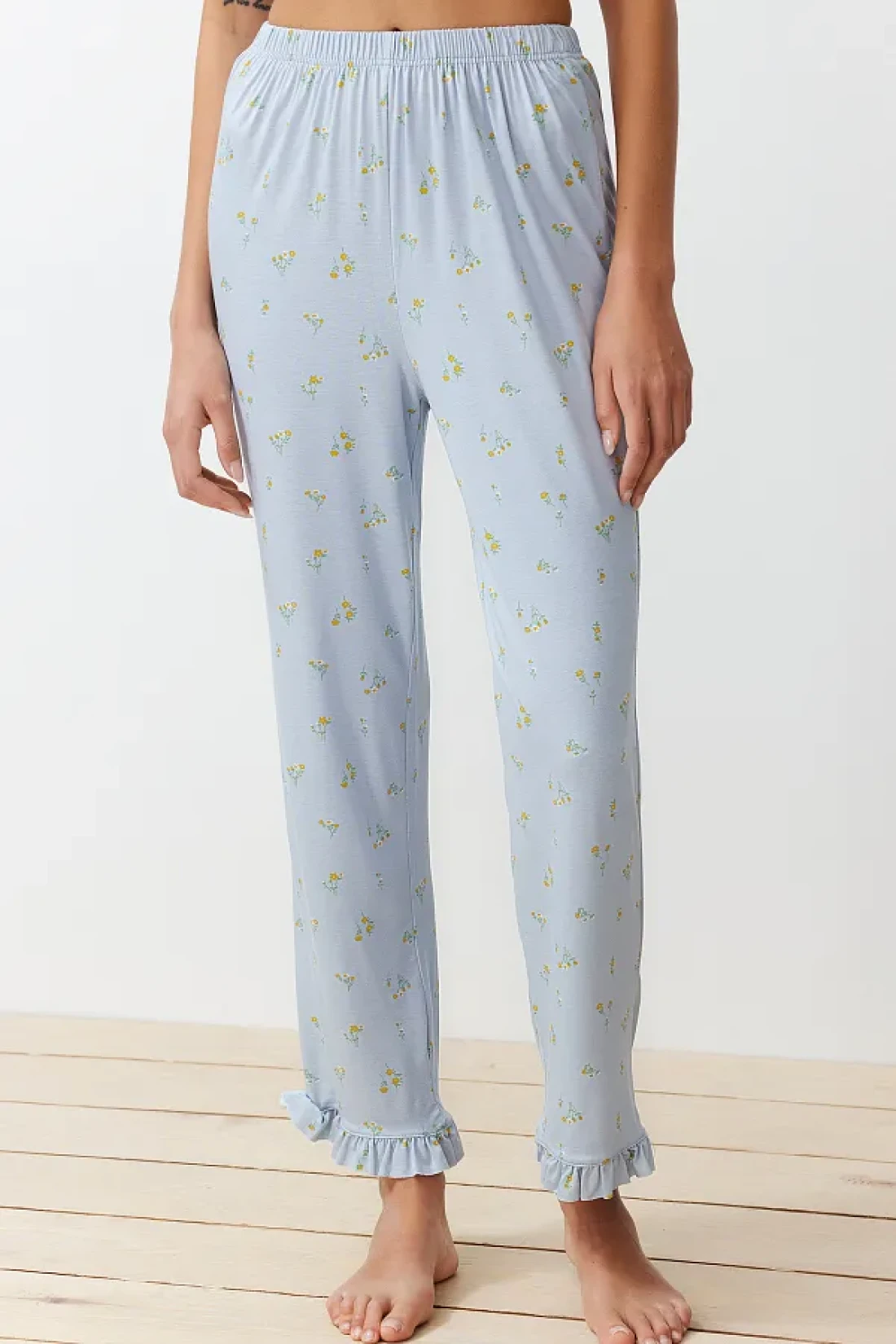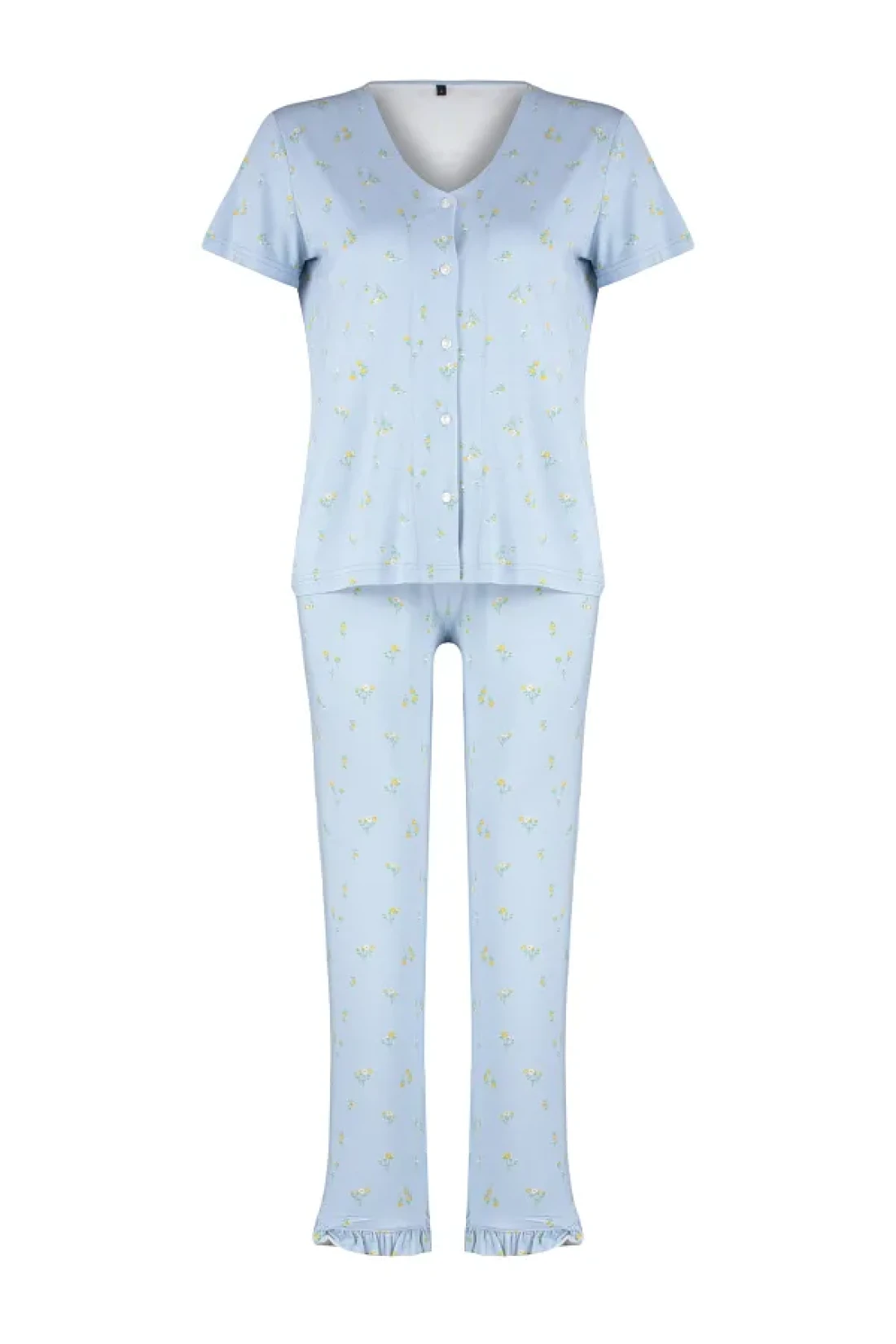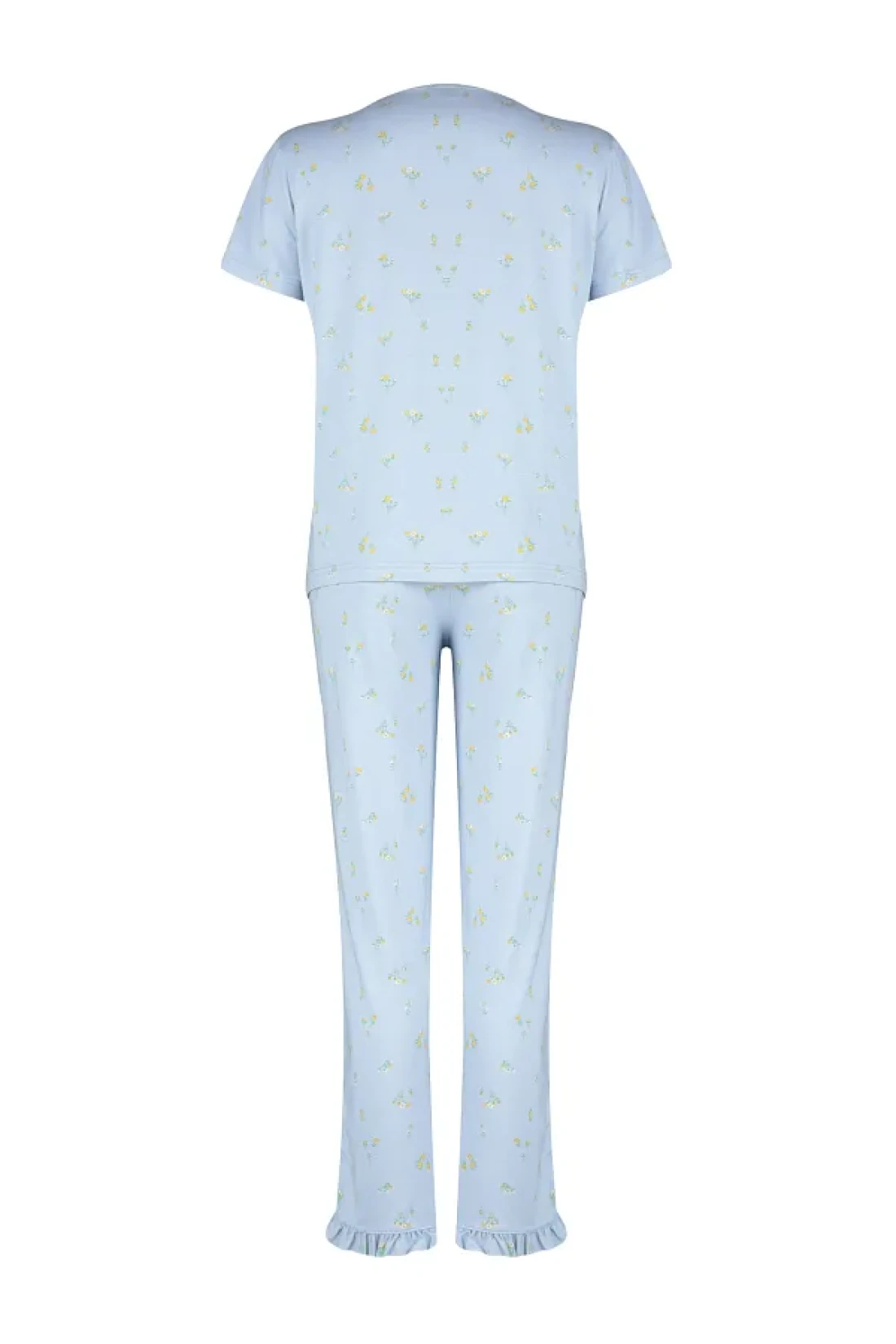 Collection Colorful Floral Pattern and Ruffle Knitted Pajamas Set - Blue THMSS24PT00232