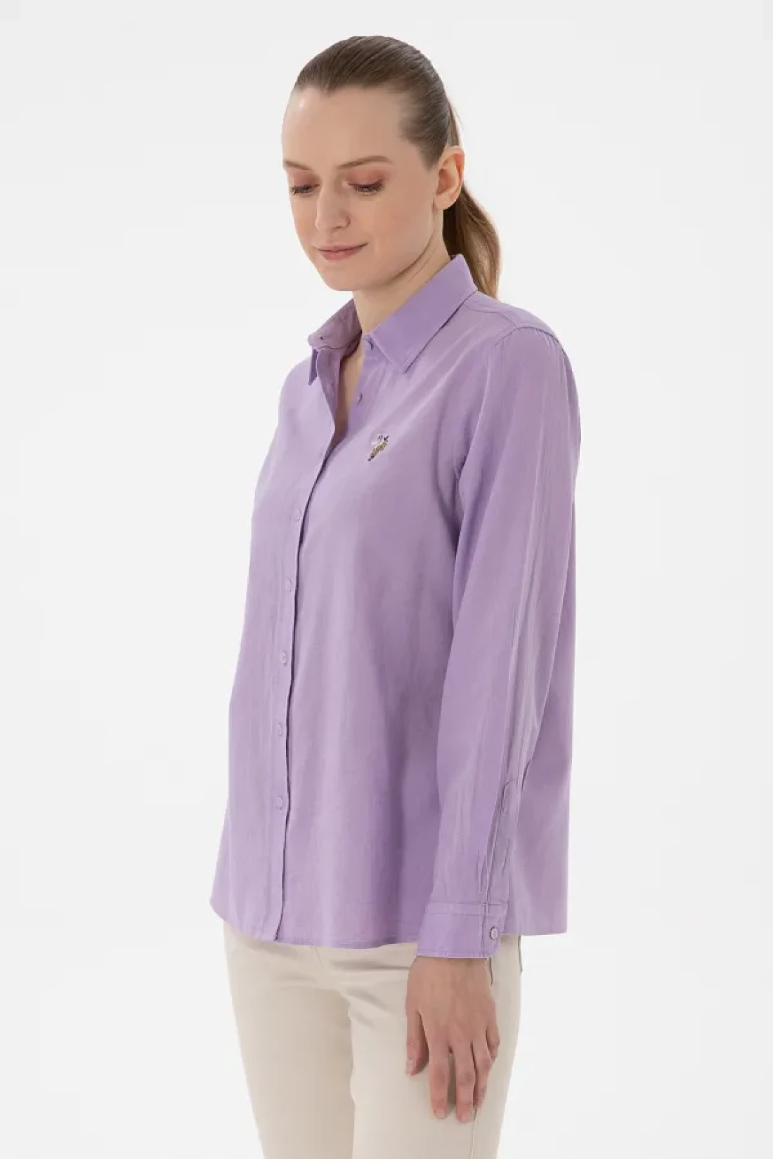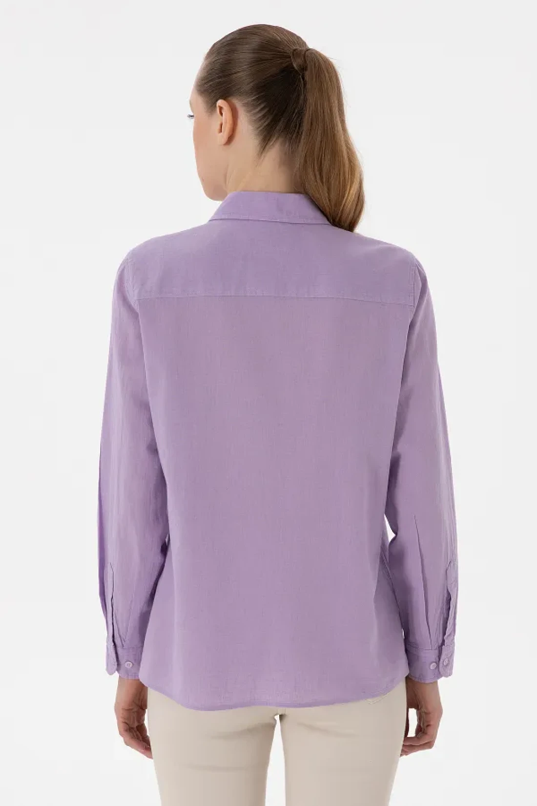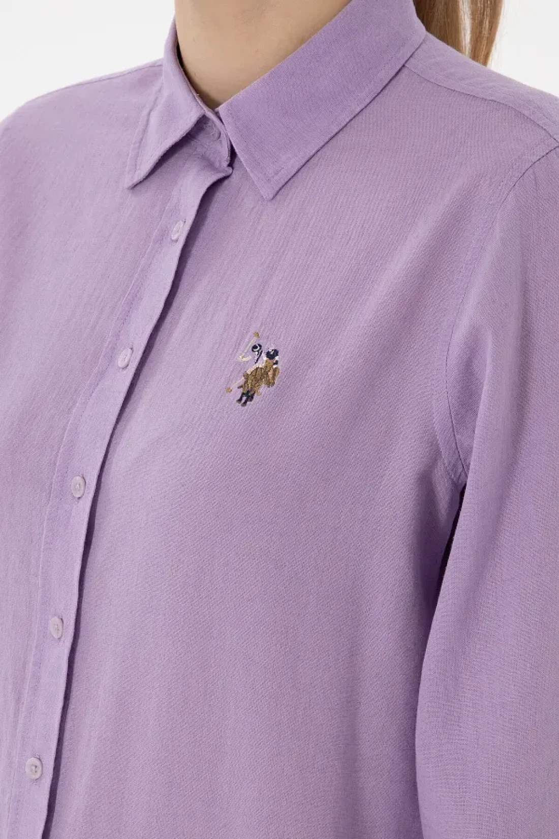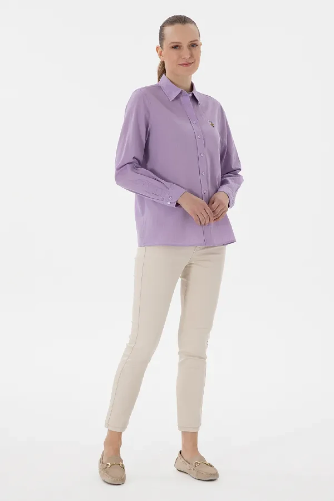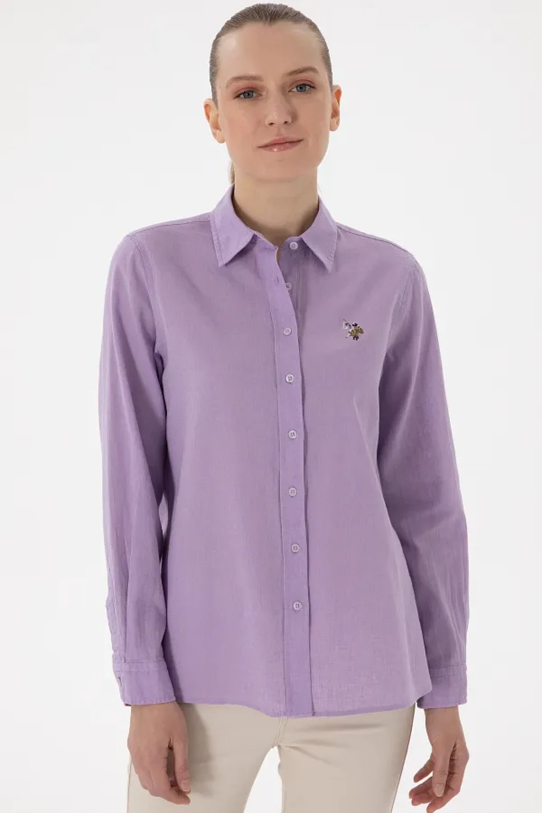 U.S. Polo Assn. Women's Lilac Linen Blended Long Sleeve Basic Shirt 50298098 -Vr034