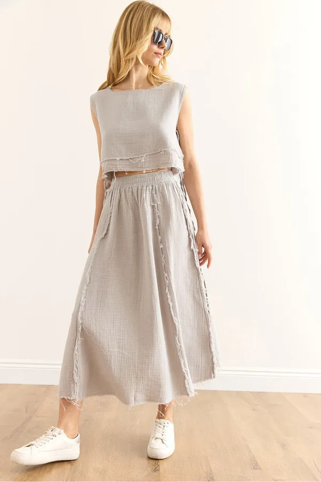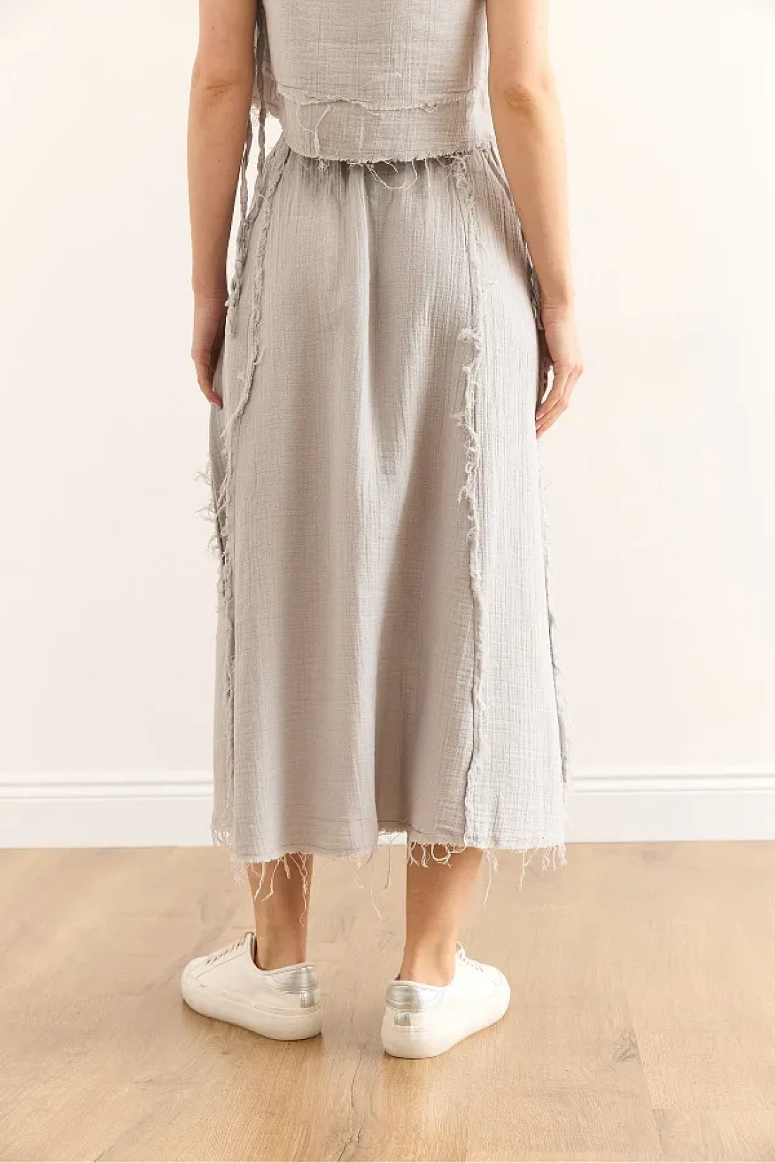 Olalook Women's Gray Elastic Waist Dirty Stitching Muslin Skirt Etk-19000310