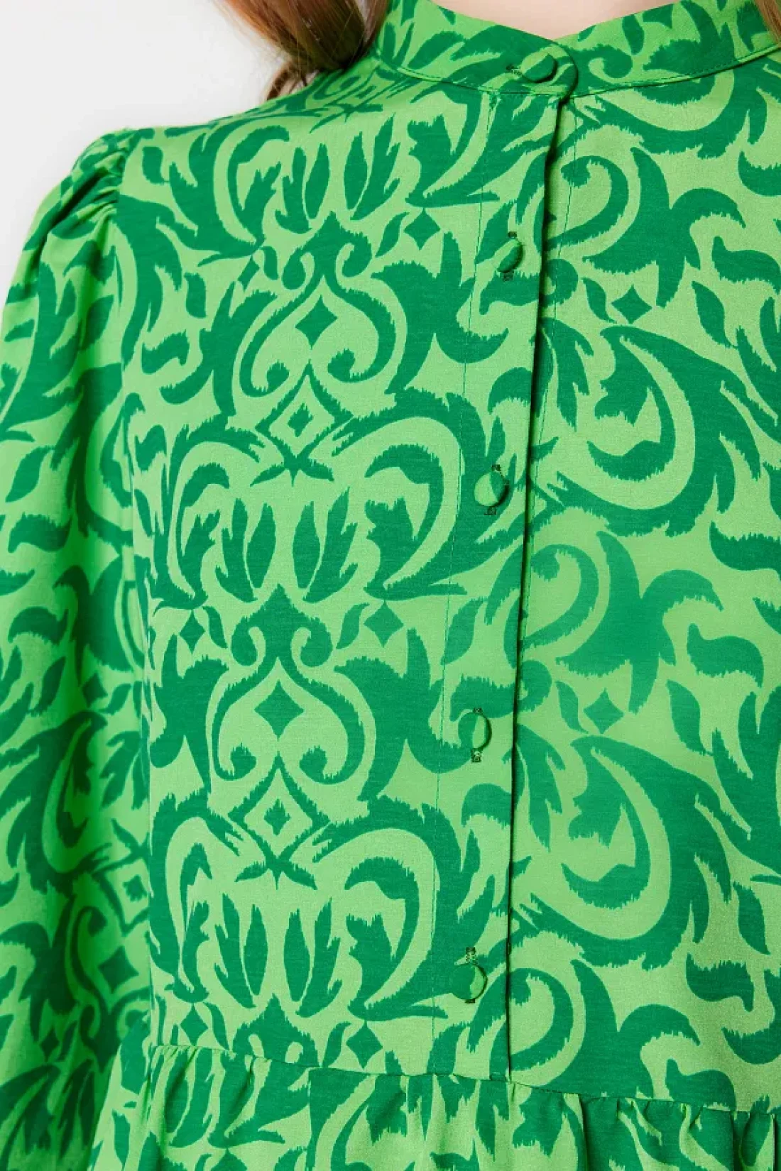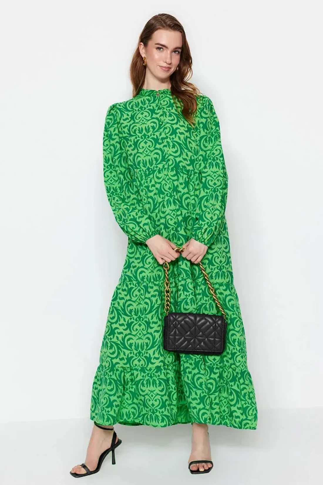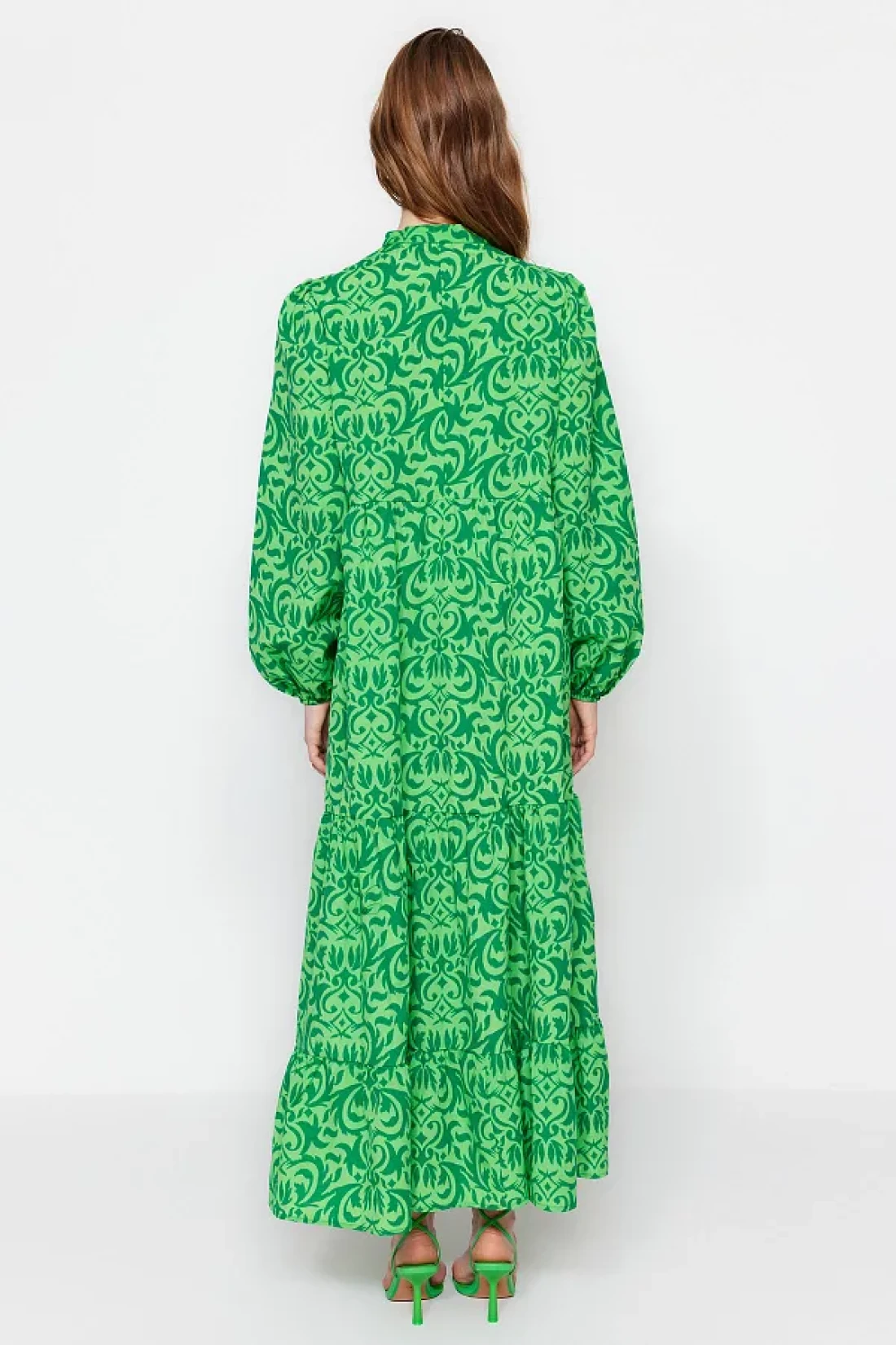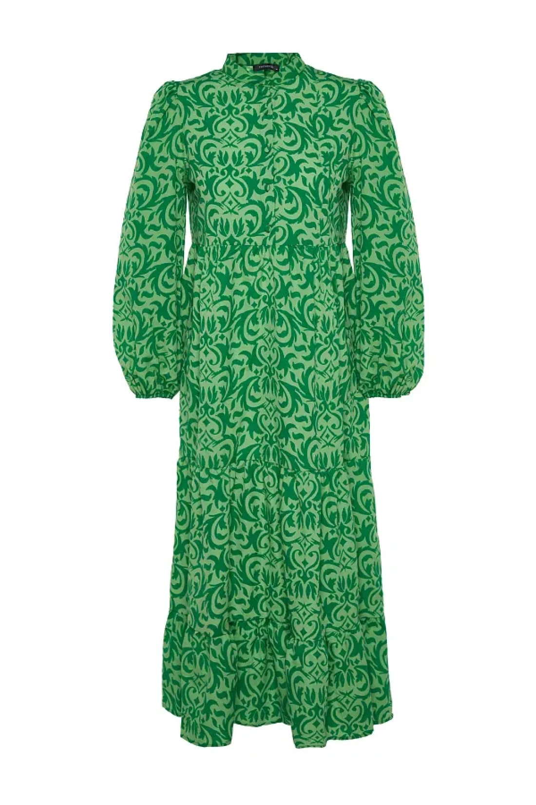 Modest Green Patterned Half Placket Wide Fit Cotton Woven Dress TCTSS23EB00222