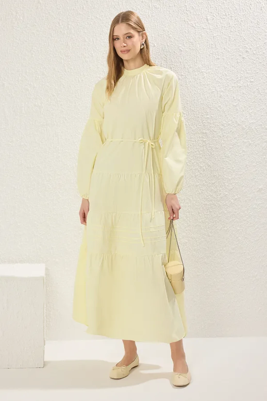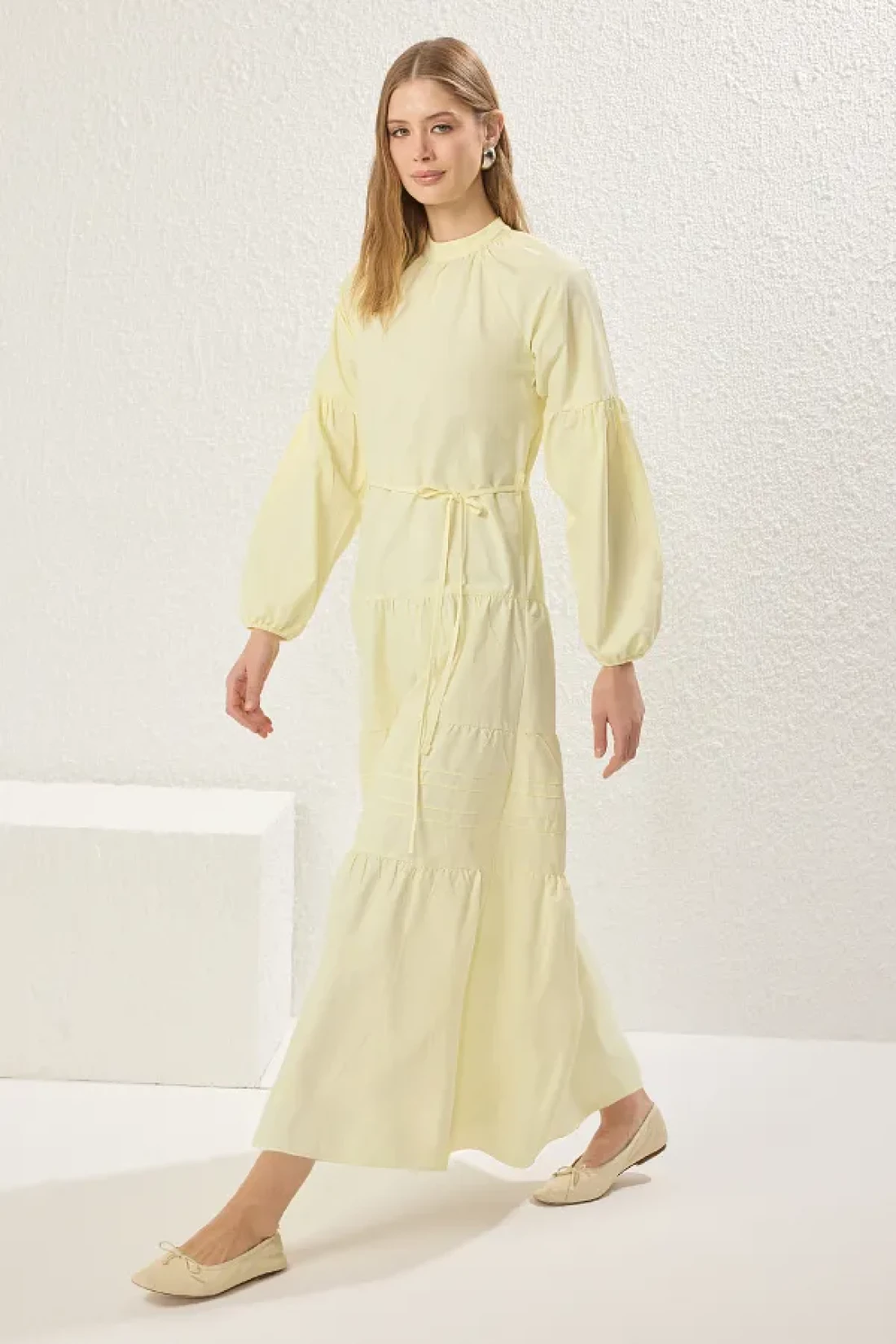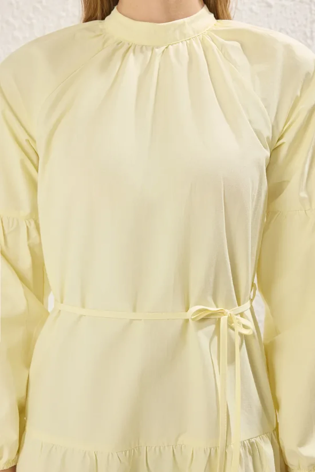 Modest Light Yellow Lace Detailed Cotton Woven Dress Tctss25Eb00081