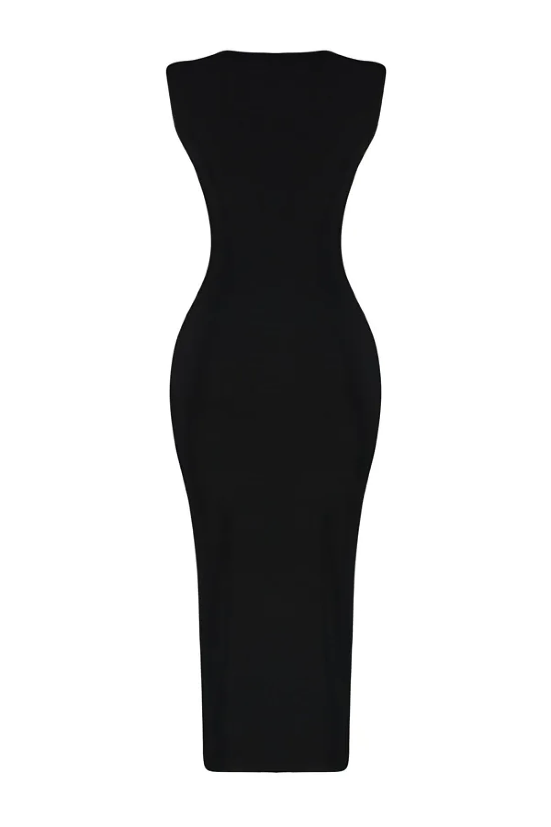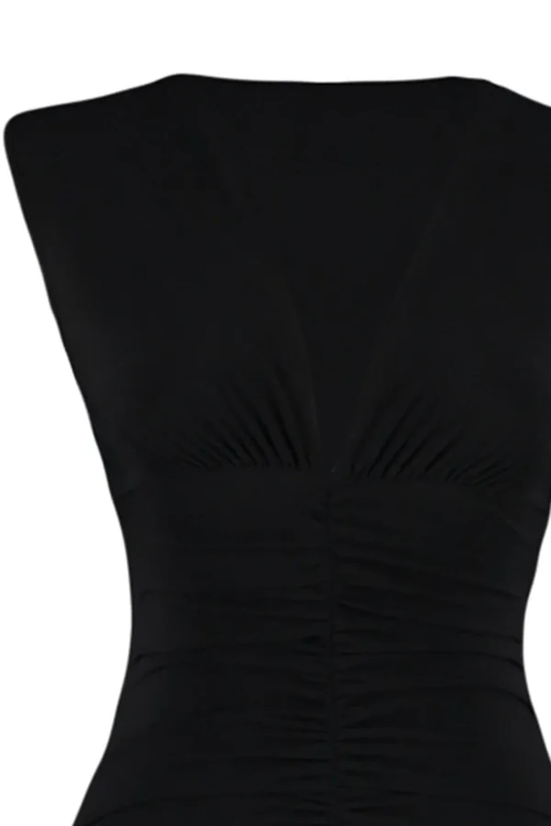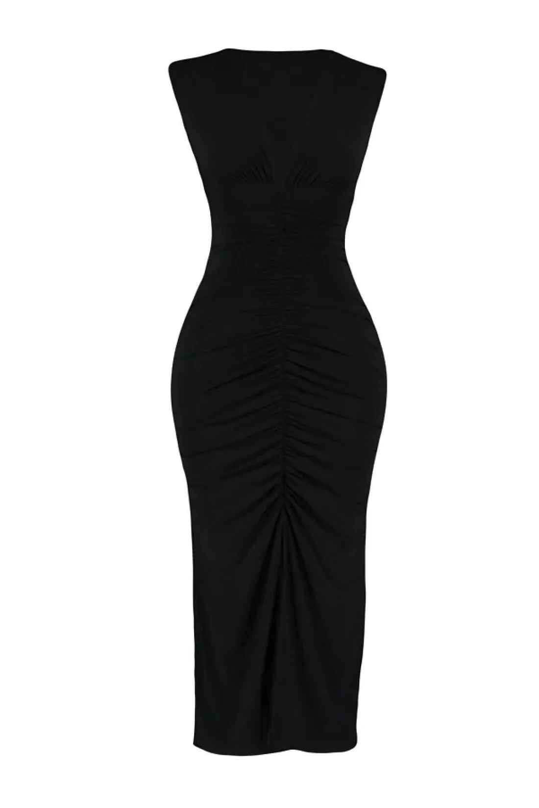 Collection Black Fitted/Body-Sitting Gather Detailed Midi Flexible Knitted Pencil Dress TWOSS23EL00751