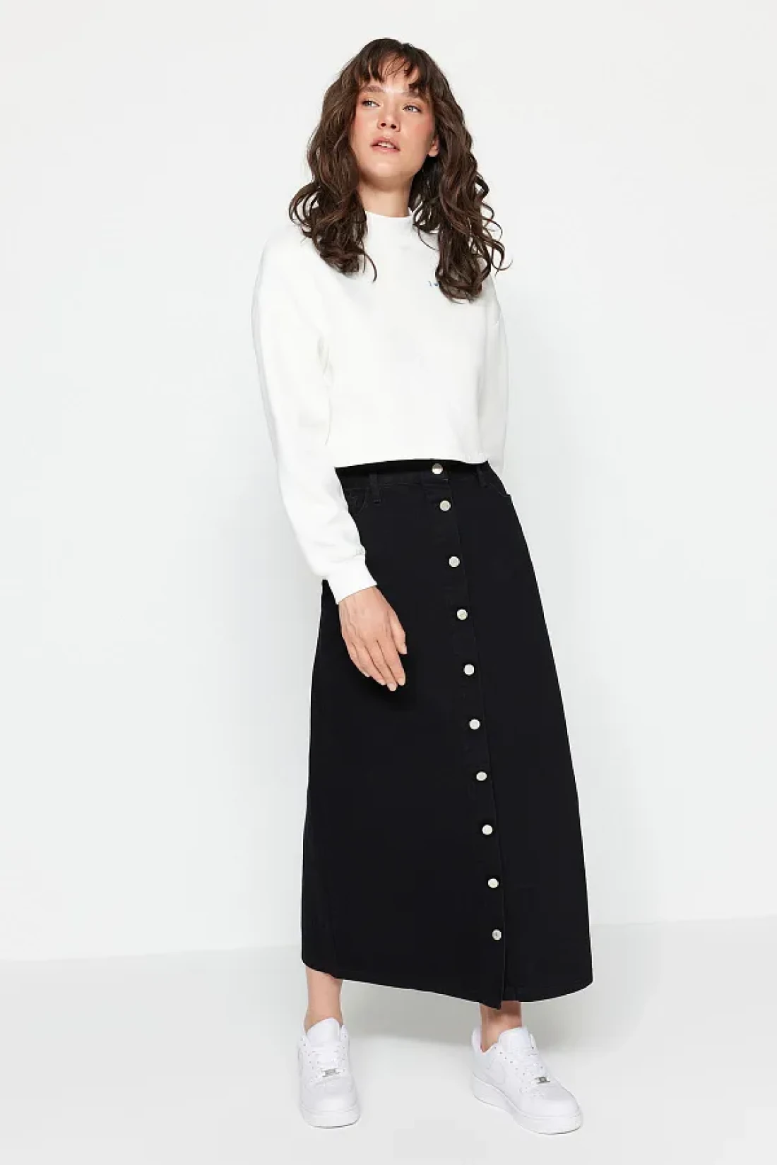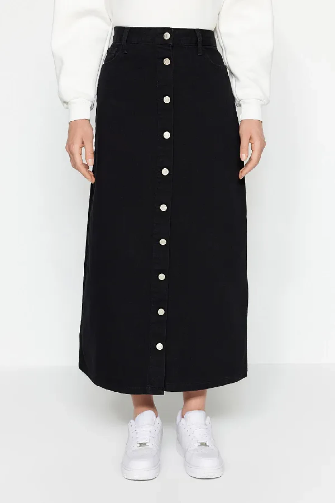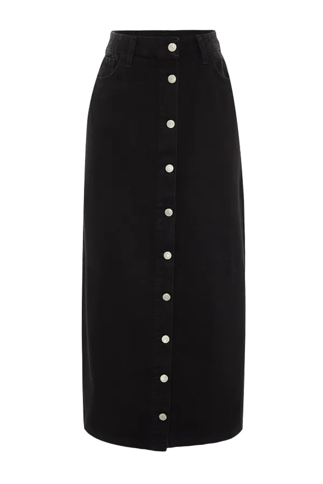 Collection Black Button Closure Denim Jeans Skirt TCTSS23EE00024