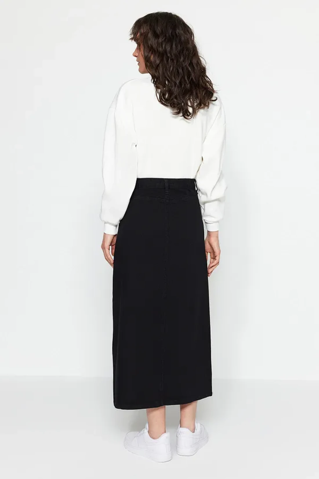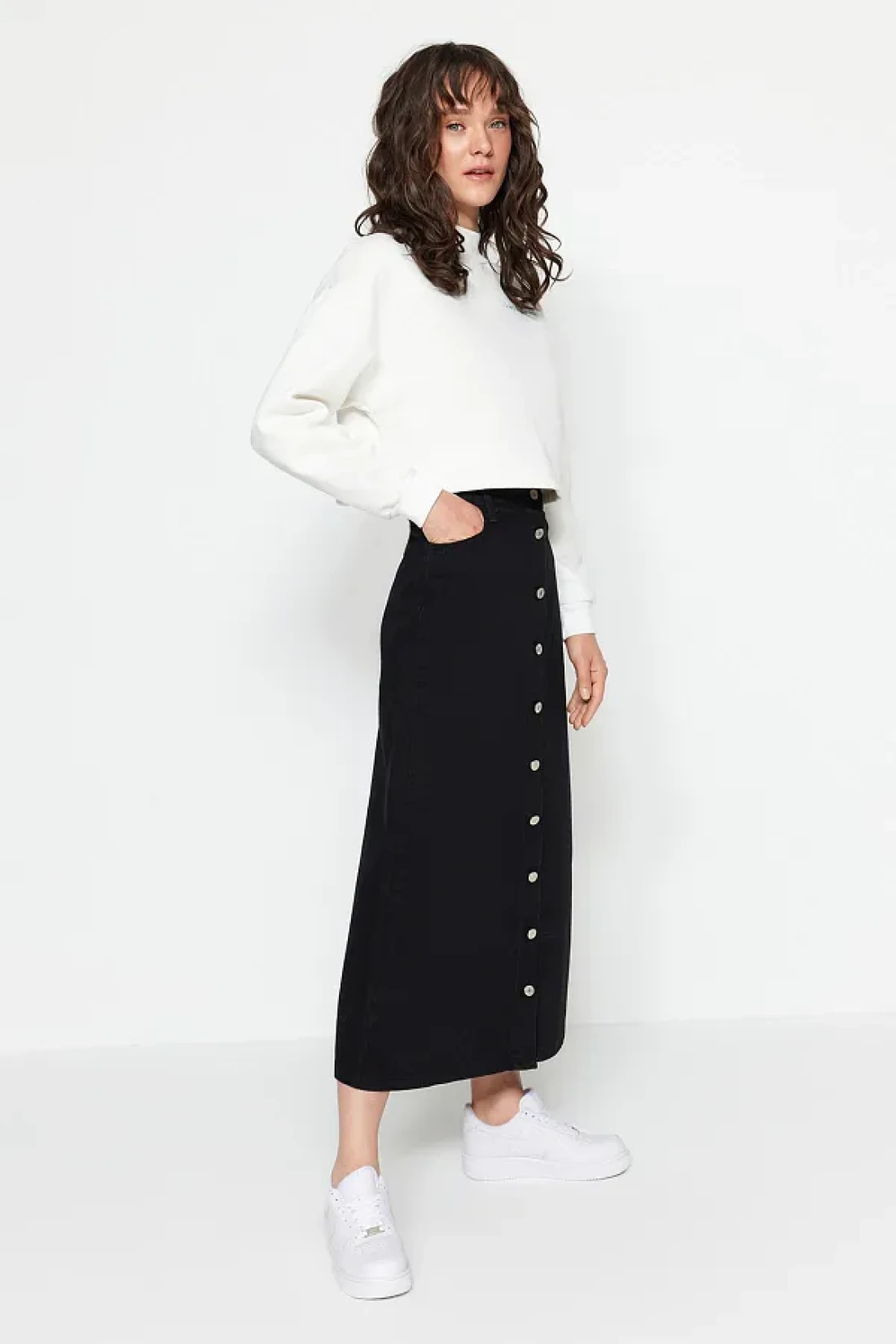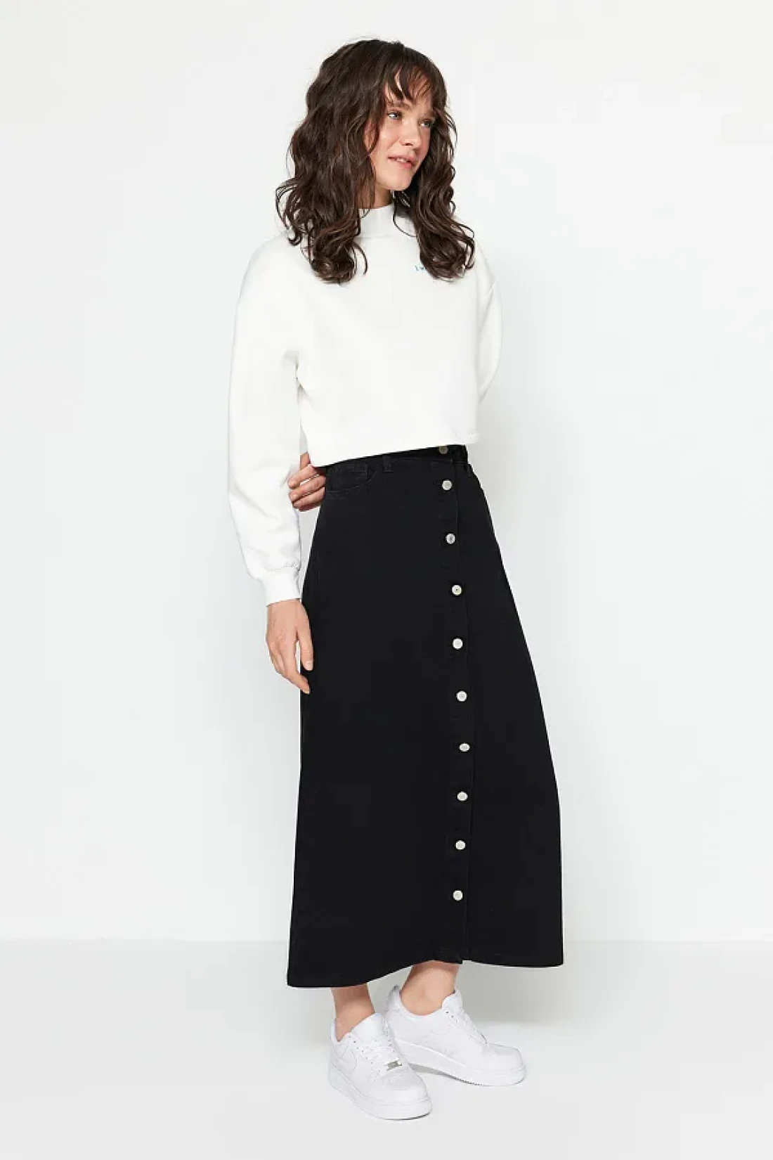 Collection Black Button Closure Denim Jeans Skirt TCTSS23EE00024