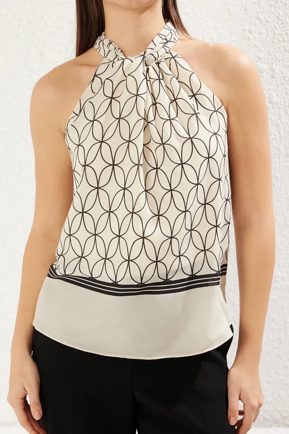 Collection Multicolor Satin Halter Neck Pattern Woven Blouse Twoss25Bz00163