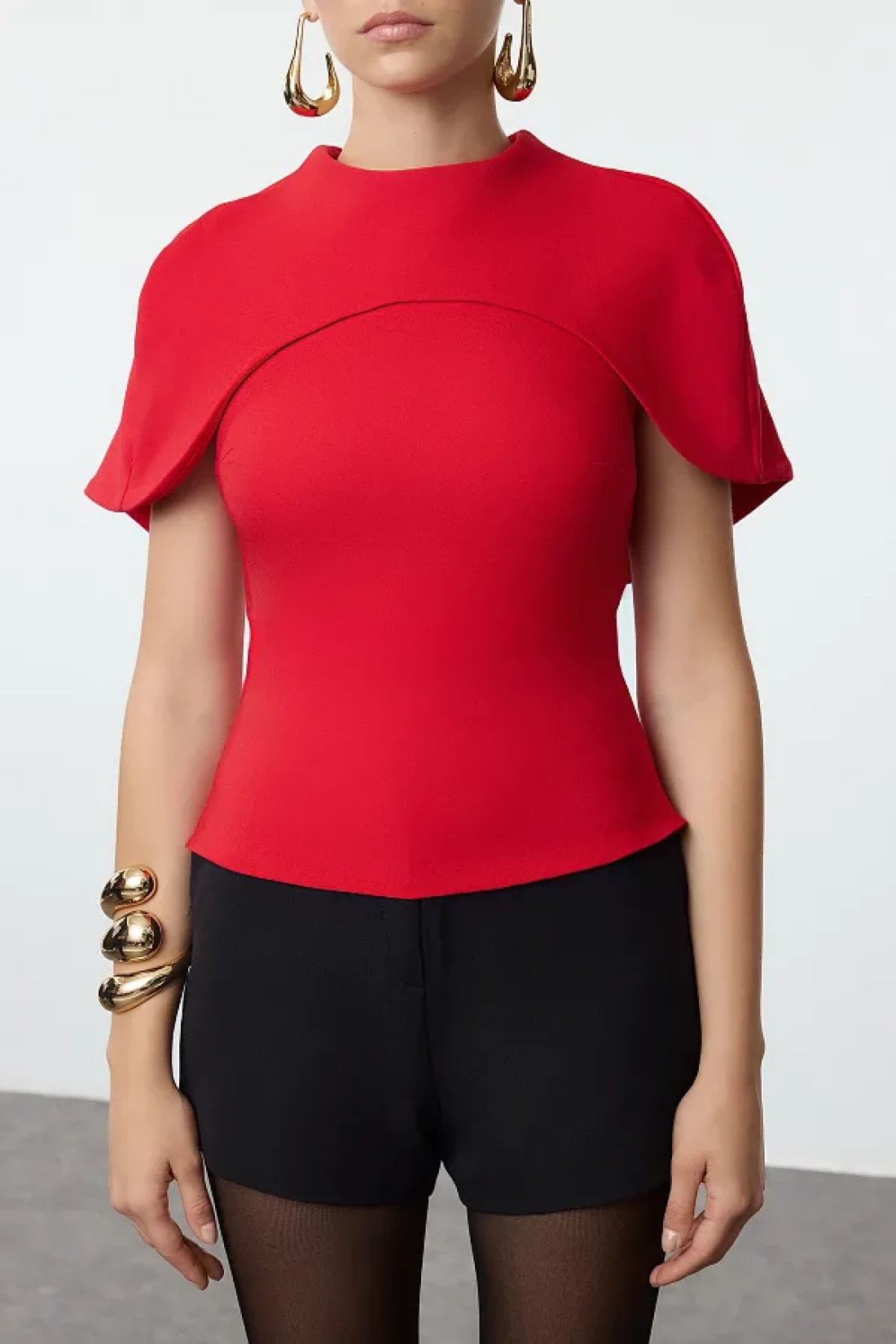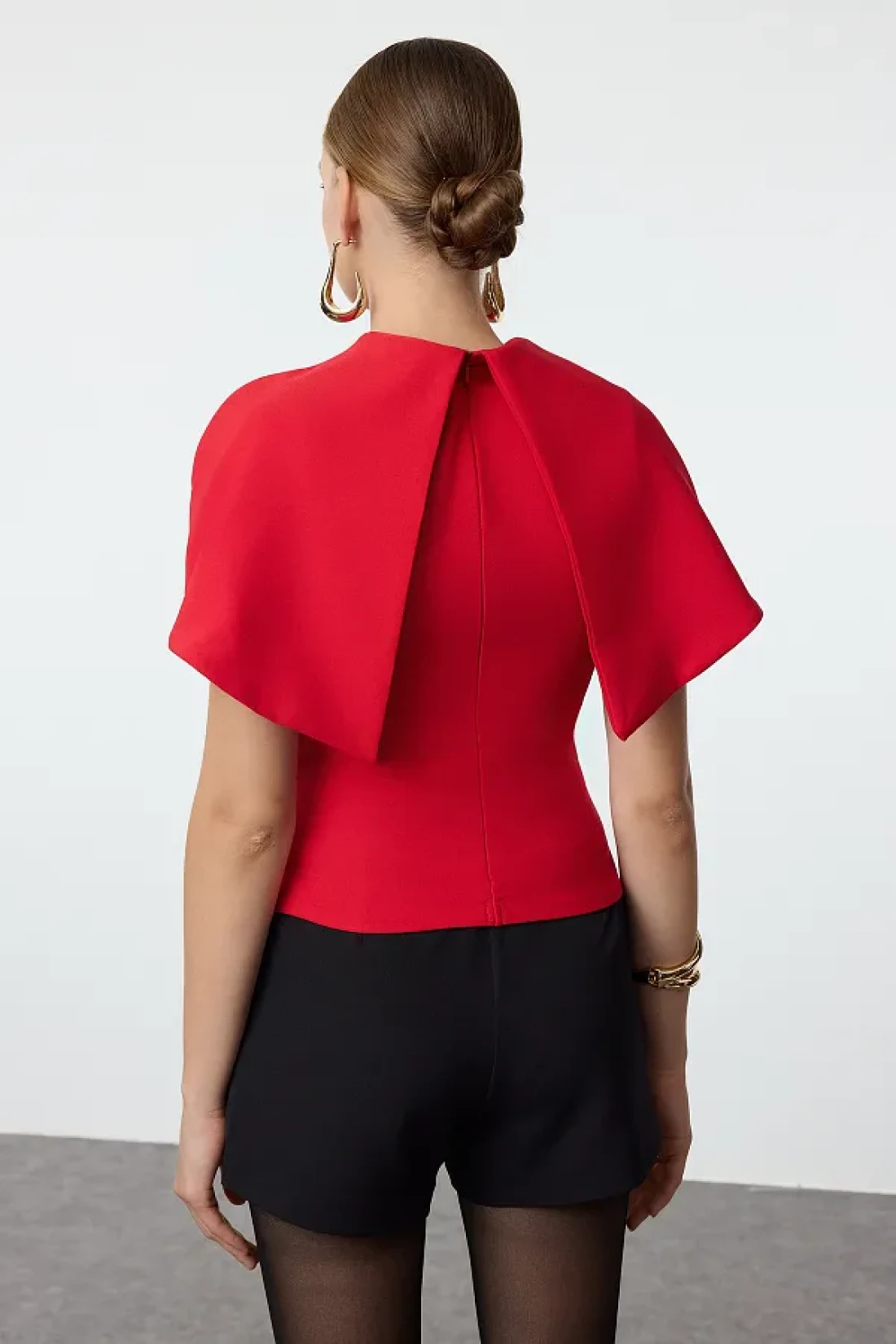 Collection Woven Red Blouse - Collar Detailed Tprss24Bz00053