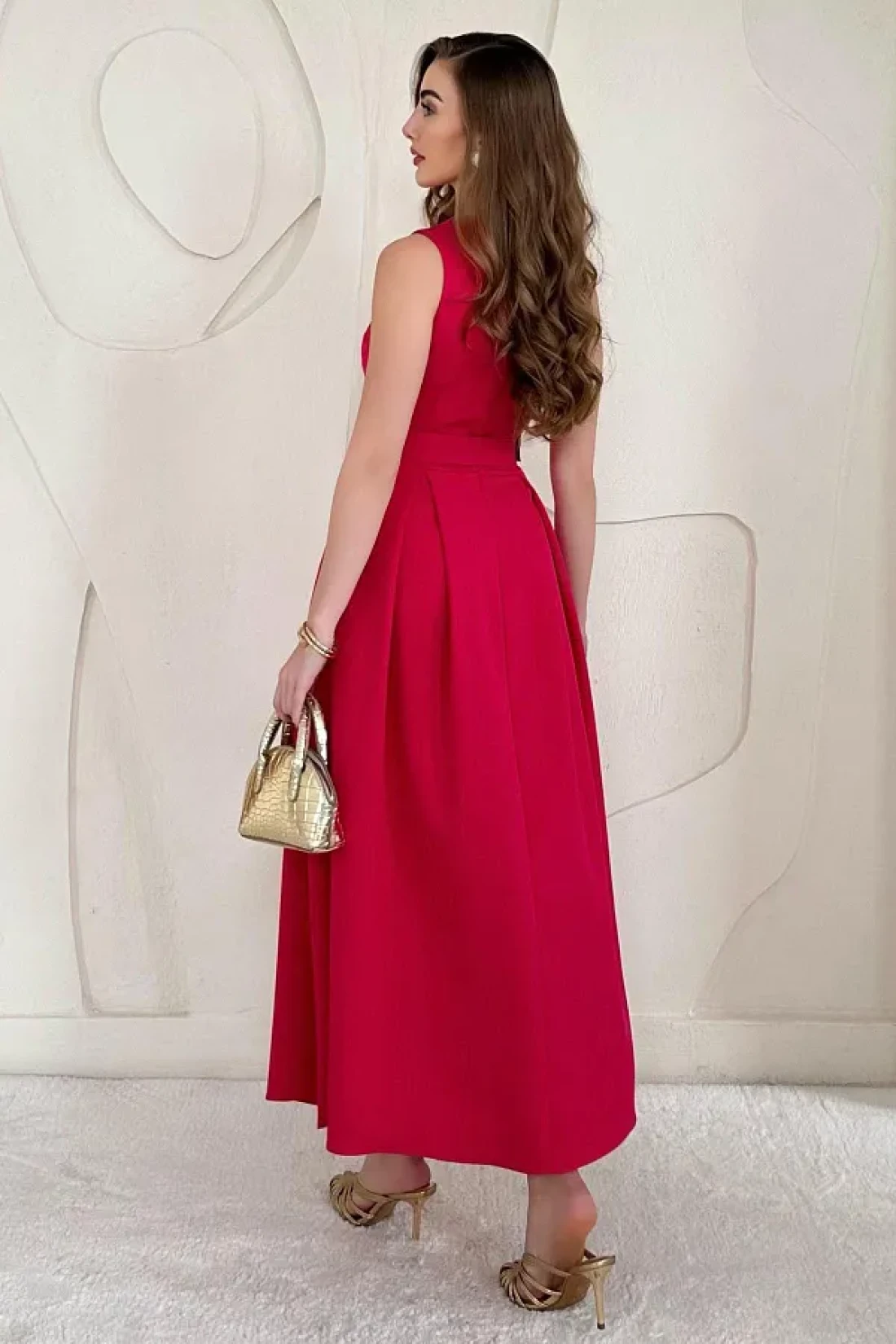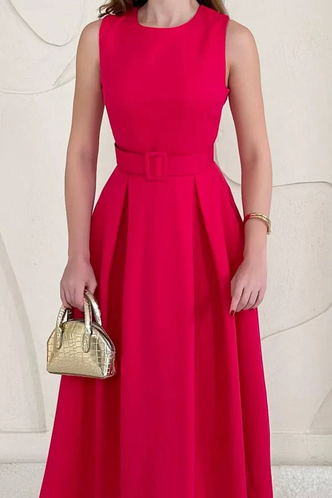 Elbee Fashion Woman Fuchsia Halter Neck Flared Dress