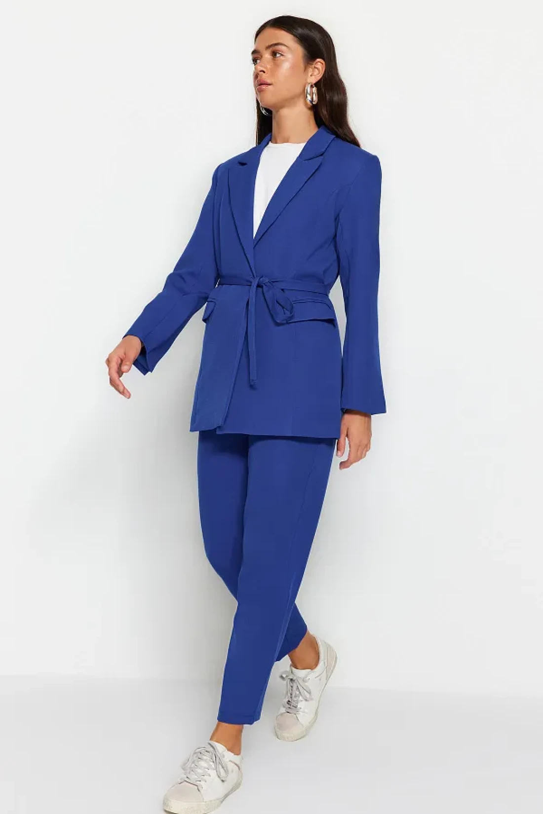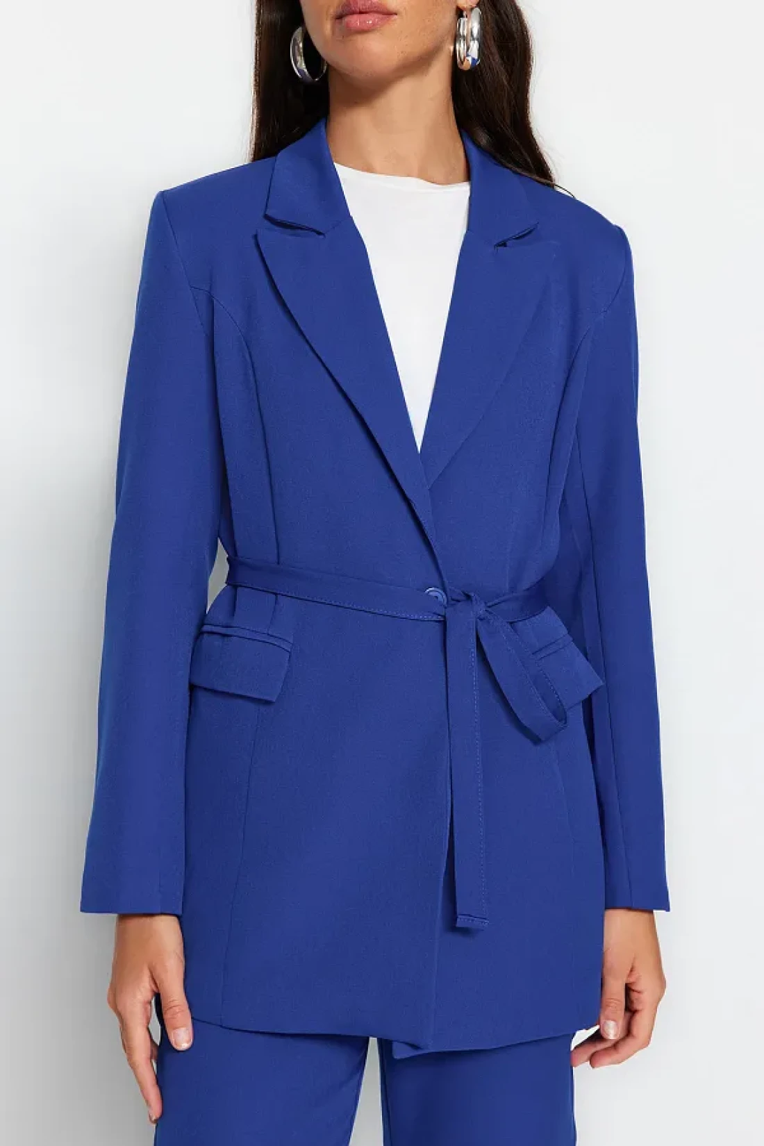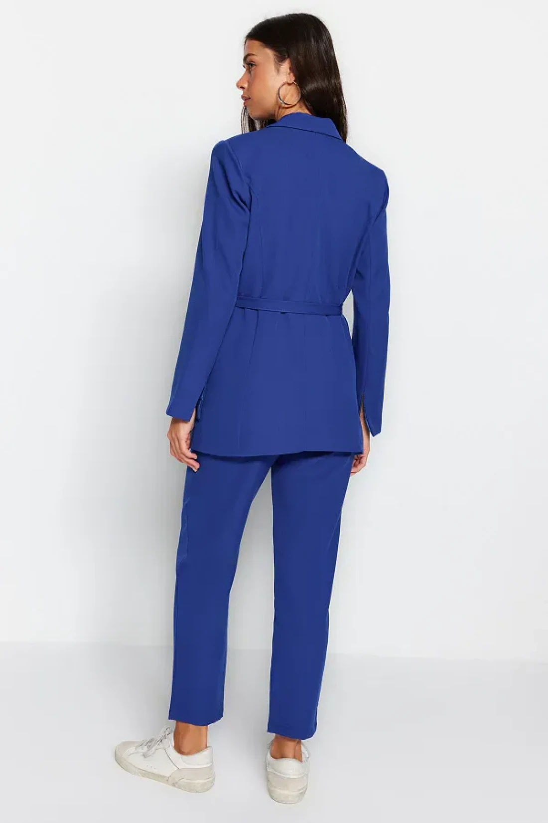 Modest Blue Lacing Detailed Lined Crepe Jacket-Pants Woven Bottom-Top Suit TCTSS23US00044