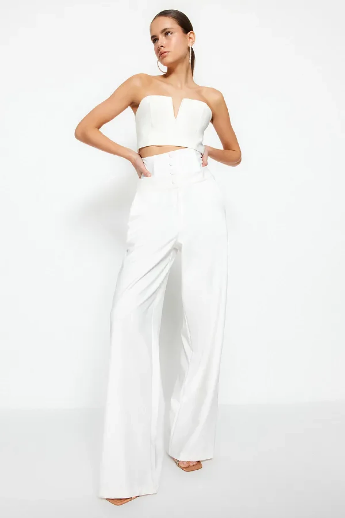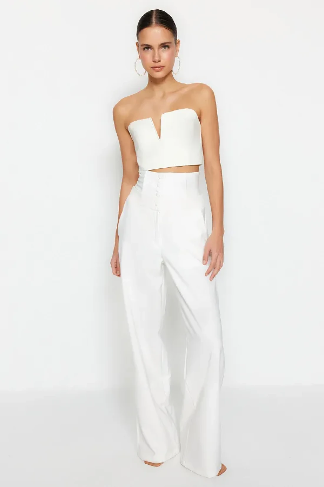Collection Woven Ecru Corset Trousers - TPRSS23PL00033