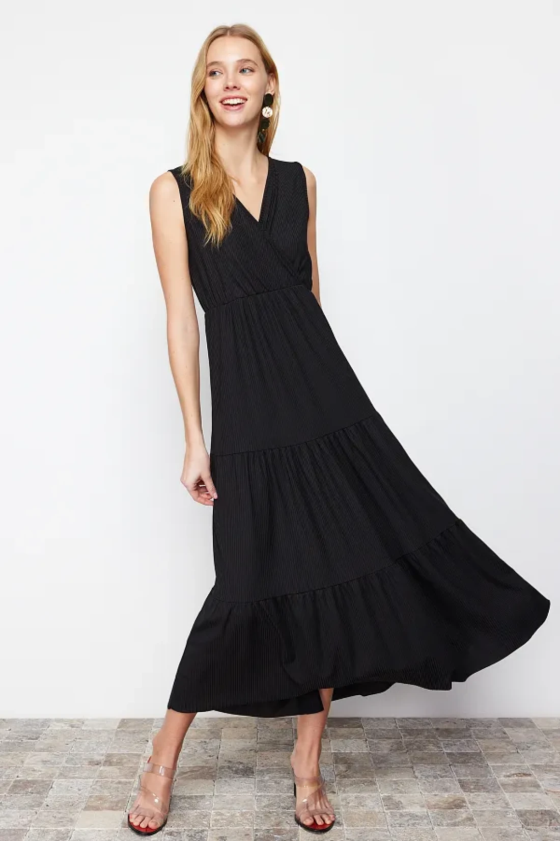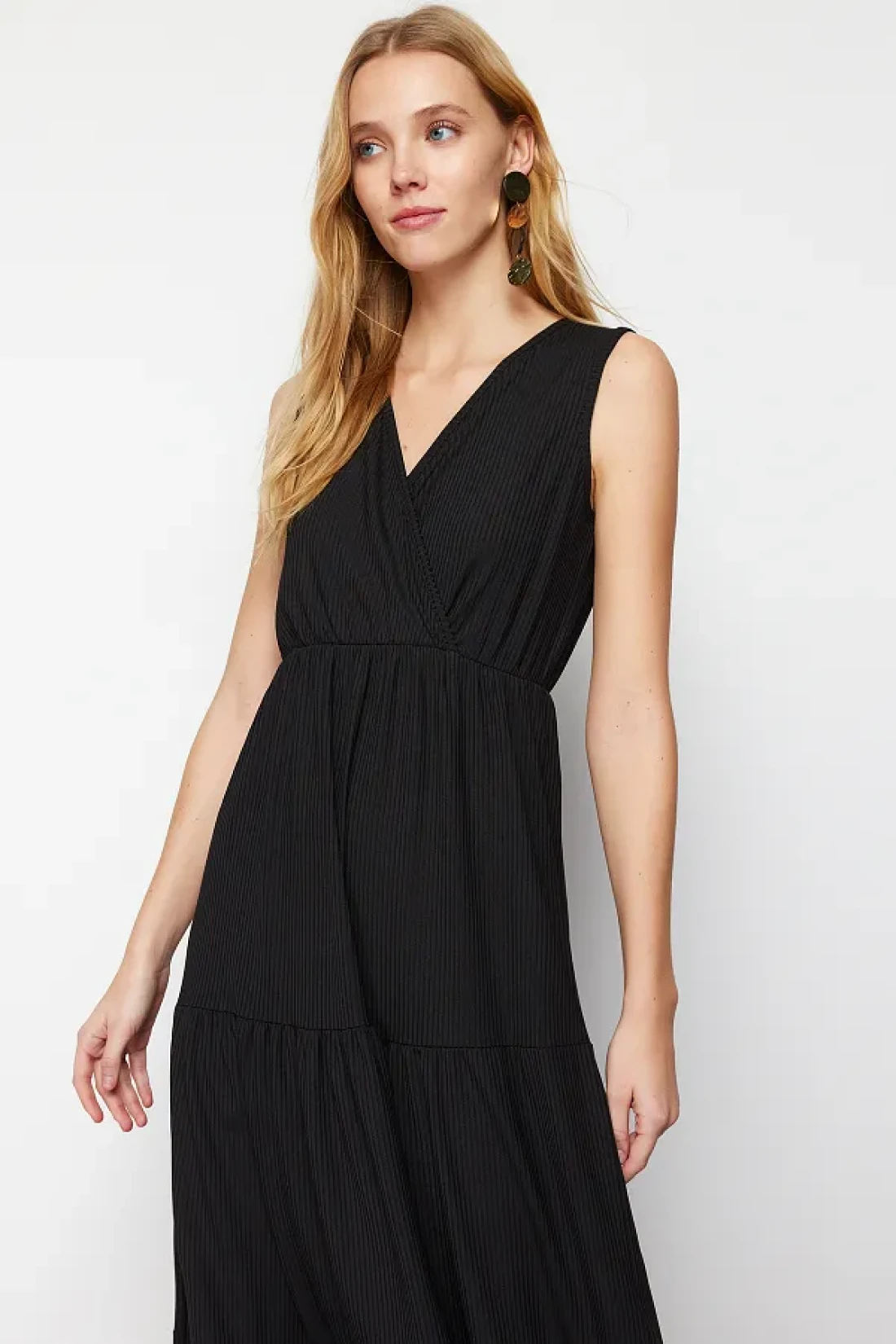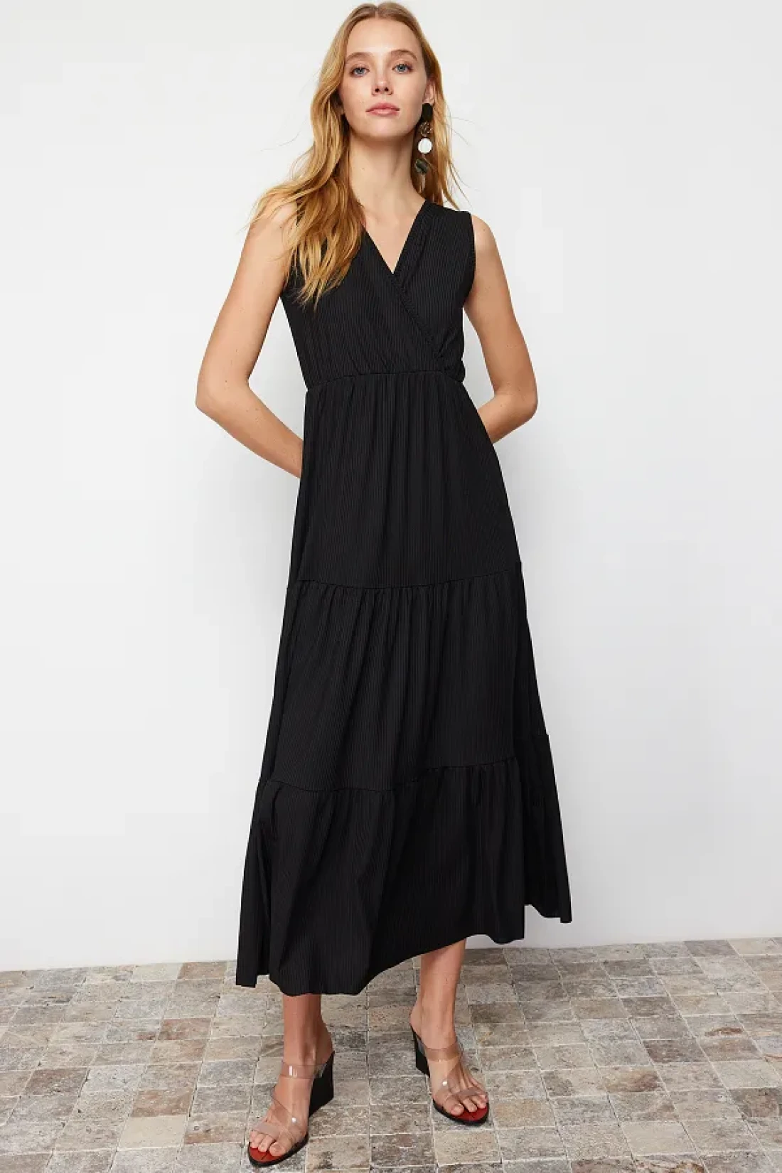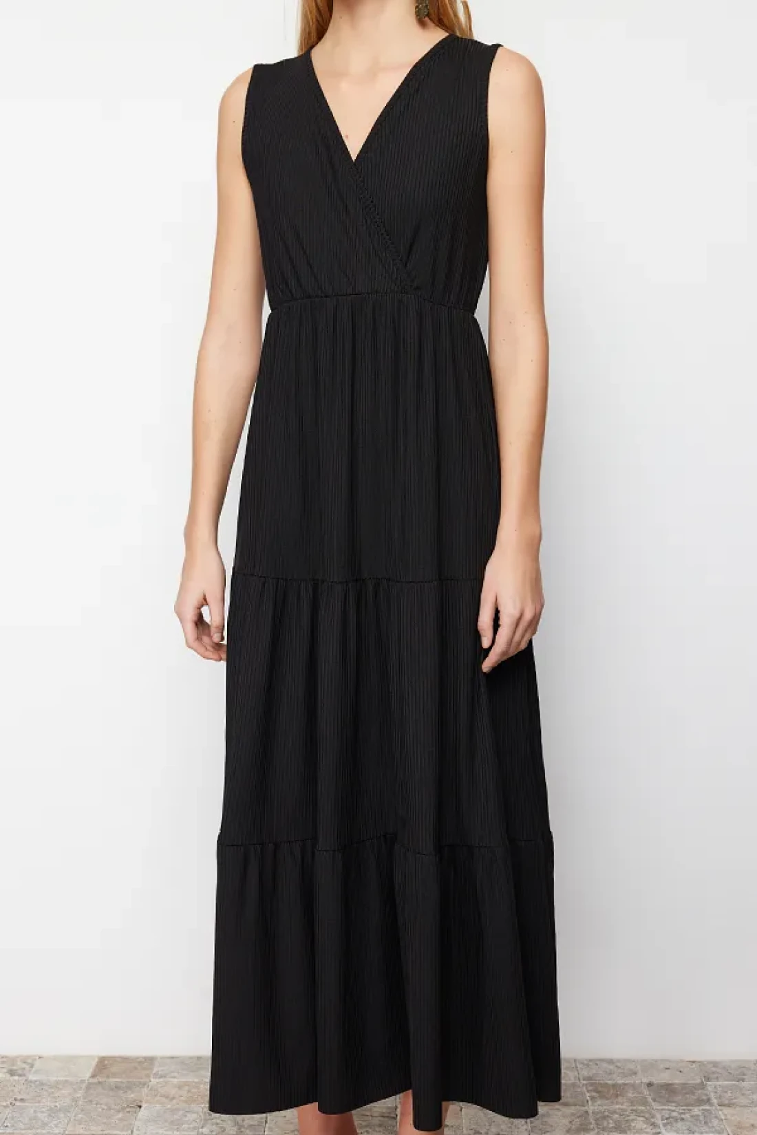 Collection Black V-Neck Sleeveless A-Line Maxi Knitted Dress TWOSS22EL1588