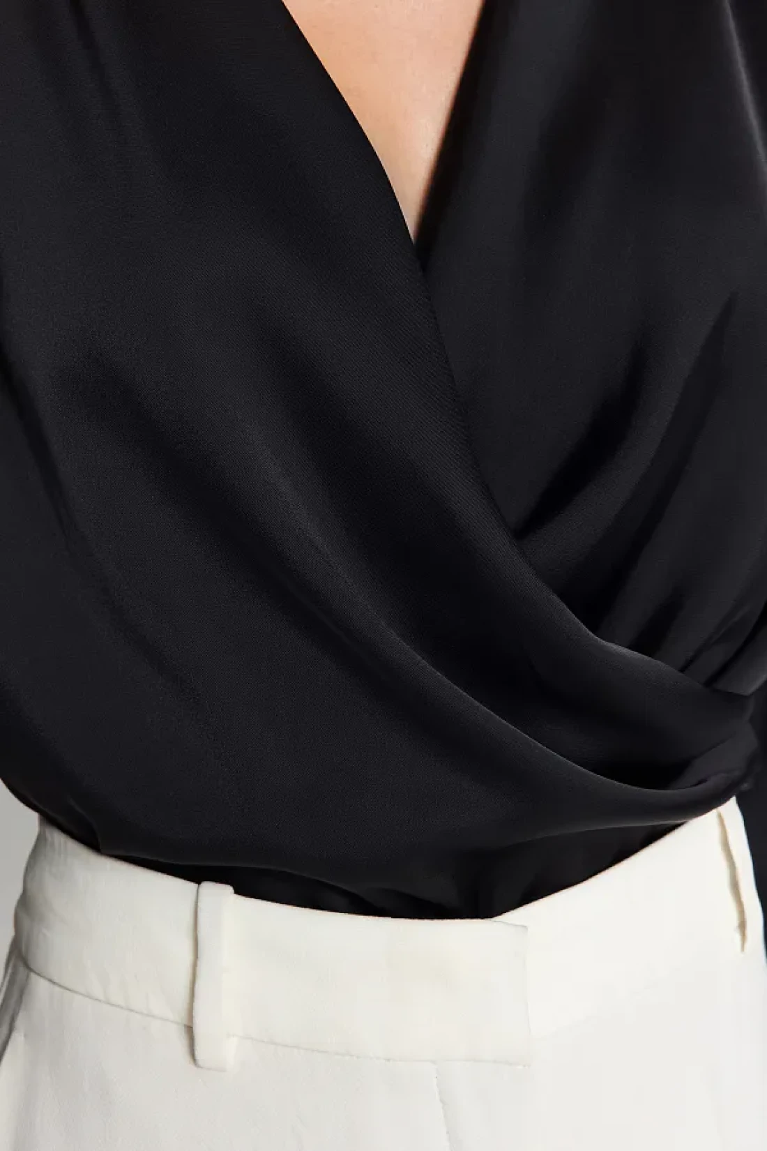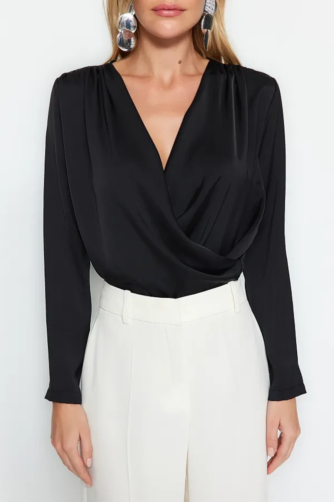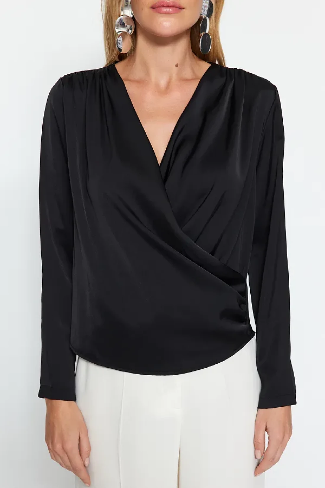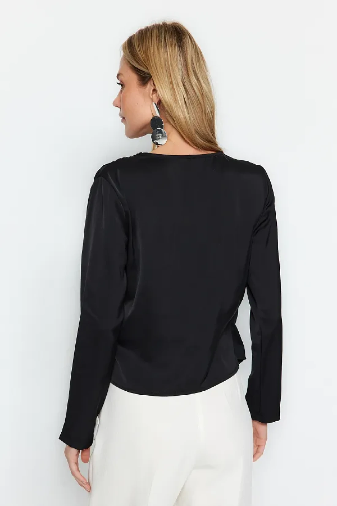 Collection Black Double Breasted Satin Woven Blouse TWOAW24BZ00423