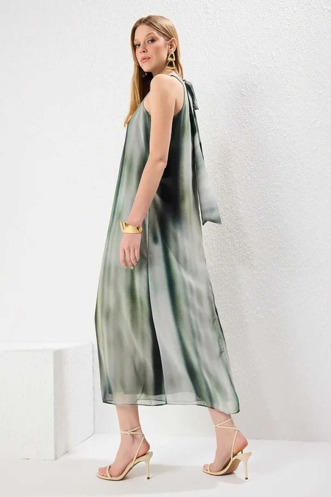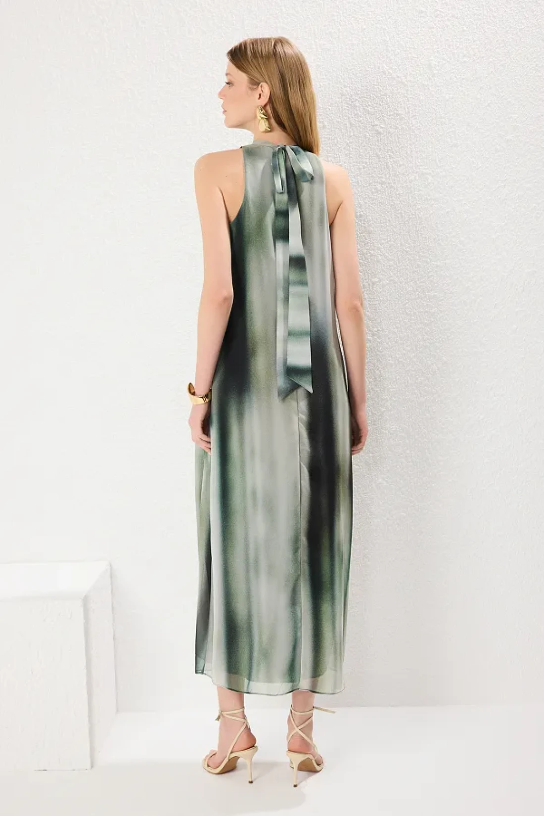Collection Green Abstract Pattern Straight Cut Binding Detail Maxi Woven Dress Twoss25El00408