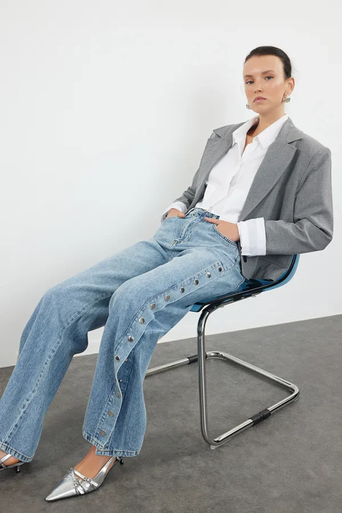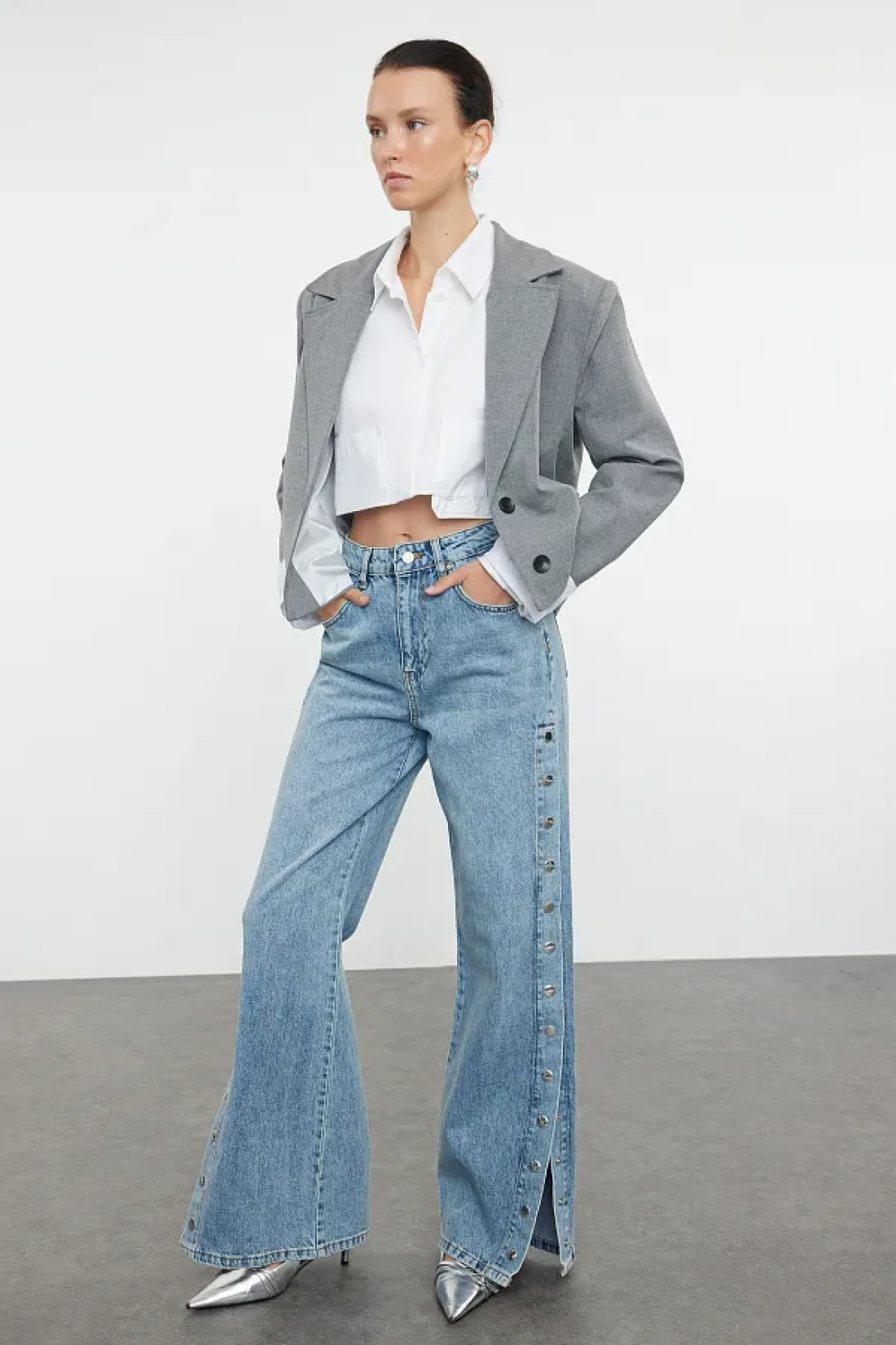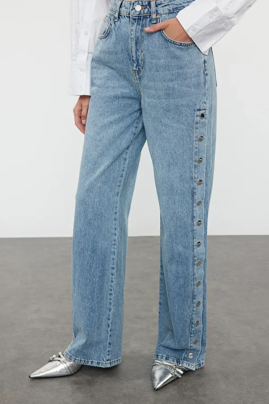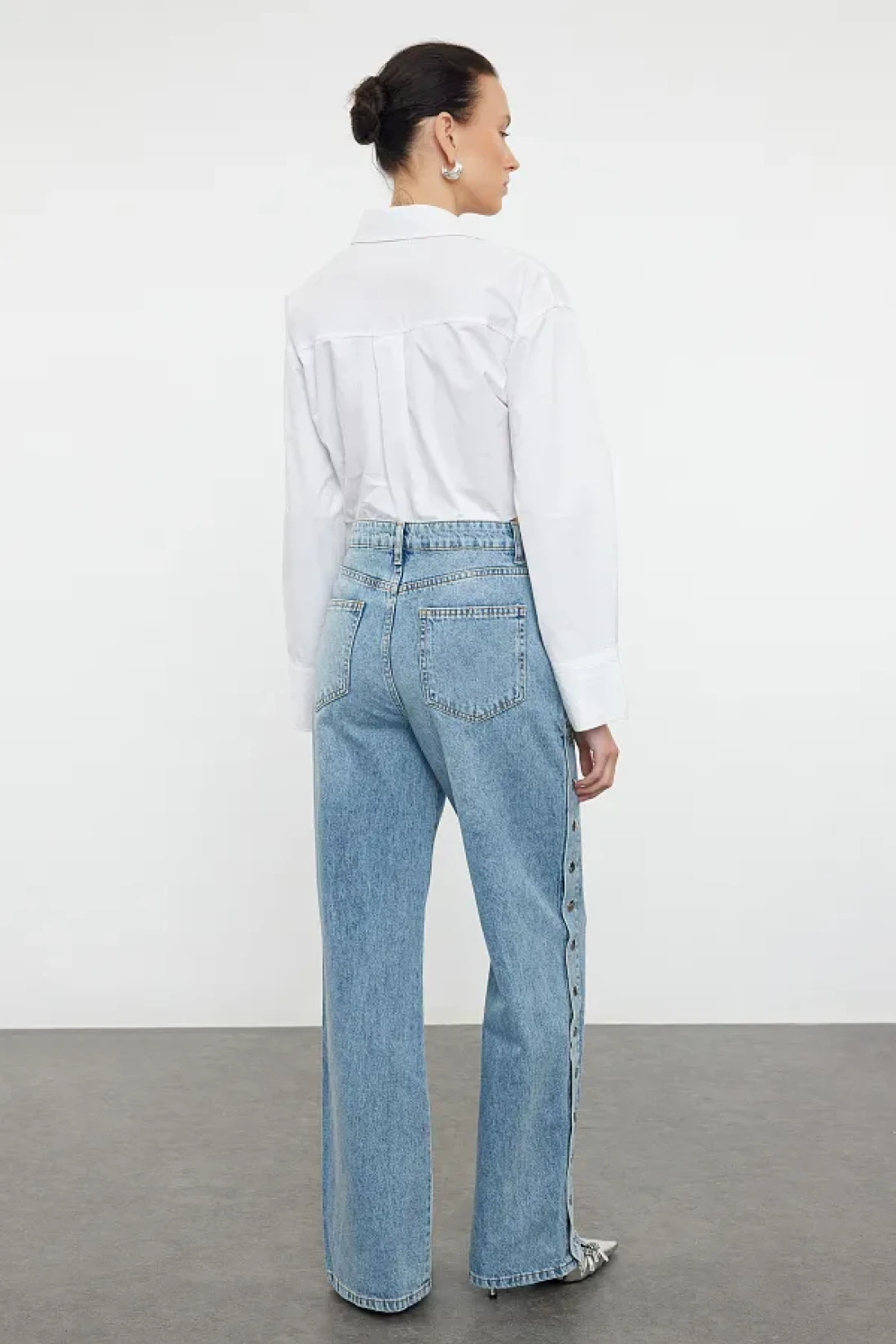 Collection Blue - More Sustainable Wide Leg Jeans with High Waist and Accessory Detail Twoaw25Je00028