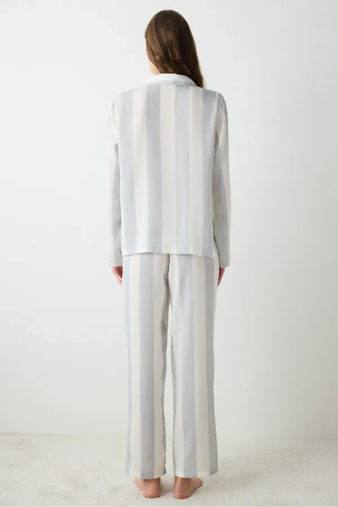 Aria satin gray ls Shirt pants set is an elegant and stylish piece of christmas and hotel collections.