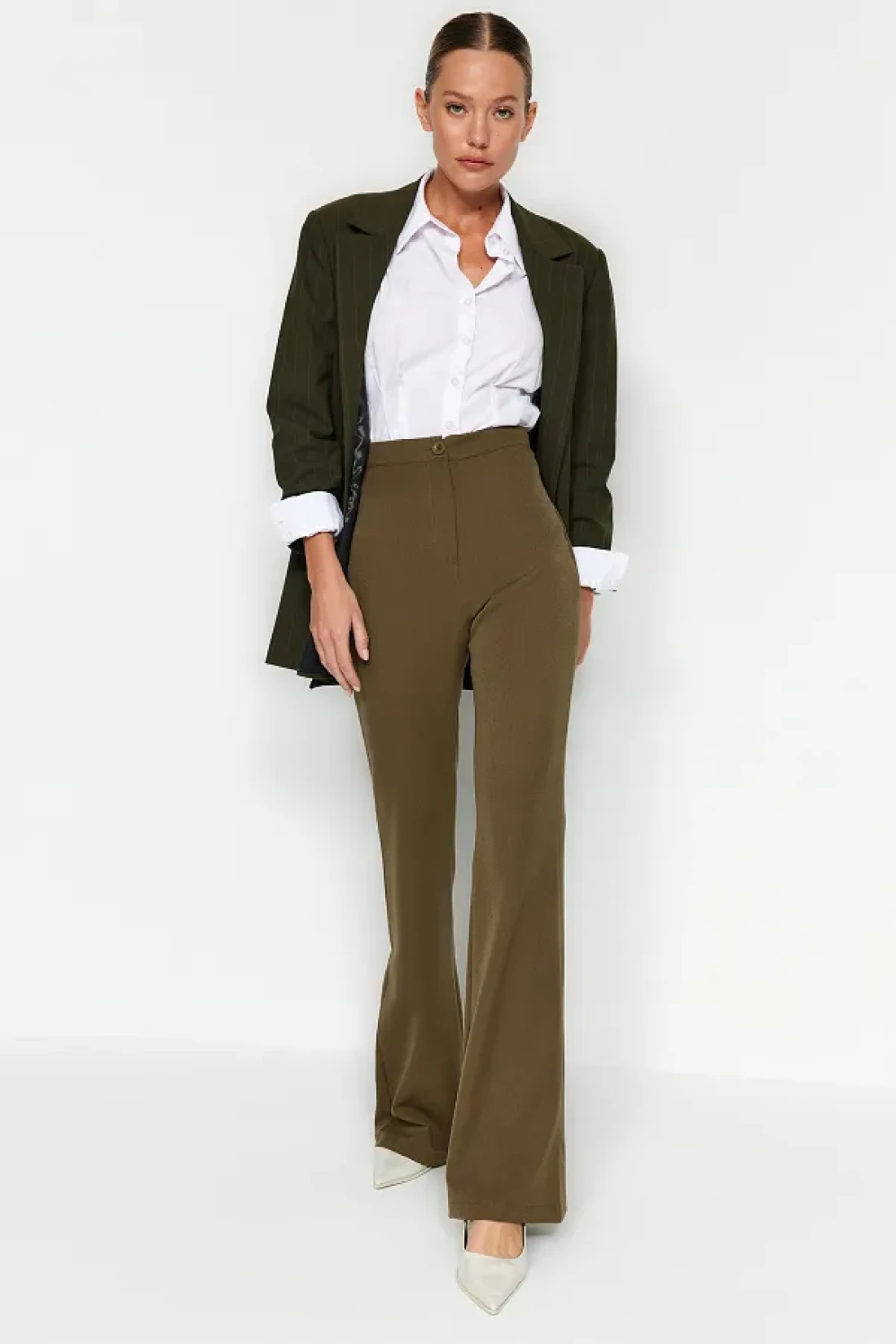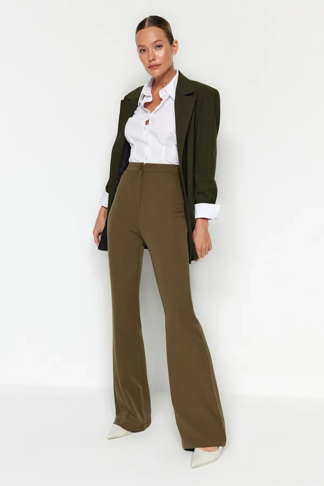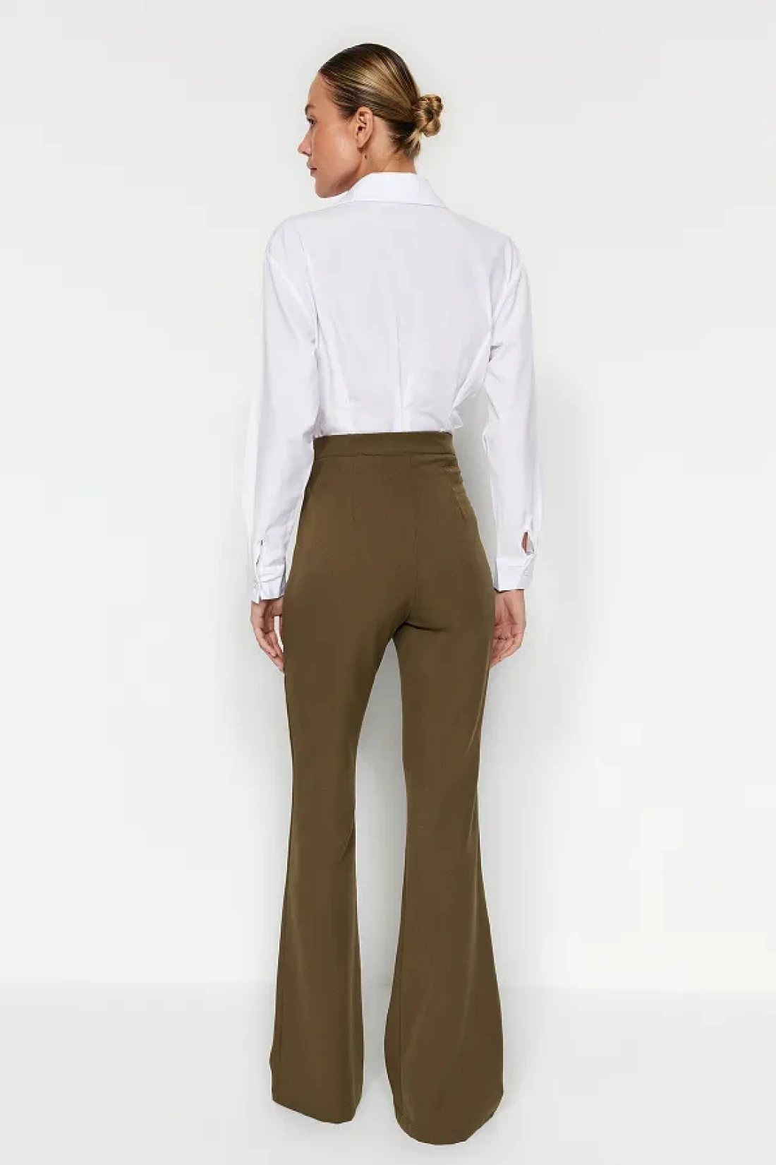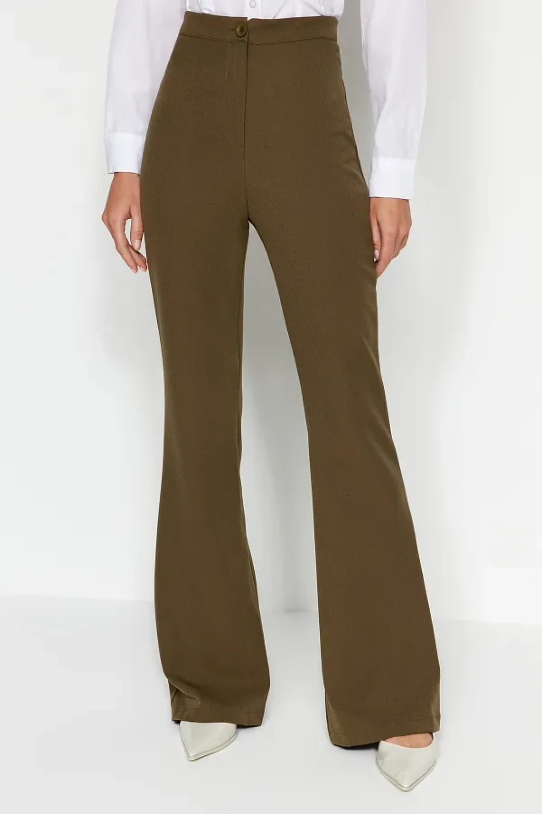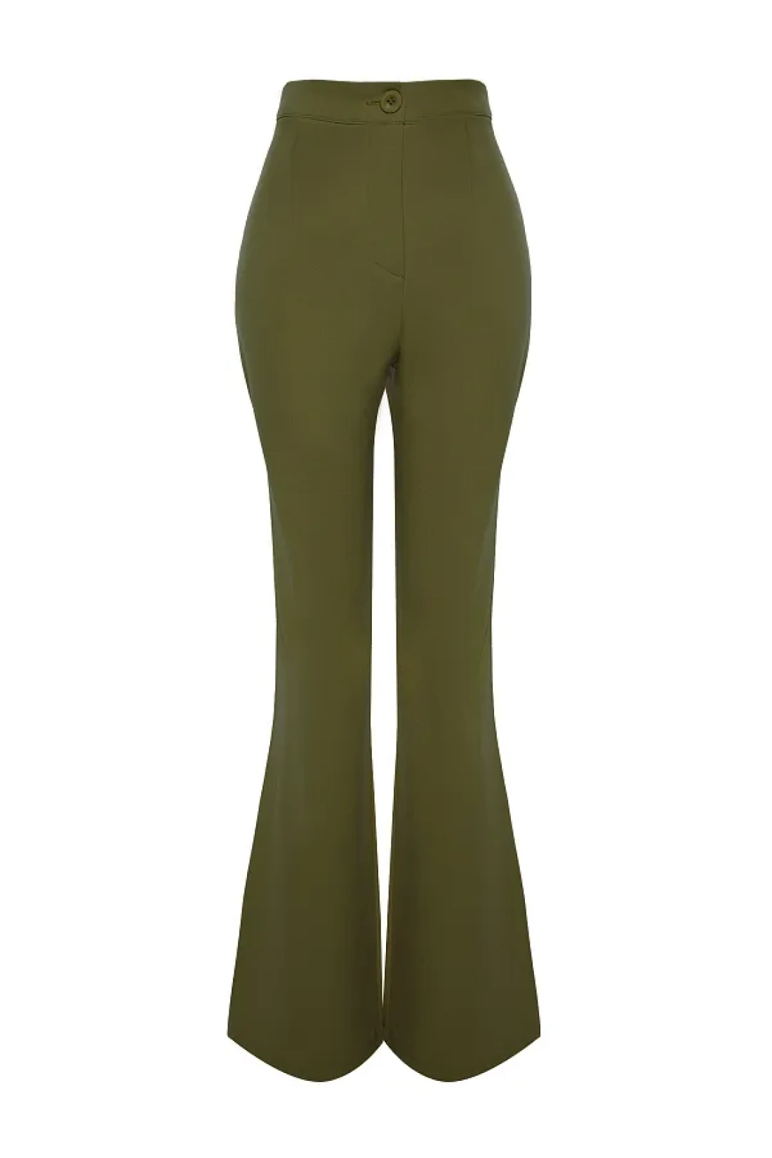 Collection Khaki Spanish Leg Flare Woven Fabric Trousers Tofaw19Bb0581