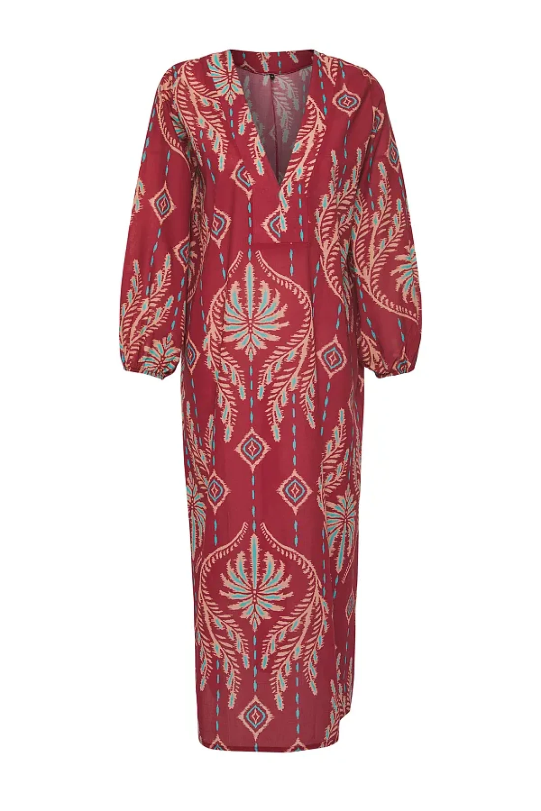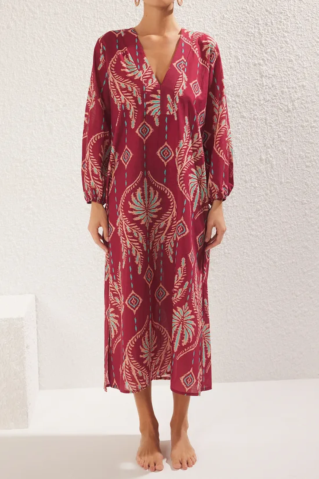 Collection Ethnic Print Maxi Woven 100% Cotton Balloon Sleeve Beach Dress Tbess25El00019