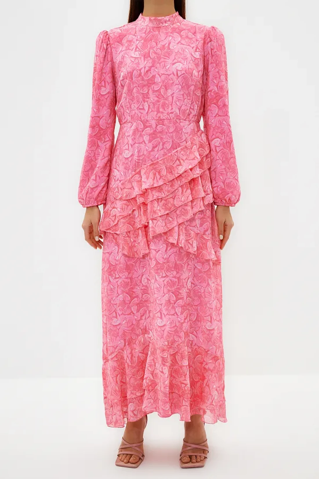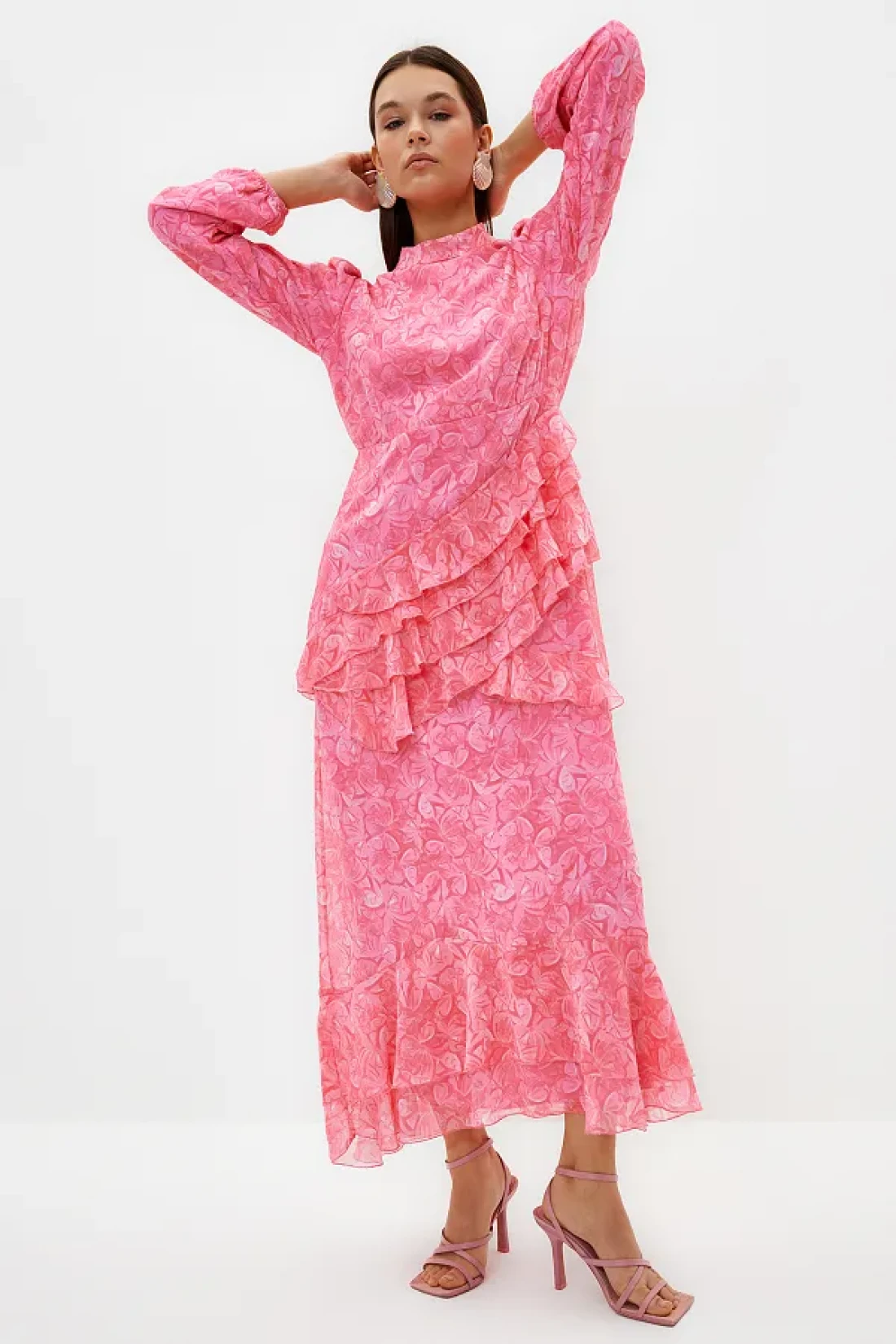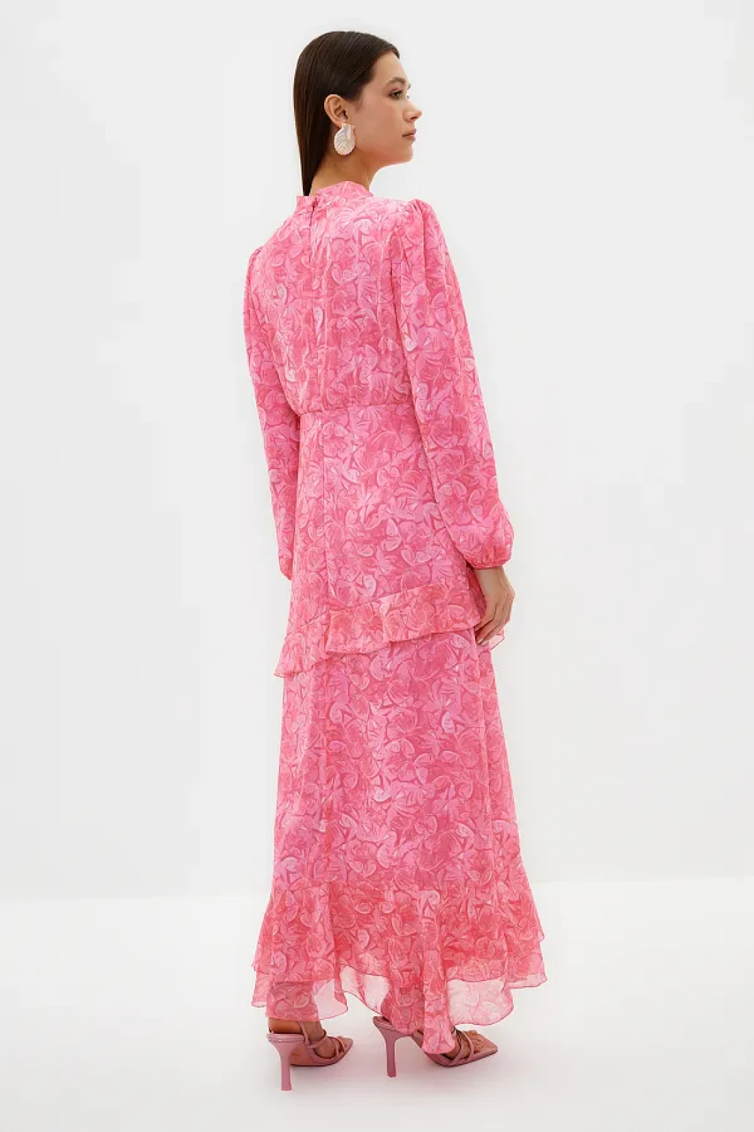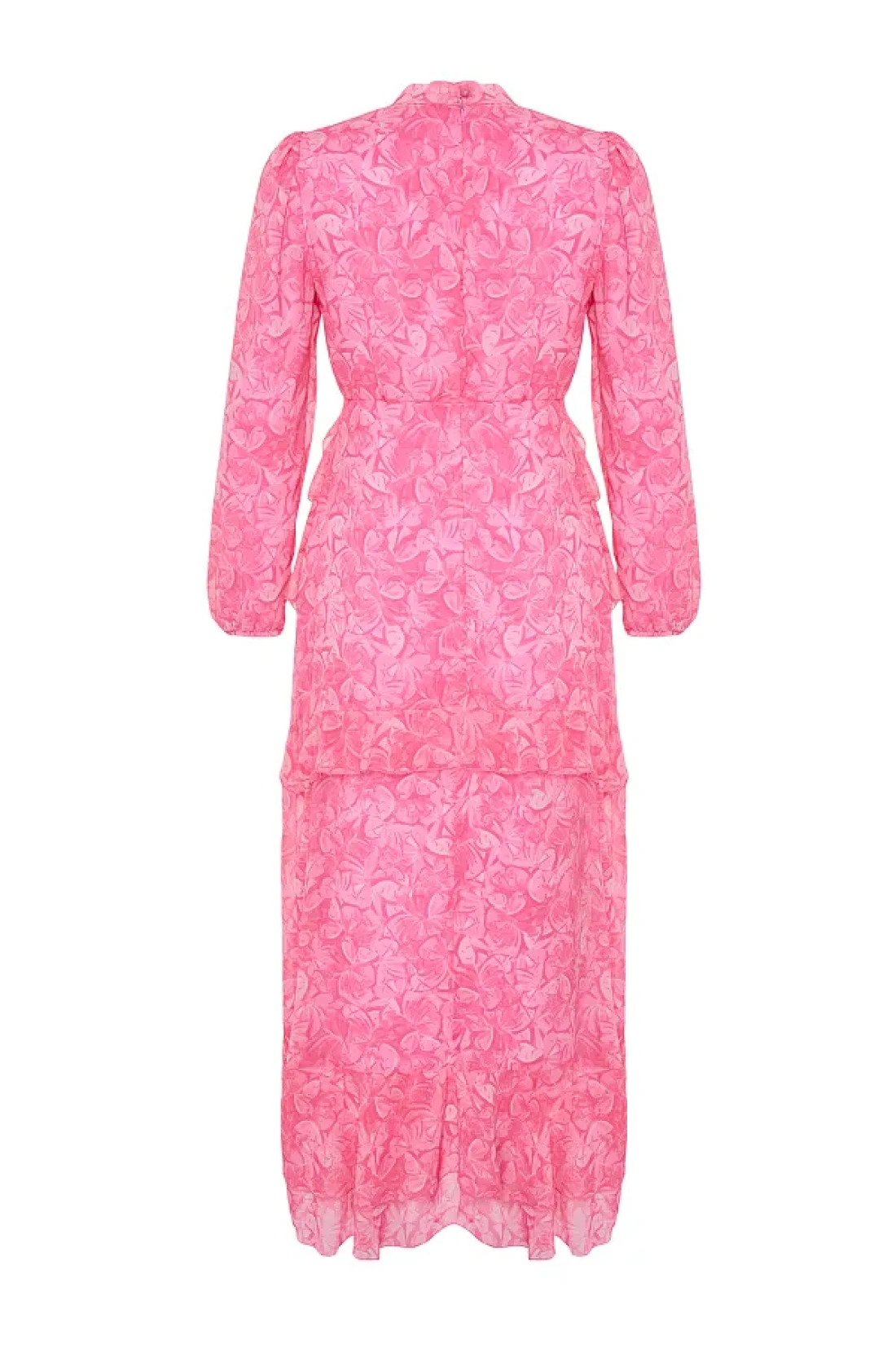 Modest Pink Floral Skirt Ruffled Lined Woven Chiffon Dress TCTSS23EB00160