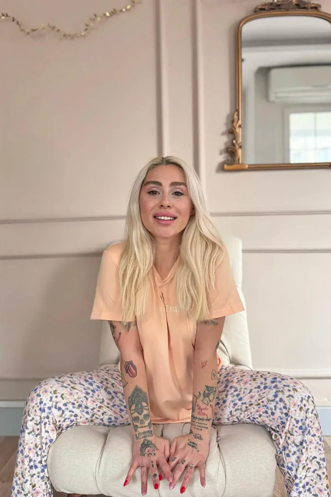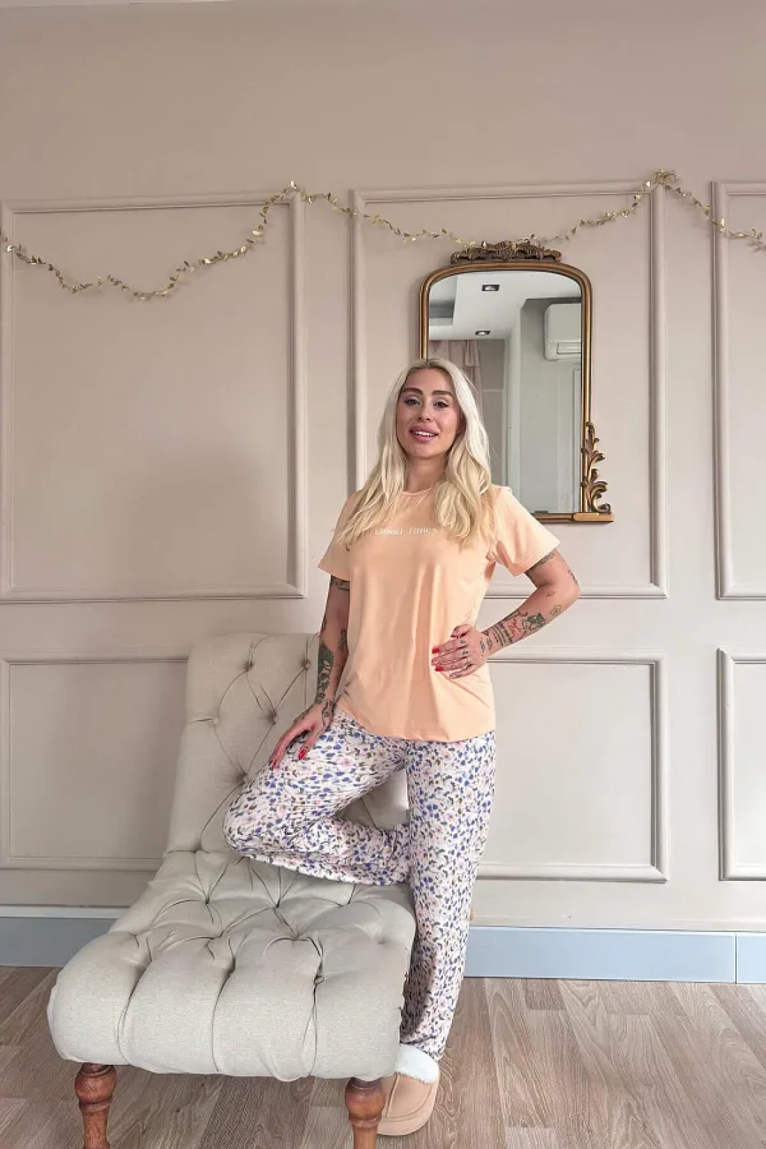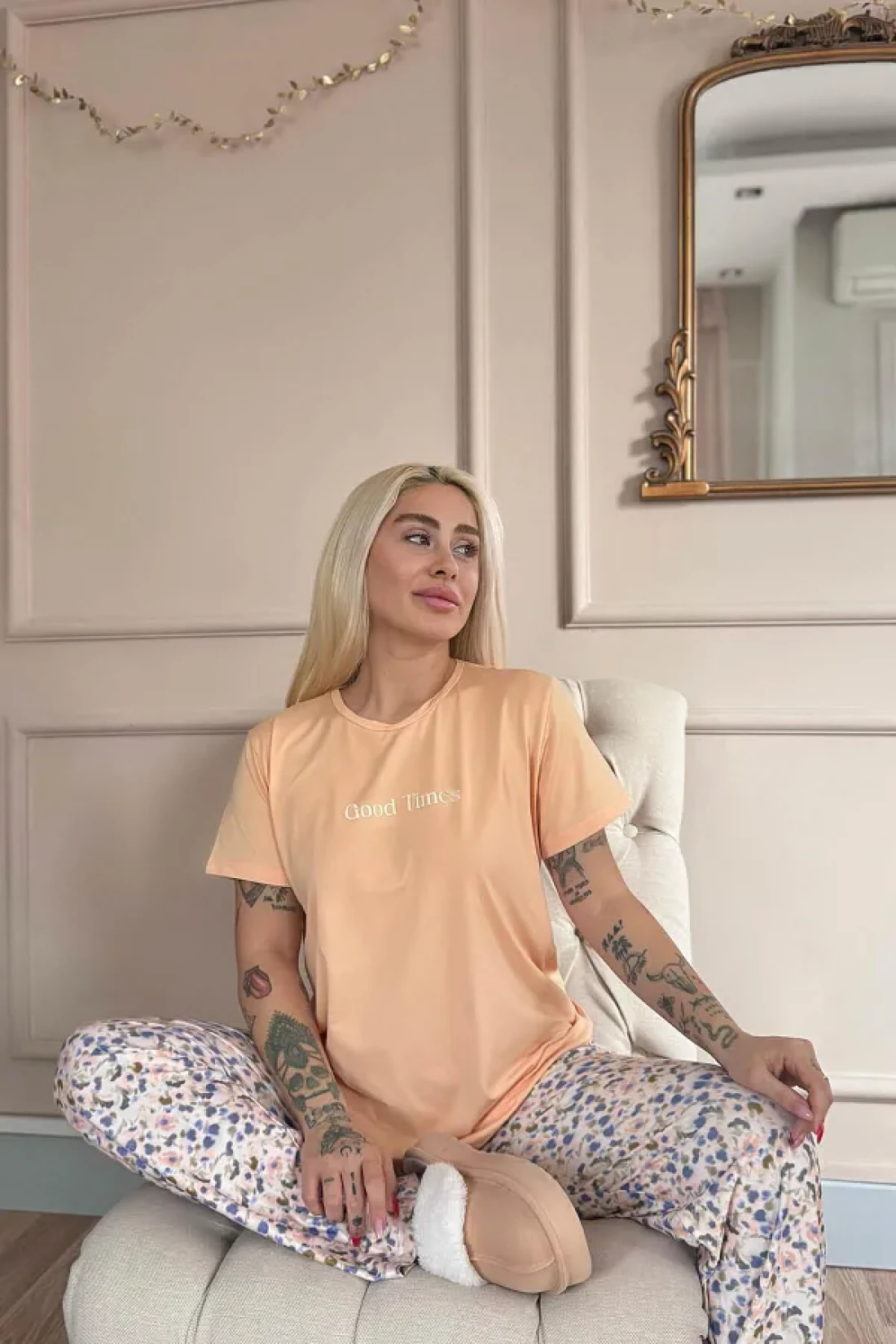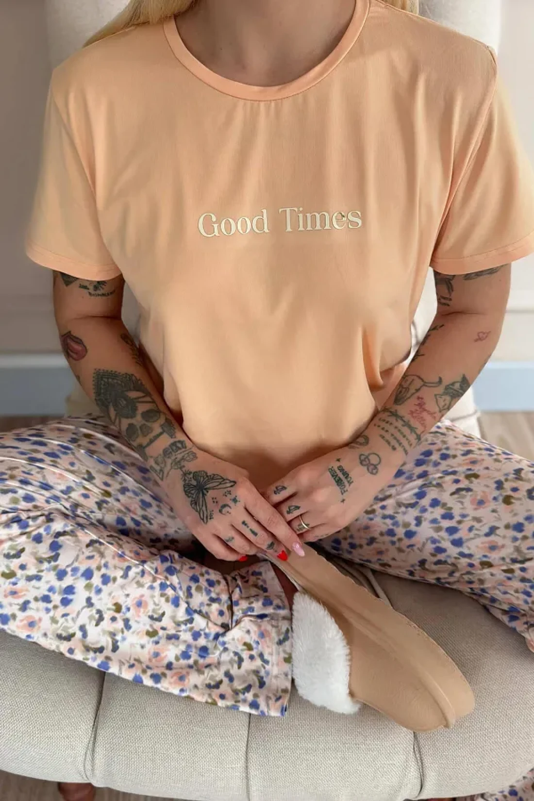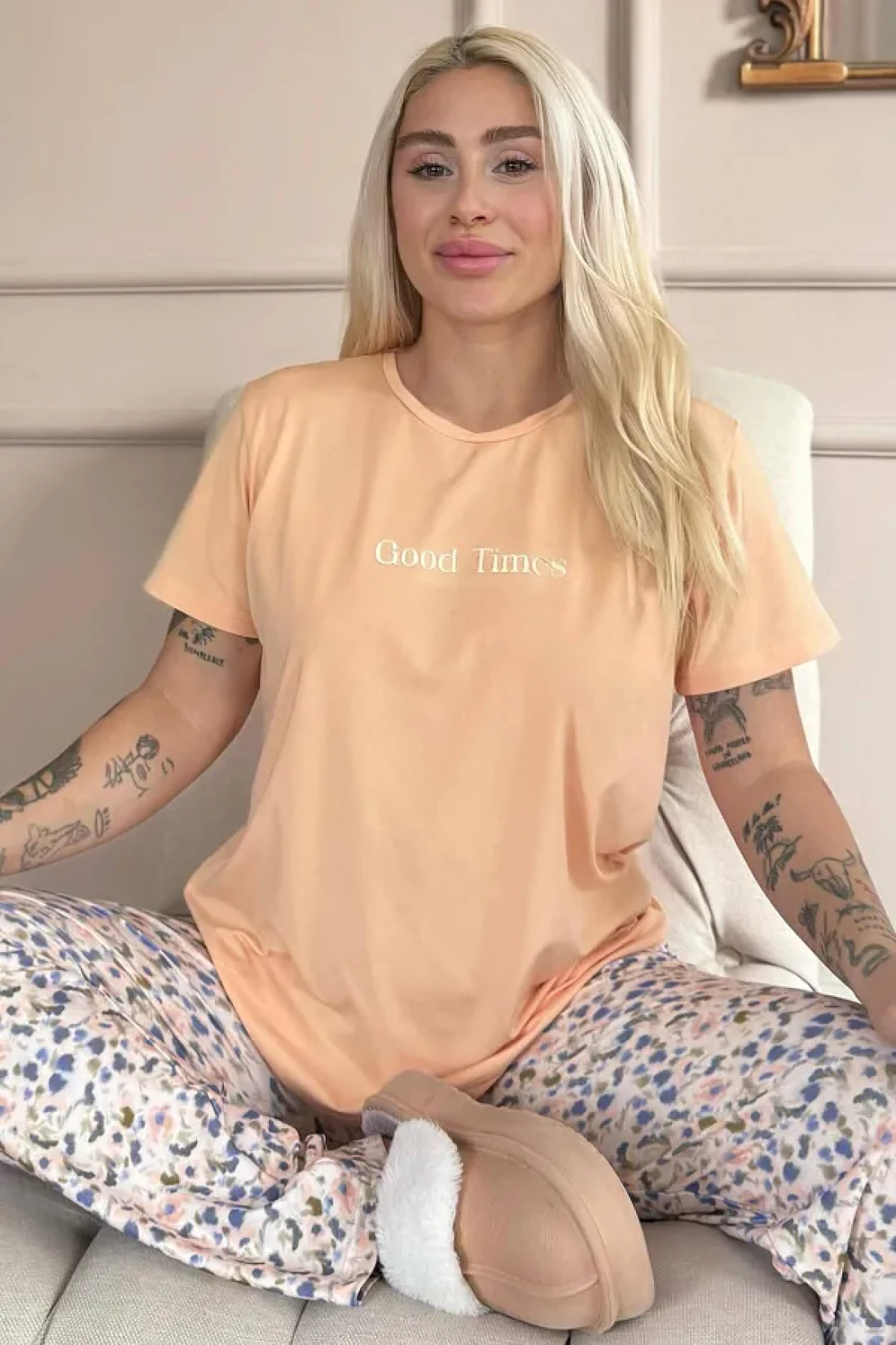 Pijamaevi Peach Good Times Patterned Short-Sleeve Knitted Women's Pajamas Set