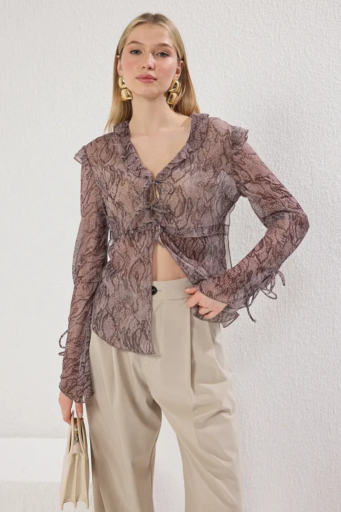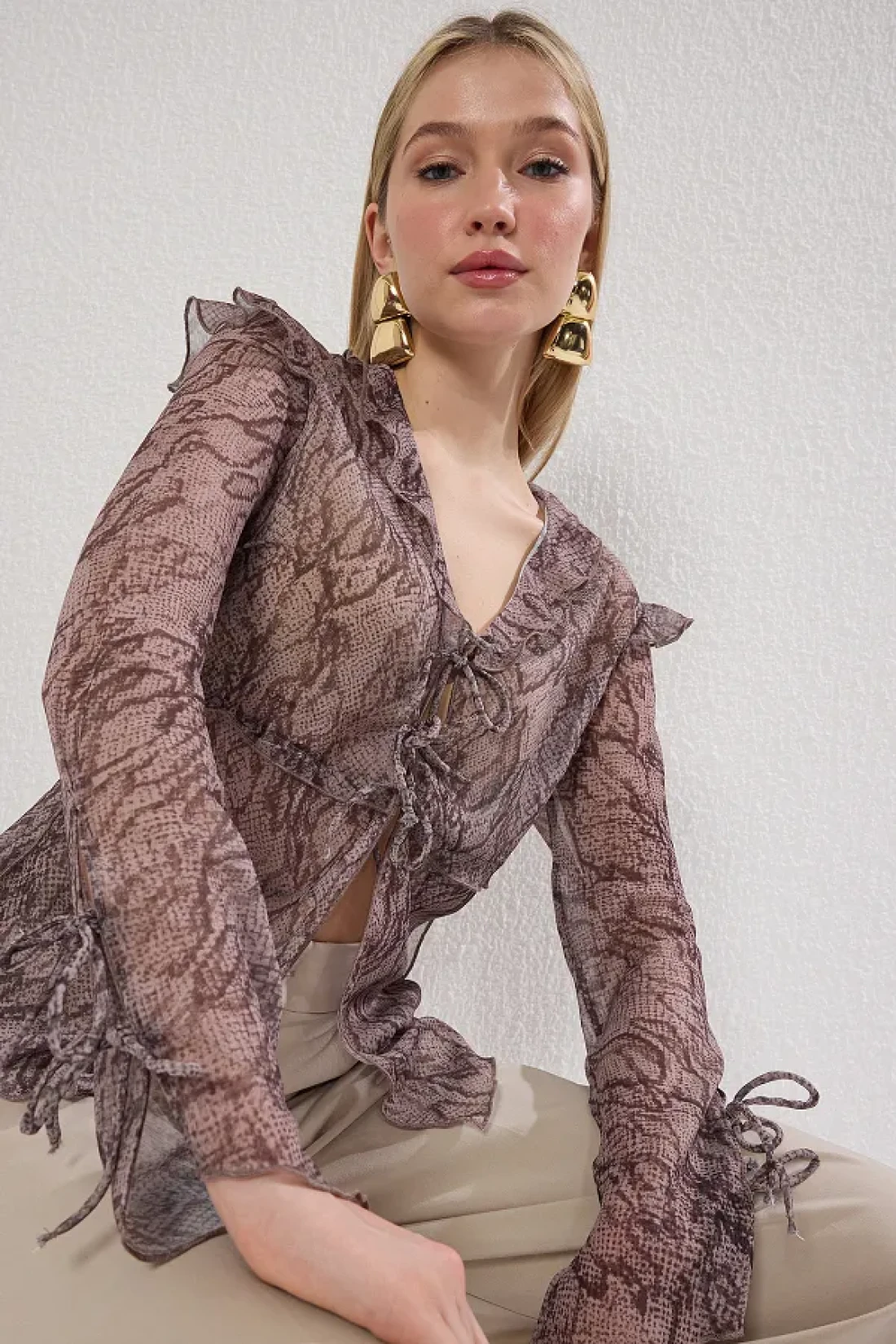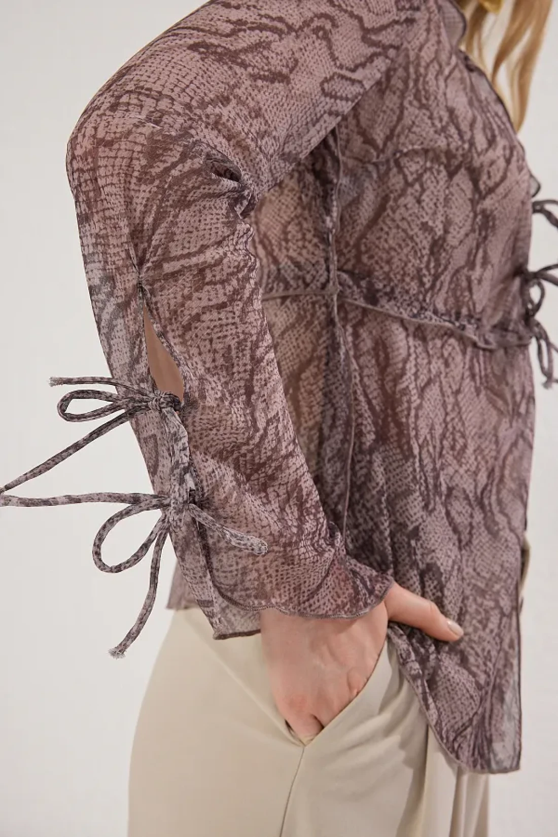 Collection Snake Print See-Through Tie-Detailed Chiffon Blouse - Twoss25Bz00427