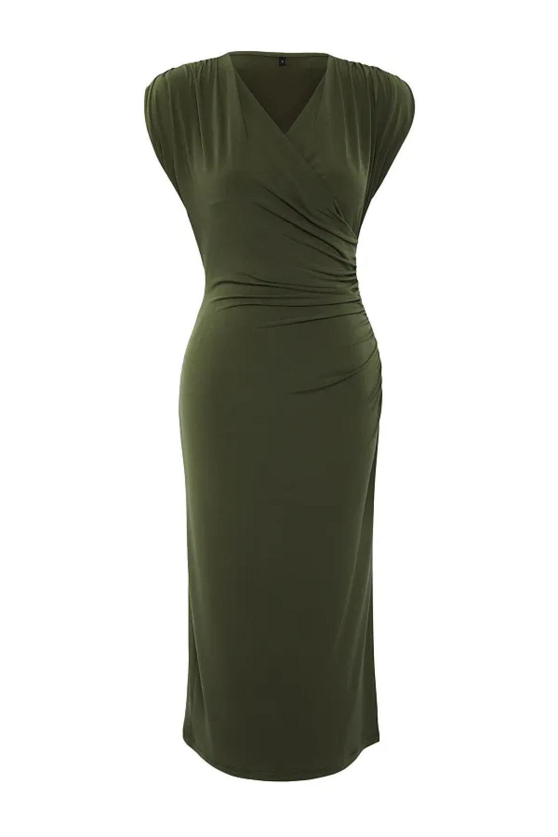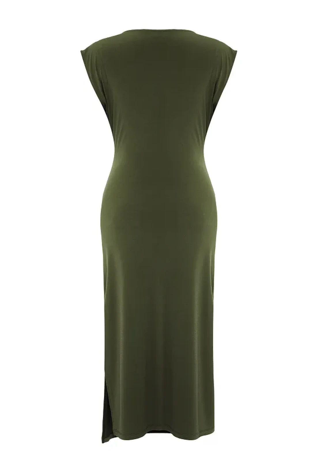Collection Khaki Straight Drawstring /Drape Midi Drawstring Drape Detail Double Breasted Neckline Knitted Dress Twoss25El00098