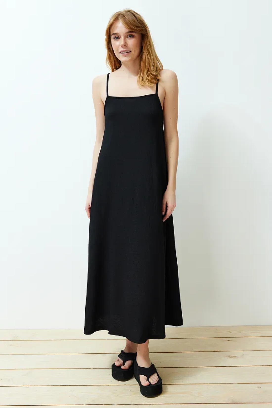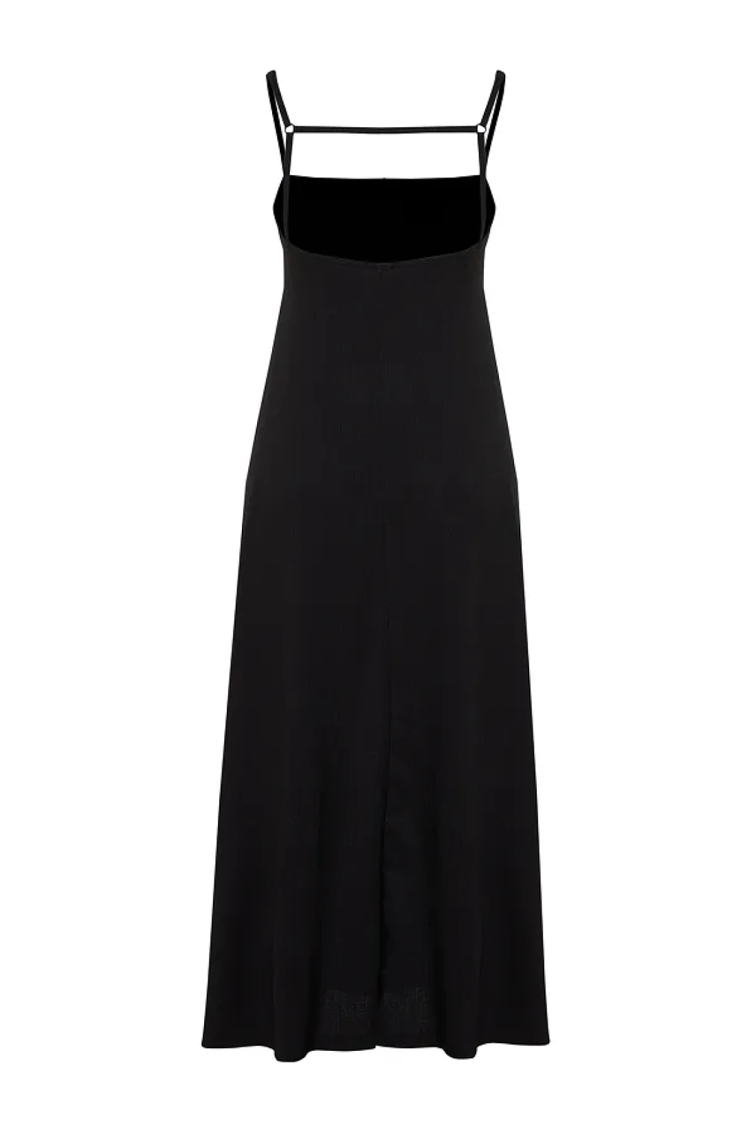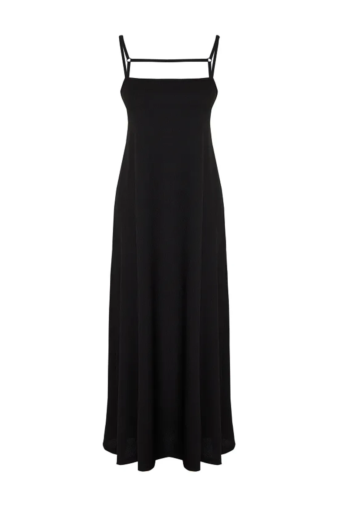 Collection Black A-Line Texture Maxi Dress - Adjustable Strap, Wrap Detail TWOSS24EL00060