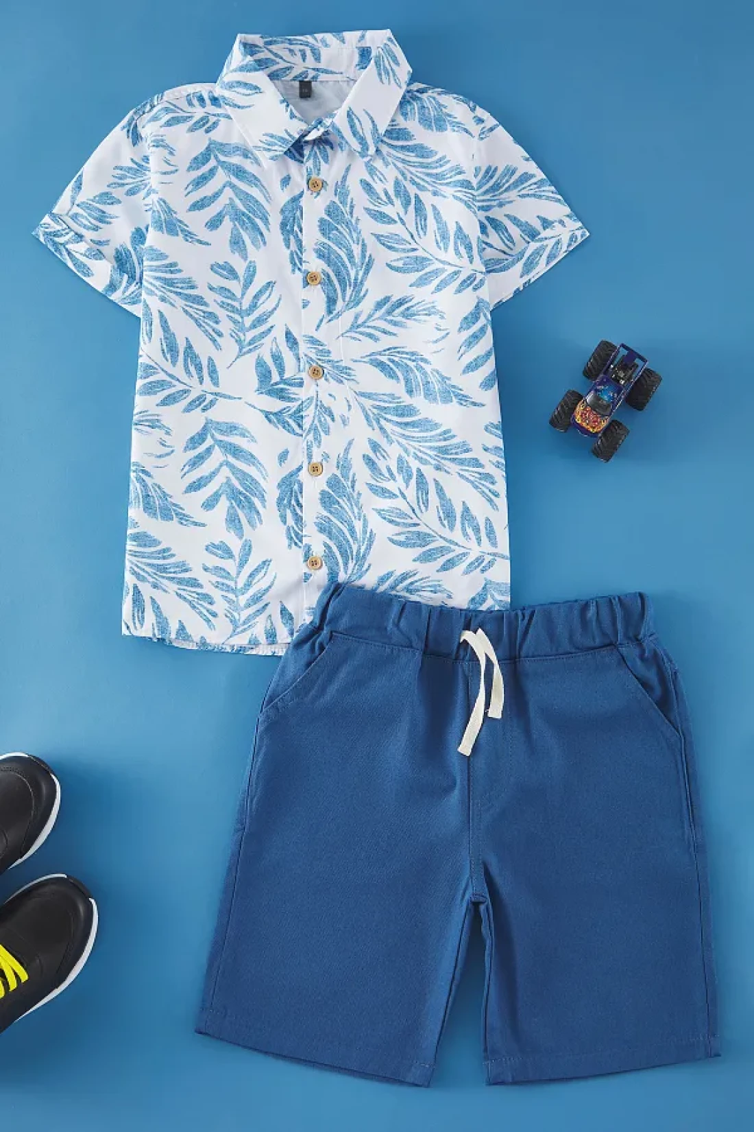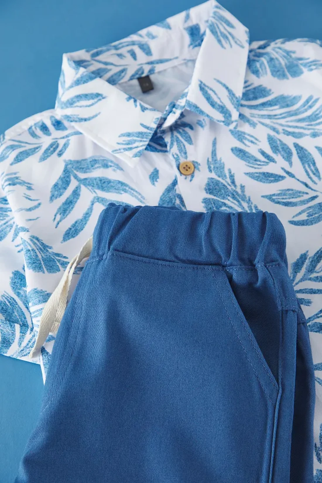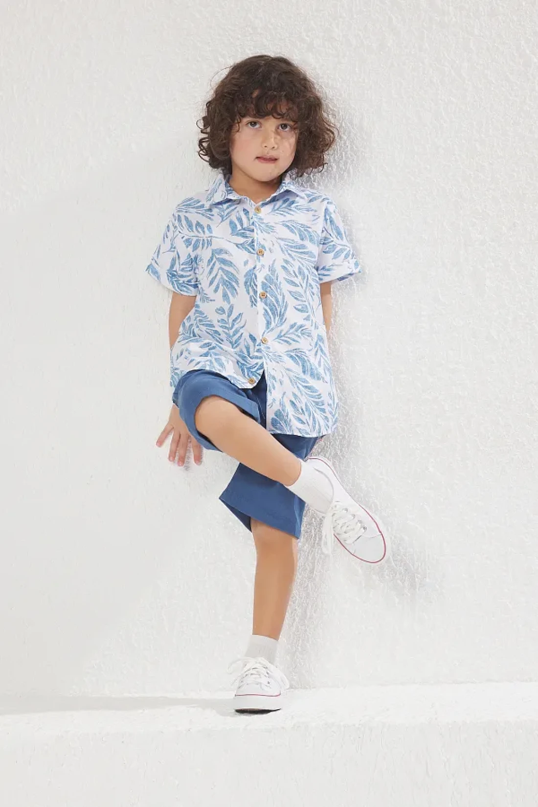 TRENDYOLKIDS Blue Male Child Cotton Tropical Printed Woven Shirt Shorts Bottom-Top Suit Tkdss25Au00035