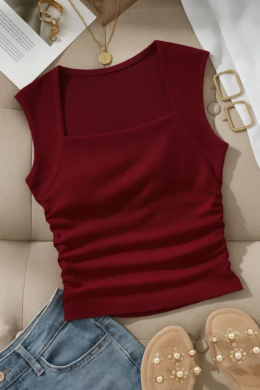 - with its square neckline cut, it gently hugs your neck, showcasing a stylish posture while also offering comfort.