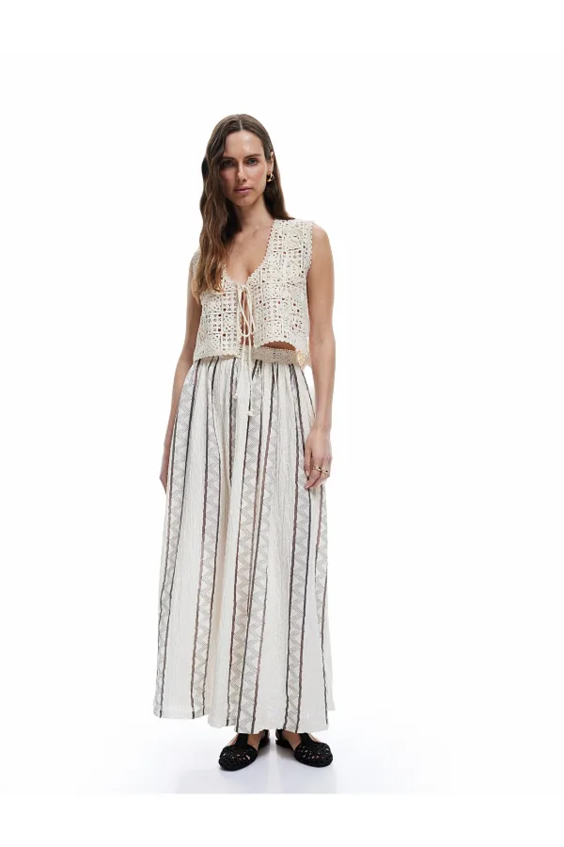 Koton Geometric Patterned A-Line Long Skirt with Ruched Waist