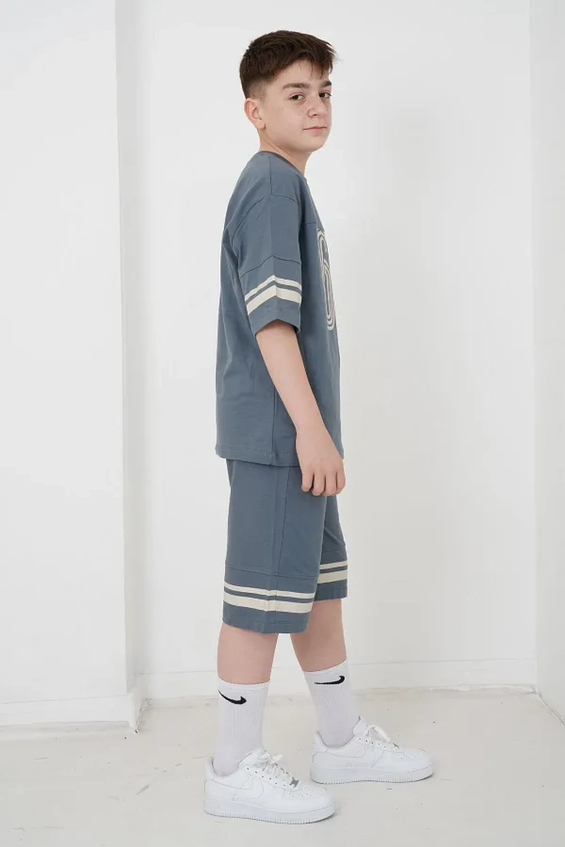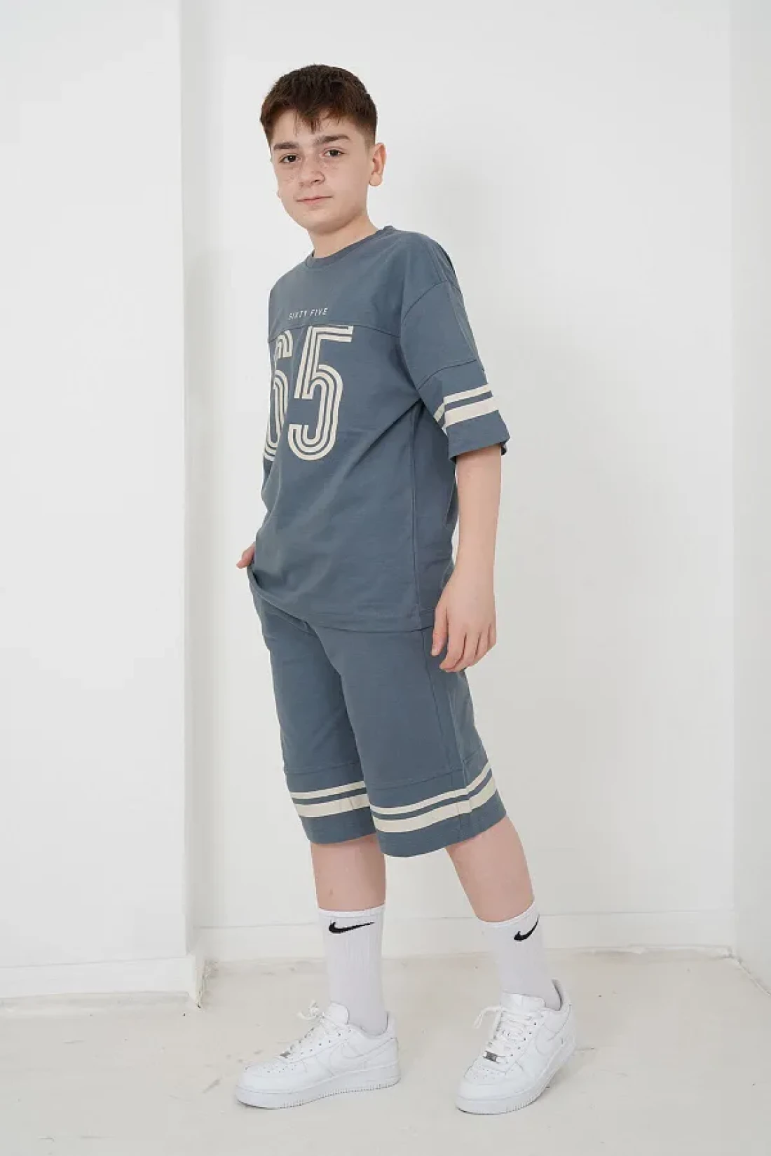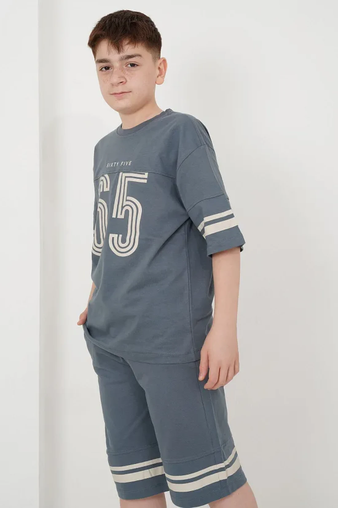 HayKids Boy's Two Thread Fabric Crew Neck Printed Shorts Suit