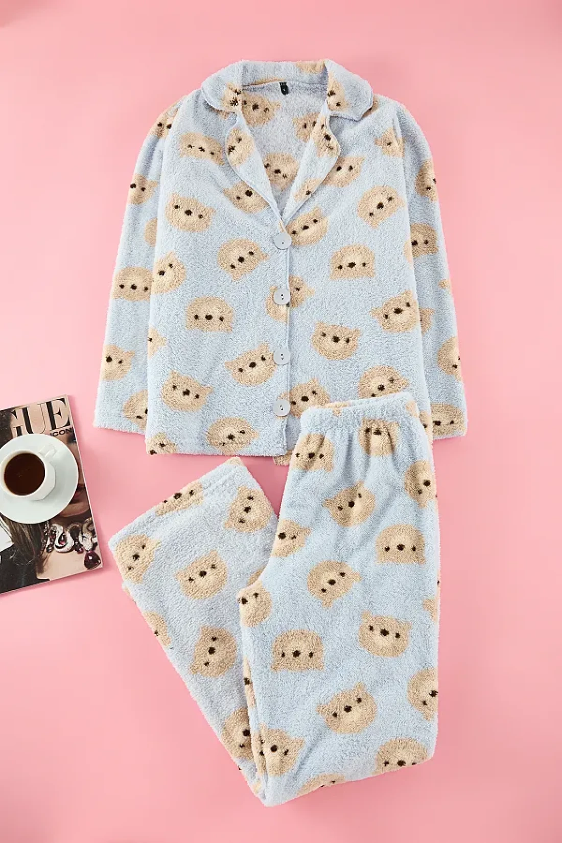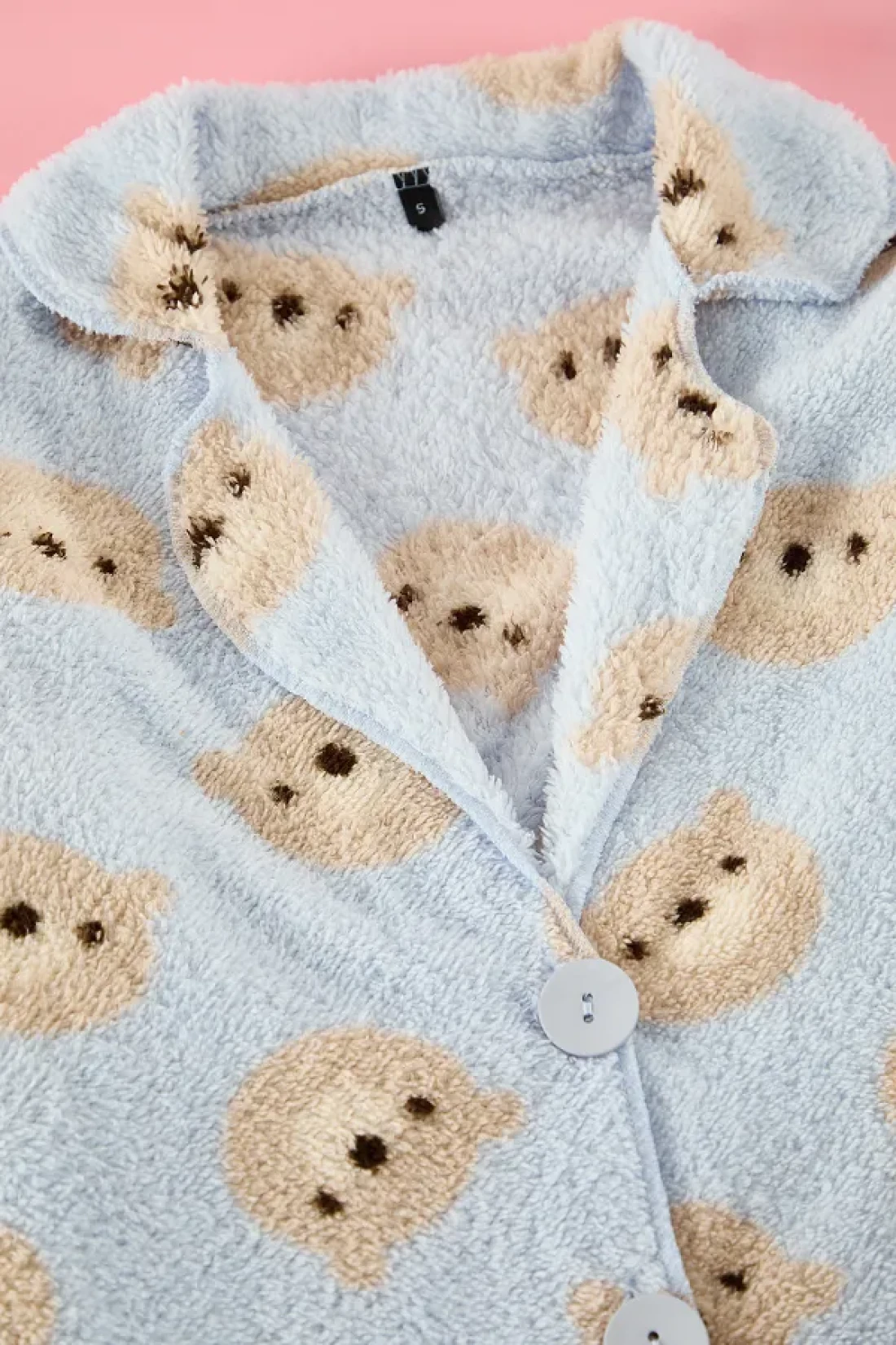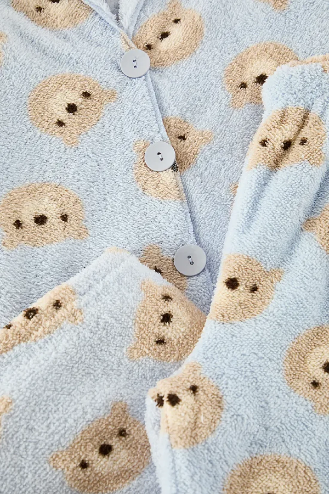 Collection Wellsoft Winter Knitted Pajamas Set with Light Blue Teddy Bear Thmaw25Pt00054