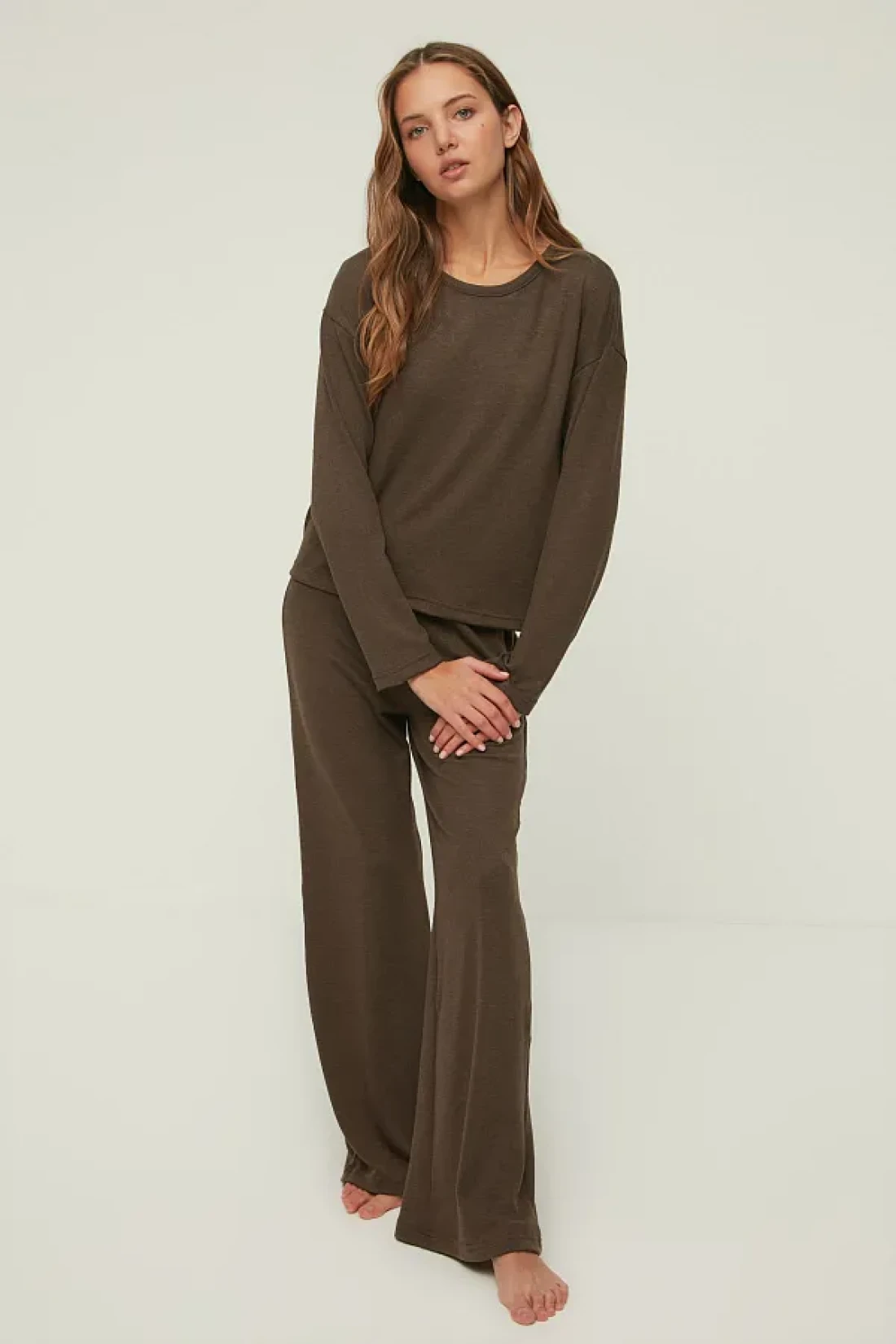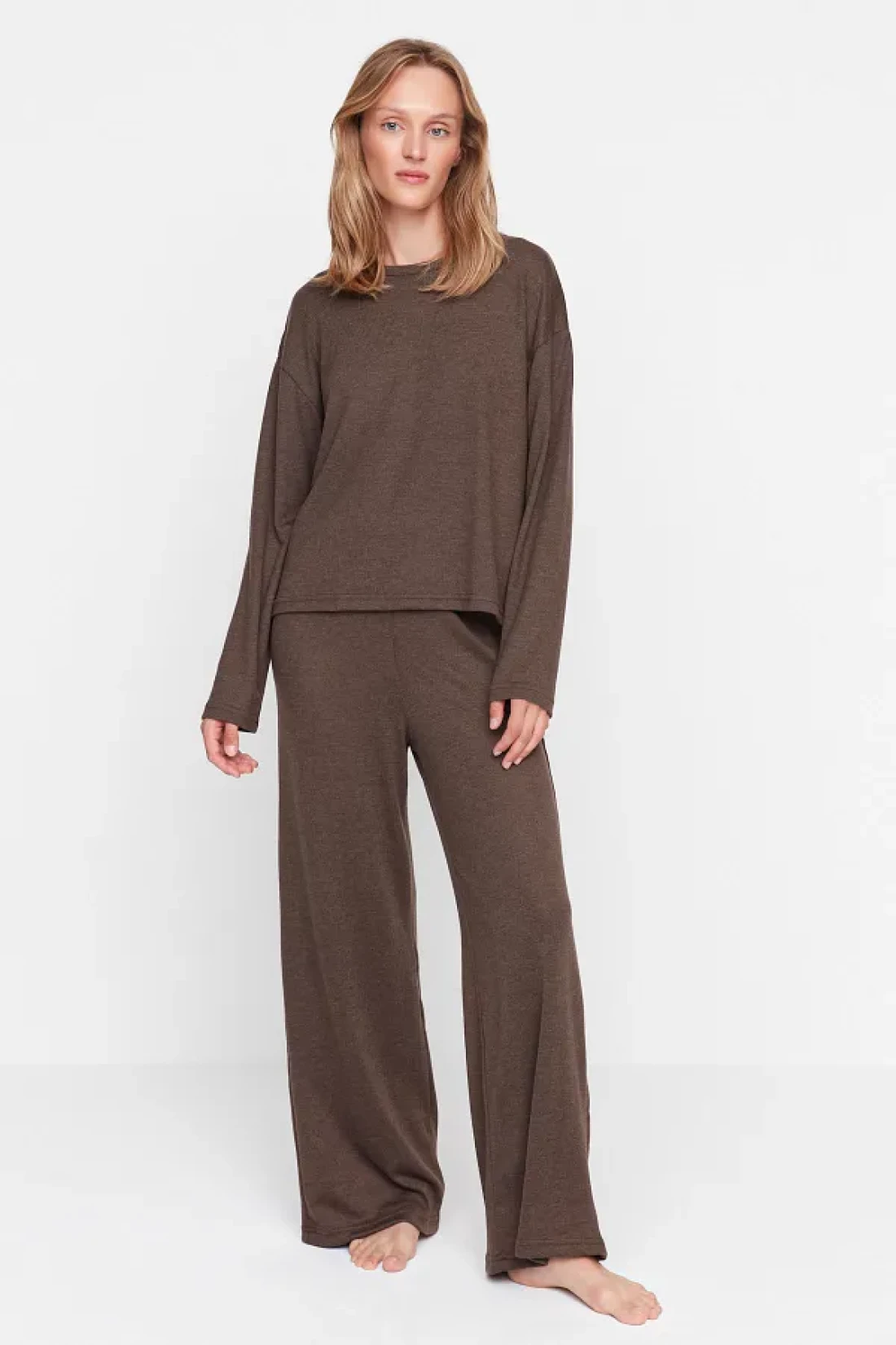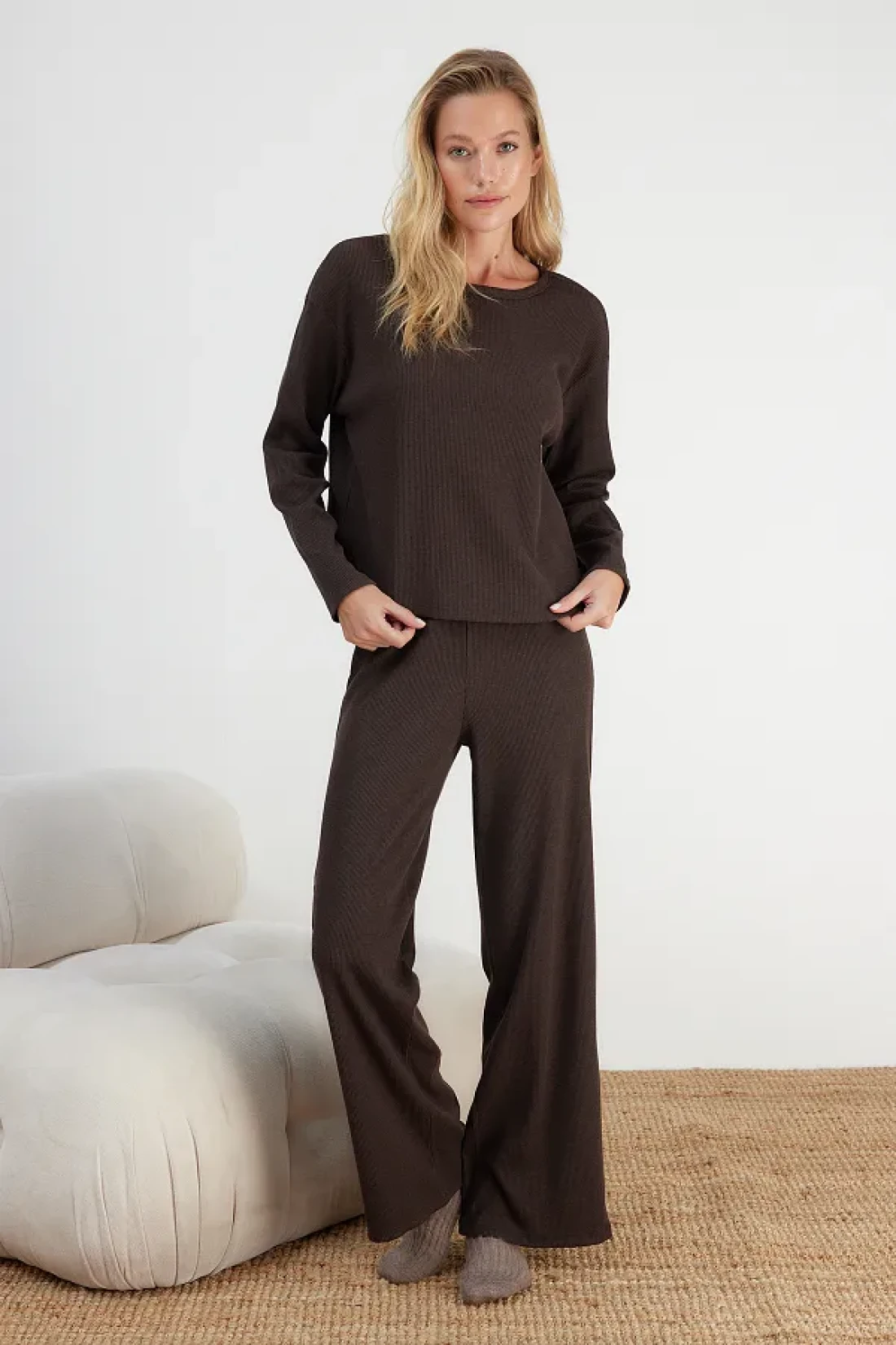 Collection Brown Corded Knitted Pajama Set Thmaw21Pt0684